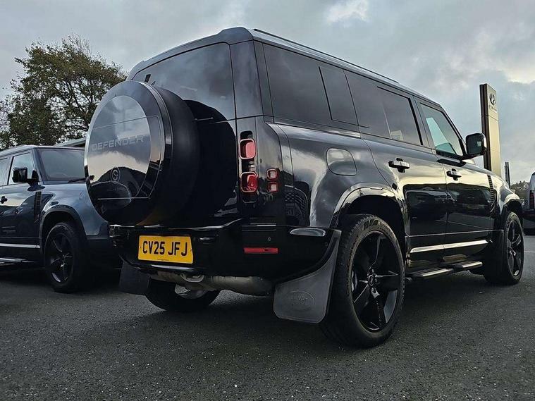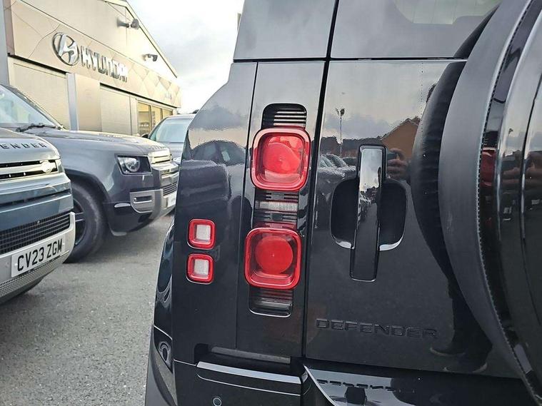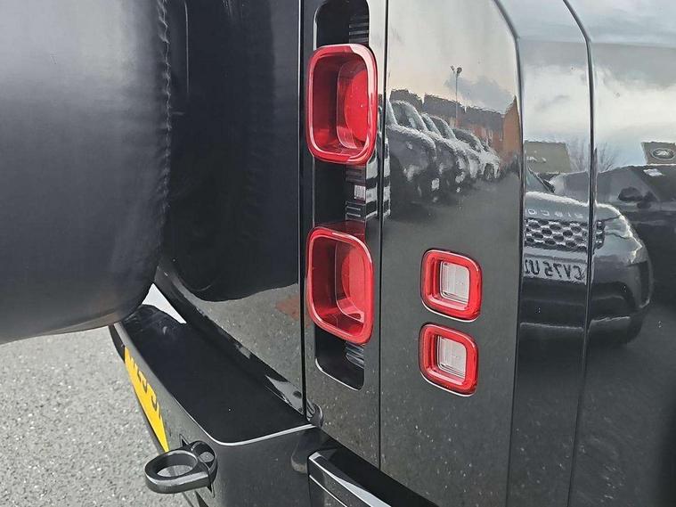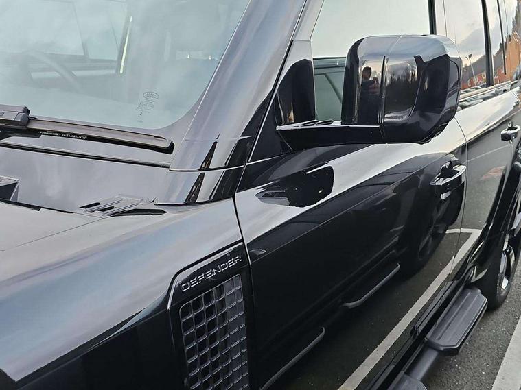 1 x USB-C (power only) & 1 x USB-C (power & data) in Row 1, 2 x USB-C in Row 2, 11.4" touchscreen, 2 x USB-C in Row 3, 360 degree parking aid, 3D Surround Camera with 360 View, 180 Rear View, Front Traffic Detection, Forward Vehicle Guidance, Tow Hitch Assist and clear sight Ground View, Adaptive cruise control, Android Auto, Apple CarPlay, Blind spot assist, Bluetooth system, Brake pad wear indicator, Clear exit monitor, Connected navigation pro, Driver condition monitor, Electric power assisted steering (EPAS), Interactive driver display, Lane keep assist, Push button start, Rear collision monitor, Rear traffic monitor, Traffic sign recognition with adaptive speed limiter, Trip computer, Wireless device charging, 8 speed automatic transmission, All wheel drive system, Twin speed transfer box, DAB Radio (Digital Audio Broadcasting), Meridian 700w surround sound audio system with 15 speakers, Pivi pro connected, Automatic headlight levelling, Automatic headlights, Black exposed rear recovery eyes, Body coloured bonnet, Centre high mounted stop light, Electric heated/power fold door mirrors with approach lights and auto dimming driver side, Electric windows with one touch open/close and anti-trap, Follow me home lighting, Front fog lights, Heated rear window with timer, Heated windscreen, Illuminated metal treadplates with brand name script, LED tail lights, Matrix LED headlights with signature DRL, Privacy glass, Puddle lights, Rain sensing windscreen wipers, Rear fog lights, Rear side wing doors, Rear wiper, Side hinged tailgate, Sliding panoramic roof, Standard tail door, Trailer stability assist, X-Dynamic badge, 12V power socket in loadspace, 2 seat bench in 3rd row, 3 seat bench in 2nd row, Alpine lights, Configurable cabin lighting, Durable rubber cabin flooring, Durable rubber loadspace flooring, Electric reach + rake adjustable steering column, Electrically adjustable steering column, Extended leather upgrade, Footwell lights, Front head restraints, Front passenger isofix child seat attachment, Heated steering wheel, Loadspace cover, Loadspace Hook, Multifunction steering wheel, No flat load floor storage, Overhead stowage for sunglasses, Rear headrests, Rear ISOFIX, Rear reading lights, Single front passenger seat, Soft close tail door, Storage glovebox, Sunvisors with illuminated vanity mirrors, Twin front cupholders, Air suspension pack - Defender SE/HSE/X-Dynamic SE/X-Dynamic HSE, Non-smoker package, Online pack with data plan - Defender, 7 three point seatbelts, ABS, Brake hold function, Cornering brake control (CBC), Customer configurable autolock, Driver and passenger airbags, DSC - Dynamic Stability Control, EBD - Electronic brakeforce distribution, Electric parking brake (EPB), Emergency brake assist, Emergency braking, ESP + traction control, Front airbags with passenger seat occupant detector, HDC - Hill descent control, Hill launch assist, Low traction launch, Power operated child locks, Remote for (e-Call, Optimised assistance call, InControl app, Climate, beep and flash and door), RSC - Roll stability control, Seat belt reminder, TPMS (Tyre pressure monitoring system), Alarm, Immobiliser, Intrusion sensor, Keyless entry, Locking wheel nuts, Secure tracker pro,