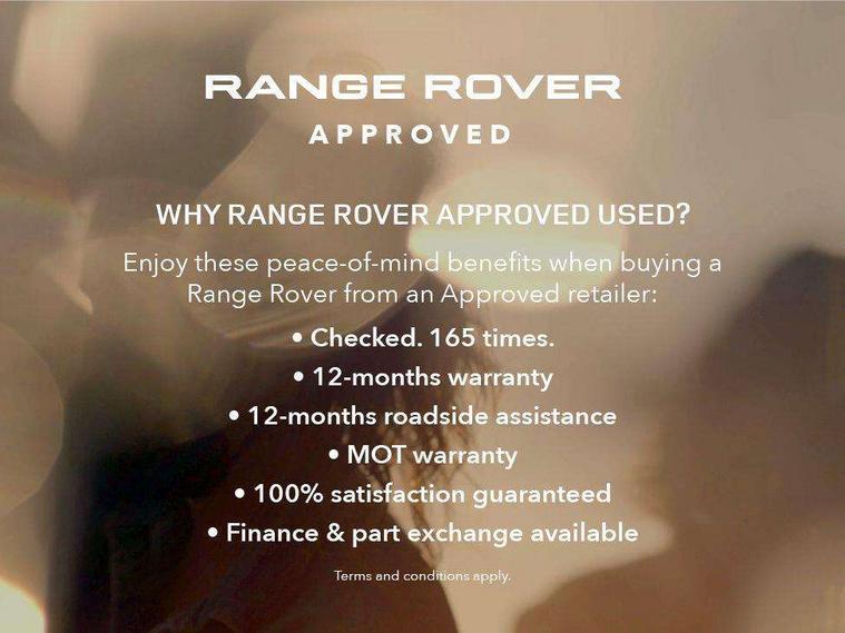 11.4" touch screen, 3D 360 degree surround camera with wade sensing, Adaptive cruise control, Android Auto, Apple car play, Blind spot assist, Bluetooth connectivity, Brake pad wear indicator warning light, Driver condition monitor, eCall emergency system, Eco mode, Electronic power assisted steering (EPAS), Front and rear parking aid, InControl remote, Interactive driver display, Land Rover InControl apps, Lane keep assist, Pivi pro connected includes diamond pivi variant, smart settings, connected navigation pro, nuance speech licence, Powered tailgate/boot lid, Rear collision monitor, Rear traffic monitor, Tailgate, Traffic sign recognition with adaptive speed limiter, Voice control system, Wireless device charging, All terrain progress control, Diesel exhaust fluid (DEF) large tank, Efficient Driveline, Large fuel tank, Terrain Response 2, Digital Audio Broadcast radio-DAB, Steering wheel mounted controls, Acoustic laminated windscreen, Auto headlights, Auto high beam assist, Automatic headlight levelling, Electric windows with one touch open/close and anti trap, Flush deployable exterior door handles, Front and rear recovery eyes, Heated rear window with timer, Heated washer jets, Heated windscreen, LED headlights with signature DRL and LED tail Lights, Power fold, auto-dimming, heated door mirrors with approach lights and auto dimming driver side, Rain sensing windscreen wipers, Rear animated directional indicators, Rear fog lights, Rear side wing doors, Rear wiper, Side repeater indicators in mirror, Tailgate spoiler, Third brake light, Winter wiper park position, 12 way driver memory and 10 way passenger electric front seats with 2 way manual headrest + 4 way lumbar support, 40:20:40 split folding rear seats with centre headrest and armrest, Ambient interior lighting, Bright metal pedals, Carpet mats, Chrome tread plates with range rover branding Includes stainless steel loadspace scuff plate with etched graphic, Customer configurable single point entry, Front and rear cupholders, Heated front seats, Heated steering wheel, Isofix system on outer rear seats, Manually adjustable steering column, Overhead lighting console, Overhead stowage for sunglasses, Passive front head restraints, Rear air vents, Rear head restraints, Satin chrome gearshift paddles, SE Grained leather upholstery, Single passenger seat, Standard steering wheel with Moonlight Bezel, Sunvisors with illuminated vanity mirrors, Twin sliding front centre armrest, Power socket pack 2 - Evoque, 3 rear 3 point seatbelts, Anti-lock braking system (ABS), Brake hold function, Customer configurable autolock, DSC - Dynamic Stability Control, Electronic brake force distribution, Electronic parking brake, Electronic traction control, Emergency braking, Front and rear seatbelt reminder, Hill descent control, Hill launch assist, Low traction launch, Occupant protection assist, Passenger seat occupant detector, Power operated child locks, Roll stability control, Six airbags - Driver and passenger airbags/driver knee airbag/front side airbag and curtain airbags, Torque vectoring brake, Tyre pressure monitoring system, Alarm, Immobiliser, Intrusion sensor, Keyless entry, Locking wheel nuts, All season tyres,