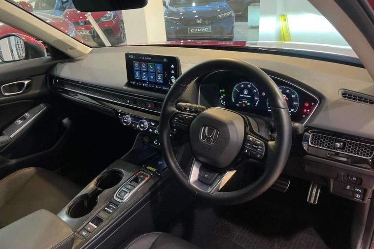 10.2" Multi information display, Adaptive cruise control, Adaptive motion for electric power steering, Adjustable speed limiter, Agile handling assist, BLIS (Blind Spot Information System) with Cross Traffic Monitor, Bluetooth hands free telephone connection, Driving modes, Economy mode, Electric power steering wheel with variable gear ratio steering, Emergency call service, Emergency stop signalling system, Forward collision warning, Front and rear parking sensors, Honda CONNECT with Navigation 9" touchscreen, AM/FM/DAB, Apple Carplay and Android Auto, live traffic info, Honda sensing, Idle stop, Intelligent speed limiter, Lane departure warning system, Lane keep assist, Low speed following, Power meter, Rear parking camera, Road departure mitigation, Smartphone wireless charging plate, Tailgate, Traffic jam assist, Traffic sign recognition, Wireless apple carplay, Vehicle stability assist, 'Shark fin' mobile antenna, 2x USB Front socket (1 data & 1 charge), Centre speaker, Digital Audio Broadcast (DAB) Tuner, Front tweeters, Premium BOSE audio system with 12 speakers, Steering wheel mounted audio controls, Subwoofer, Adaptive driving beam, Aspherical driver door mirrors, Auto dimming rear view mirror, Auto headlight adjuster, Auto headlights, Automatic coming/leaving home lighting function, Automatic rain sensing wipers, Body colour door handles, Chrome window garnish, Electric adjustable heated door mirrors, Electric front and rear windows, Electrically folding door mirrors, Headlight extension aluminium, High beam assist, High level LED brake light, LED daytime running lights, LED front fog lights, LED front turn type, LED Headlights, LED rear lights, Material finish grille, Panorama glass roof, Pop up hood, Privacy glass, Rear side wing doors, Rear wiper, Single hidden exhaust pipe, Variable front intermittent wipers, 3 seat bench in 2nd row, 4 way electric adjustable passenger seat, 60/40 split folding rear seat, 8 way electric adjustable drivers seat, Cargo accessory power socket, Cargo net hooks, Driver and front passenger seat armrests, Driver and front passenger seat electric lumbar adjustment, Driver's seat electric height adjustment, Driver/passenger front seatback pockets, Dual climate control air conditioning system, Front accessory power socket, Front map lights, Front/rear courtesy lights, Glovebox light, Heated front seats, Heated steering wheel, Hybrid emblem, Isofix points/i size, Leather steering wheel, Leather/synthetic leather upholstery, Meter Illumination white, Platinum chrome interior door handles, Rear air vents, Rear head restraints, Rear reading lights, Rear seat centre armrest, Single front passenger seat, Stainless steel sports pedals, Sunglasses holder, Sunvisors with illuminated vanity mirrors, Tilt/telescopic adjustable steering wheel, Tonneau cover, Trunk light, USB Rear number 2 x charge, White ambient roof light, 3x3 point rear seatbelts, ABS+EBD+Brake assist, Airbags - driver and front passenger, Airbags - Knee (AS), Airbags - Knee (DR), Anti-whiplash front headrests, Brake hold function, Collision mitigation braking system, Collision mitigation throttle control, Deflation detection system, Driver SRS airbag (single stage inflation), Electronic parking brake with auto hold, Front and rear curtain airbags, Front and rear seat belts with emergency locking retractor (ELR), Front centre airbag, Front side airbags, Hill start assist, Low speed brake system, Manual child lock in rear doors, Passenger airbag deactivate switch, Rear airbags, Regenerative braking/deceleration paddle control, Immobiliser, Mirrors and windows key fob, Remote central locking with 2 jack knife keys, Security alarm, Selectable door unlock, Smart entry + Smart start, Superlocking, Tilt sensors, Ultrasonic security sensor, Tyre repair kit,