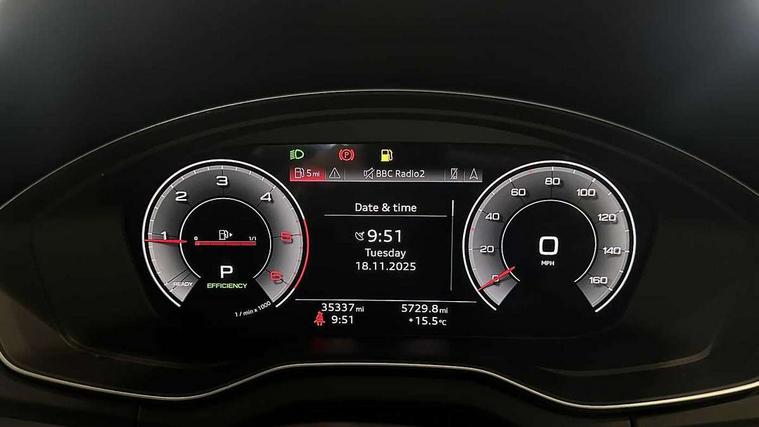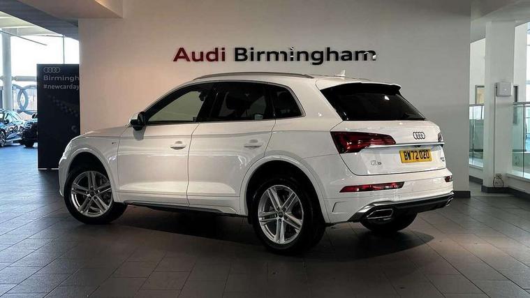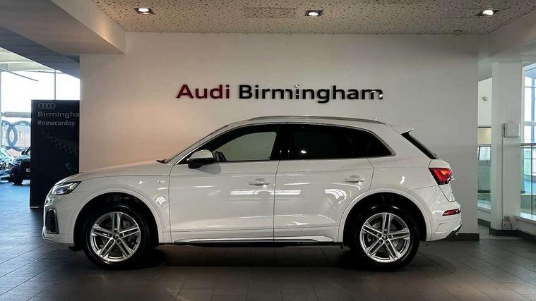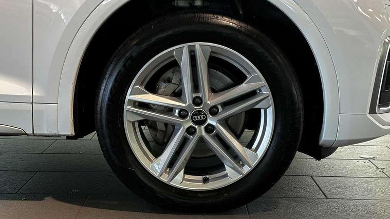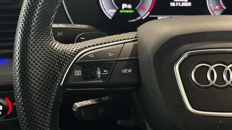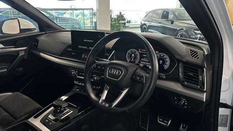 Audi connect safety and service (e-call), Audi connect with Amazon Alexa Integration, Audi drive select, Audi virtual cockpit plus with 12.3" screen and three different layout designs, Audi wireless smartphone interface, Automatic start-stop system with coasting functionality and efficiency programme, Bluetooth interface, Electro - mechanical power assisted steering, MMI navigation plus with 10.1" touch screen, Power tailgate, Reversing camera, Service interval indicator, Voice control system with Audi hotword activation "Hey Audi", Diesel particulate filter, Quattro on demand, S line sports suspension, DAB Digital radio, Acoustic windscreen, Aluminium roof rails, Audi matrix LED headlights with dynamic front and rear indicators, Auto dimming door mirrors, Auto dimming rear view mirror, Automatic headlight adjustment, Automatic headlights and windscreen wipers, Body colour bumpers, Body colour door mirrors, Body colour rear diffuser with matt aluminium silver surrounds, Body colour underbody protection, Chrome plated exhaust trims, Daytime running lights, Door sills in Selenite silver, Electric adjustable/heated/folding door mirrors, Front air inlet surrounds in aluminium, Front and rear electric windows, Front radiator grille in honeycomb design, Headlight washers, High level LED brake light, Lower bumpers painted in contrast Manhattan grey, Rear chrome trim strip below lights, Rear privacy glass and rear side windows, Rear side wing doors, Rear wiper, Roof bars, S Line badges on the front wings, S Line front and rear bumpers, S Line rear spoiler, S Line side skirts, 2 x USB charging port with aux input socket, 3 rear headrests, 40:20:40 split folding 3 rear bench seat in 2nd row with rear centre armrest, Black cloth headlining, Comfort front centre armrest, Contrast stitching on seats, steering wheel and gear lever gaiter, Deluxe 3 zone electronic climate control, Front/rear floor mats, Gear lever in black leather, Heated front seats, Height adjustable front head restraints, Height/reach adjustable steering column, Illuminated door sill trims with S logo, ISOFIX child seat mounting and top tether, Luggage compartment cover, Manual seat adjustment with 4-way electric lumbar support, Removable luggage compartment floor, Single front passenger seat, Stainless steel pedals, Sunvisors with vanity mirrors, High gloss pack - Q5, LED interior light pack - Q5, 3 point seatbelts on all seats, 6 airbags - Driver, front passenger, curtain and side airbags, Electrically operated child locks on rear doors, Electromechanical parking brake, Electronic stabilisation control including ABS, ASR and EDL, Front passenger airbag deactivation, Hill descent control, Hill hold assist, Multi collision brake assist, Pop-up bonnet for pedestrian protection, Pre sense city, Seat belt force limiter, Seatbelt monitoring, Tyre pressure warning, Warning triangle and first aid kit, Anti theft alarm, Anti-theft wheel bolts, Keyless Go access/ignition system, Remote central locking, Matt brushed aluminium inlays,
