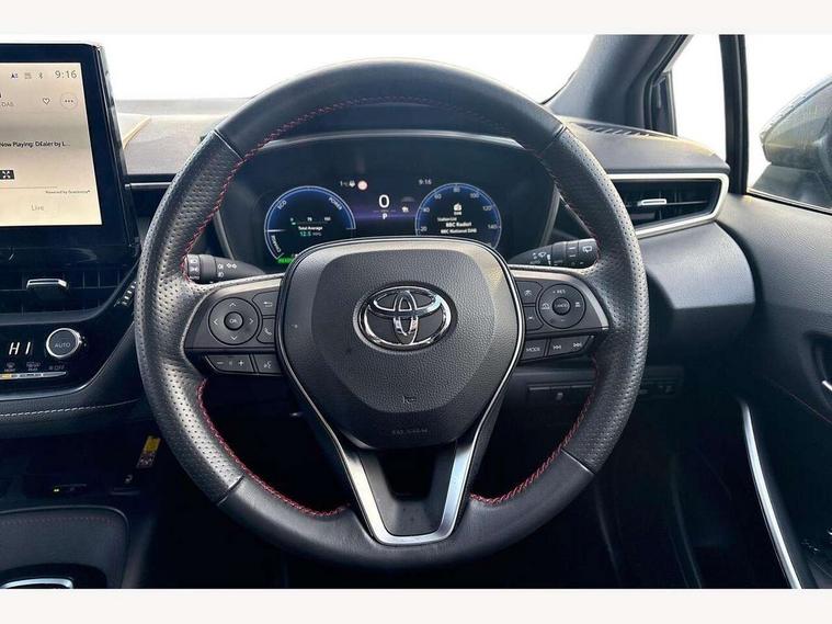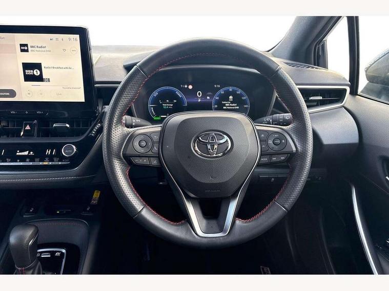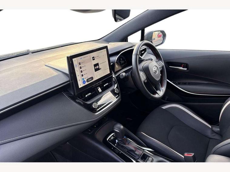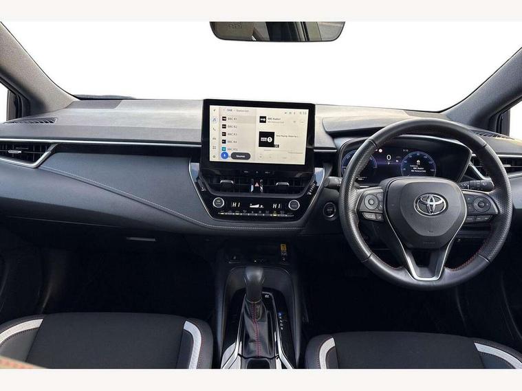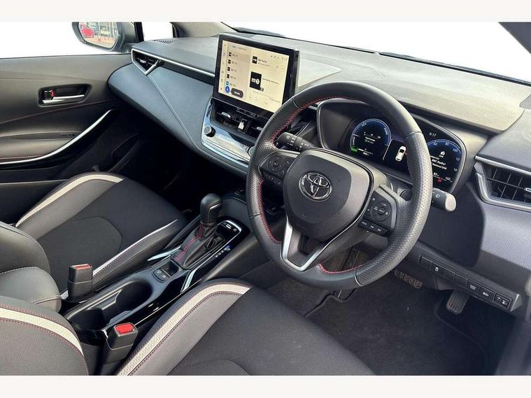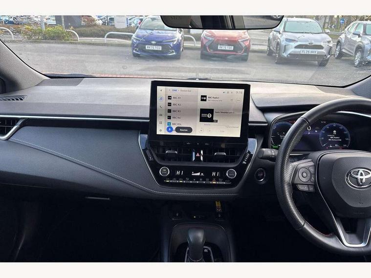 10.5" Multimedia display screen, Bluetooth telephone connectivity, Connected car functionality upgrade, tracker, remote status and e-care, Drive mode select (Eco, Normal), E-call, Electrically assisted power steering, EV drive indicator, Front and rear parking sensors with auto brake, Full Digital 12.3" TFT Digital Combimeter, Key reminder warning, Lane Departure Alert (LDA) switch on steering wheel, Memory on adjustable speed limiter, MyT connected services, Proactive driving assist (PDA), Reversing camera, Smart entry and push button start with GR Logo, Smartphone integration with Apple CarPlay and wired android auto, Tailgate, Toyota remote services, Toyota smart connect navigation, Wireless charger, Gasoline particulate filter, Vehicle Stability Control (VSC), 6 speakers, AM/FM radio, DAB Digital radio, Front USB-C in centre console, Front USB-C in dashboard, Smart voice assist/ Voice recognition, USB and Aux in connectors + 12V front outlet, Anti-jam protection on power windows, Auto up and down function on all power windows, Automatic folding mirrors, Automatic headlights with high beam assist, Black centre and side air vents, Black toyota logo in front, Body coloured bumpers, Body coloured door mirrors, Body coloured outside door handles, Dark chrome lower grille, Electrochromatic mirror, Follow me home headlights, GR Sport dark chrome front mesh grille and black rear grille, GR Sport exclusive under guard, GR sport scuff plates, LED daytime running lights, LED dual beam projector headlights, LED front fog lights, LED High mounted stop light, LED rear combi lights with LED lightguide, Manual headlight levelling system, New grille pattern, Noise reduction layer on windscreen, Piano black diffuser, Power adjustable heated door mirrors, Power front windows, Power rear windows, Privacy glass with UV filter, Rain sensing wipers, Rear side wing doors, Rear window defogger, Rear window wiper, Reverse tilting door mirrors, Rocker and door lower moulding, Roof spoiler, Satin chrome insert on front air vents, Satin chrome insert on front door assist grips, Satin silver front spoiler, Shark fin antenna, Tailgate release with push button, Time adjustment on intermittent wiper, Turning signal integrated indicators in door mirrors, Unique lower skirt, Unique side rocker with black insert, UV-filter on driver and passenger windows, 2 Shopping bag hooks in luggage compartment, 3 rear headrests, 3 seat bench in 2nd row, 3 spoke leather steering wheel with satin insert/red stitching + gear knob, 4 tie down hooks in luggage compartment, 60/40 split folding rear seat, Adaptive cruise control (ACC) switch on steering wheel, Adjustable speed limiter switch on steering wheel, Audio, multimedia and telephone switches on steering wheel, Black armrest on centre console box, Black gear shift console, Boot light, Centre room light, Driver and front passenger personal light, Driver and passenger assist grip, Driver and passenger seatback pockets, Driver and passenger sun visor with mirror and light, Dual zone automatic air conditioning with ECO mode switch, Fabric/synthetic leather upholstery, Front and rear cup and bottle holders, Front door pockets, Front head restraints, Front passenger seat, Front sliding synthetic leather armrest, GR Sports seats with partial leather bolsters, Heated seats, Illuminated entry system in room lamp, ISOFIX seat fixing (2 fixings on rear outer seats), Manual height adjustable for driver and front passenger seat, Manually tilt with sliding driver and front passenger seat, Nanoe-X air purifier, Parcel shelf, Pollen filter, Power window switches with satin chrome inserts, Rear armrest with 2 cupholders, Rear passenger coat hooks (2), Red stitching on gear shift, Remote air conditioning, Satin chrome inside door handles, Satin chrome surround on speedometer, Sliding armrest on centre console box, Slow opening glovebox with lights, Textile floor mats, Tilt/telescopic steering column, Voice recognition switch on steering wheel, Whiplash Injury Lessening (WIL) feature (active headrest) for seats, White ambient lighting on open tray and front cup holder, Toyota safety sense 3 pack - Corolla, 3x3 point rear seatbelts, Adjustable driver and front passenger seat belt extender to top anchor point, Anti lock braking system + Electronic brake force distribution, Brake assist function, Child locks on rear doors, Downhill Assist Control (DAC), Electronic parking brake, Emergency brake light signal (EBS), Front passenger airbag on/off switch, Front seatbelt reminder, HAC - Hill start assist control, Rear seat belt reminder, Seatbelt pretensioners and force limiters, Supplemental restraint system (SRS) 7 airbags - dual driver, dual side curtain, side impact and driver knee airbags, Traction control, Tyre pressure warning system, Acoustic vehicle alert system (AVAS), Alarm with motion sensor and immobilizer, Power passenger window lock, Remote central locking + deadlocks, GR Sport interior styling with accents and exterior styling, Satin chrome dash trim, Soft touch texture on upper dashboard, Stitching on lower dashboard, 18" Black machined face 10 spoke alloy wheels, Tyre repair kit, Unique wheel finish with red wheel cap,