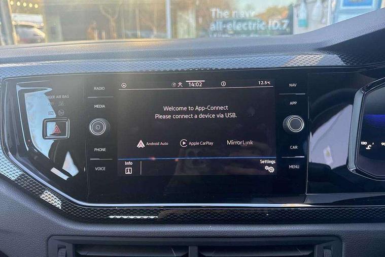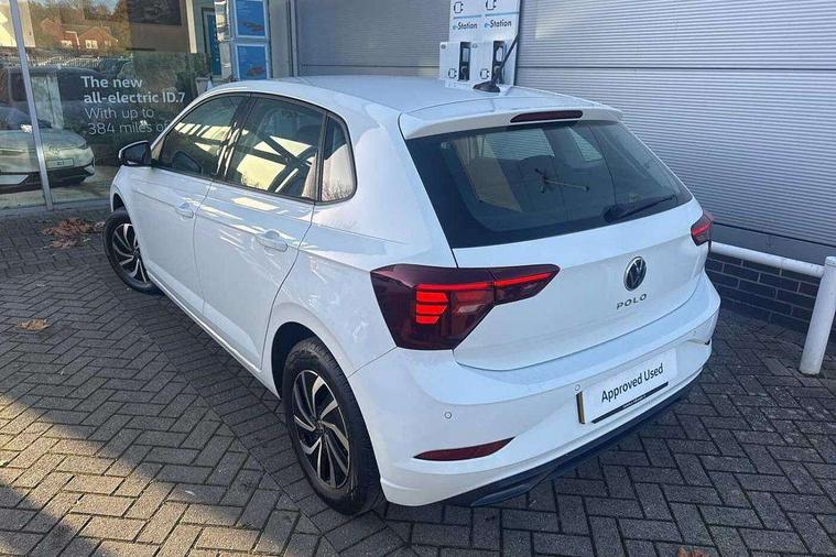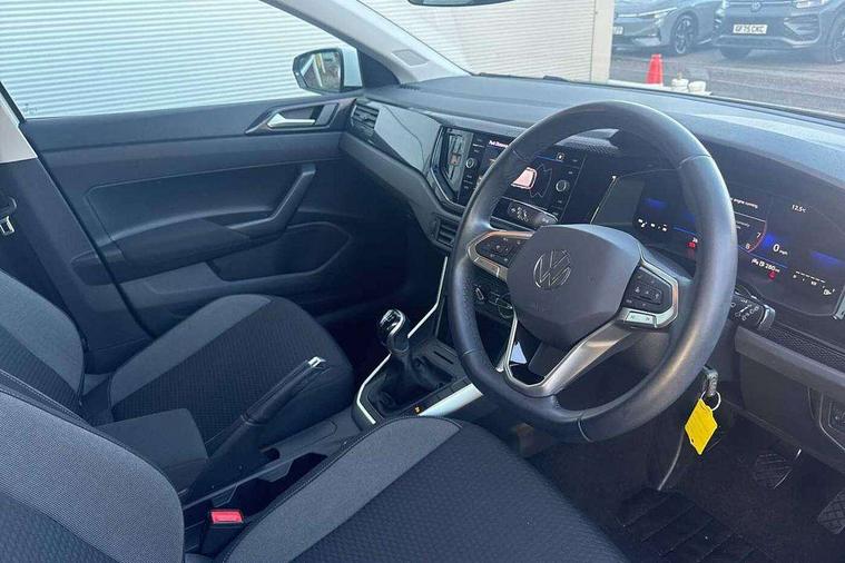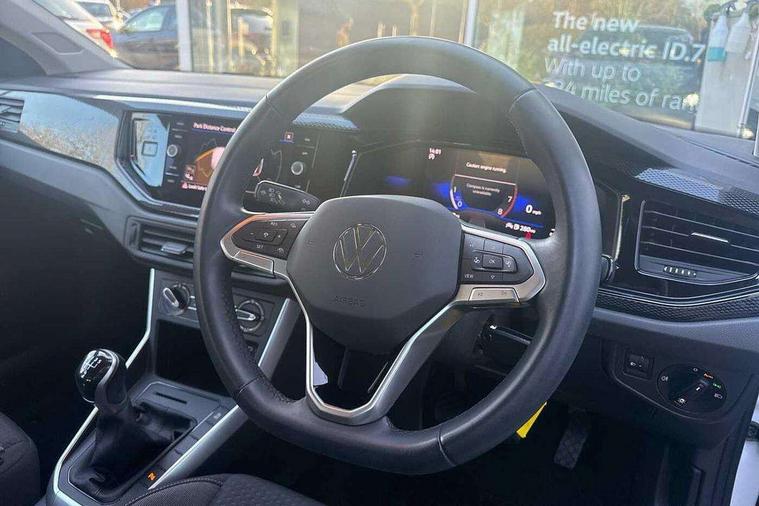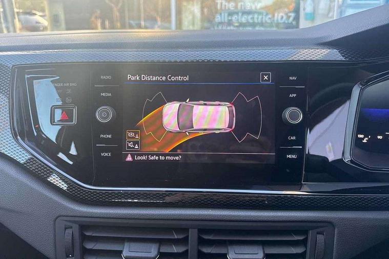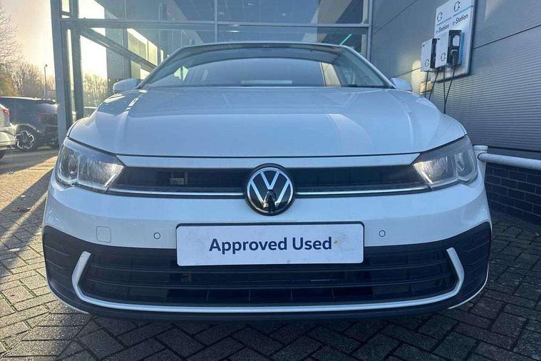 Adaptive cruise control without follow-to-stop and speed limiter, Bluetooth mobile phone interface, Driver alert system, Emergency call service, Front assist system, Power assisted speed sensitive steering, Preparation for We connect and We connect plus, Speedo and rev counter, electronic odometer, trip, service interval display and fuel gauge, Standard rear axle, Travel Assist - Lane keeping system and traffic jam assist, Travel assist including emergency assist, Trip computer, Warning signal and warning light for front and rear seatbelts not fastened, Washer fluid level indicator, Wireless app connect, Front wheel drive, Rear shock absorpion, Start-stop system with battery regeneration (recuperation - energy recovery during braking), DAB Digital radio, Diversity antenna for FM reception, Front and rear 6 speakers, Automatic dimming interior rear view mirror, Body colour bumpers, Body colour door handles, Body colour door mirrors, Electric front windows, Heat insulating darkened glass in side and rear windows, Heat insulating glass windscreen, Power folding adjustable/heated exterior mirrors and front passenger exterior mirror lowering function, Rain sensor, Rear electric windows, Rear fog light, Rear side wing doors, Rear windscreen washer and wiper with interval delay, Third brake light, 12V power socket in centre console, 2 front and 2 rear reading lights, 2 USB-C ports in the front, 2 USB-C charging sockets on the center console in the rear, 3 rear head restraints, 60/40 split folding rear seat and rear seat bench not split, Ceramique headliner, Chrome plated radiator grille inserts, air vent surrounds and light switch surrounds, Door and side trim panel, Driver and front passenger seat height adjustment, Driver/passenger sunvisors with illuminated vanity mirrors, Front centre armrest, Front seat backrest storage pockets, Front standard seats, Handbrake lever handle in leather, Hartley/Thomas cloth upholstery, Isofix child seat preparation easy-fit (for two outer rear seats, and front passenger seat) compatible with I-size, Leather trimmed gear knob, Luggage compartment cover, Luggage compartment floor, Luggage compartment lighting, Multifunction steering wheel, Single front passenger seat, Standard pedal cluster, Light and vision pack - Polo, 3 point height adj front seatbelts + pretensioners, 3x3 point rear seatbelts, ABS, Driver and front passenger airbag with front passenger airbag deactivation, Drivers and front passengers safety optimised head restraints, ESC (Electronic stability control) + EDL (Electronic Differntial lock) and ASR (Traction control), Extended and predictive pedestrian/ cyclist protection, Front curtain and side airbags with center airbag, Front disc brakes, Hill hold control, Manual child lock in rear doors, Rear drum brakes, Single tone horn, Tyre pressure loss indicator, Alarm with interior protection, Anti-theft alarm system with interior monitoring, backup horn, and towing protection, Anti-theft wheel bolts, Electronic engine immobiliser, Lava stone black gloss/matt decorative inserts in dash and front door panels, Low rolling resistance tyres,