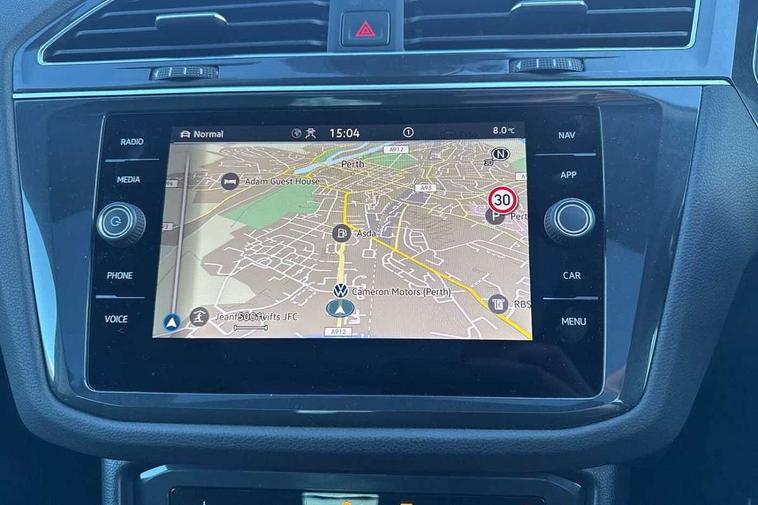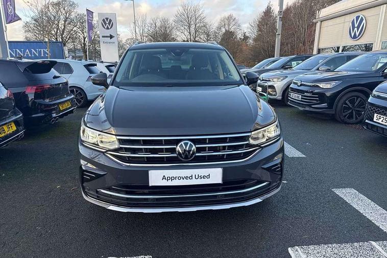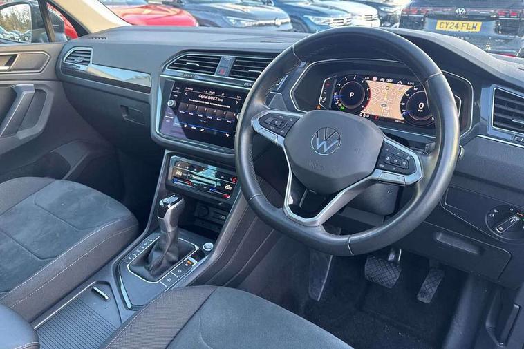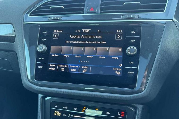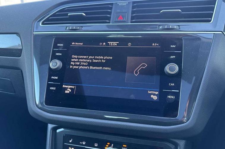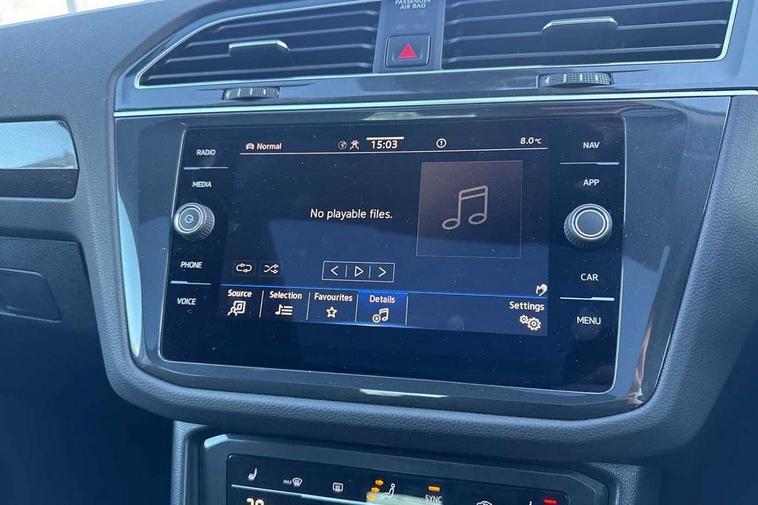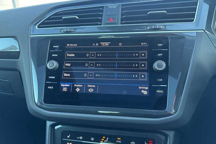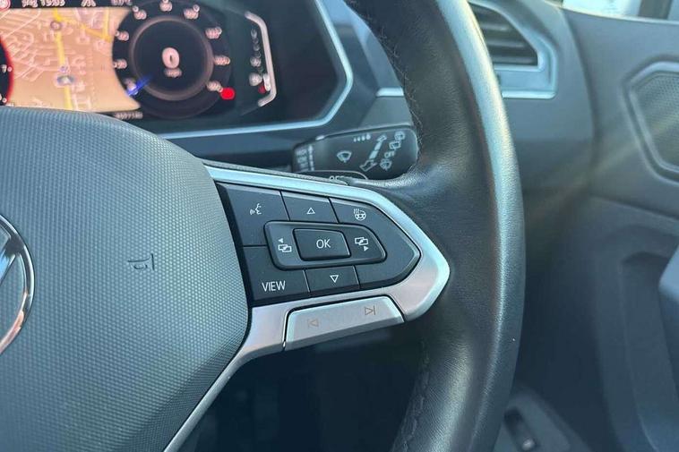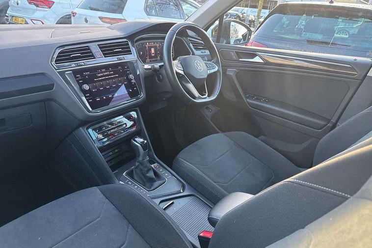 Adaptive cruise control ACC stop and go including speed limiter, App-Connect incl. App-Connect Wireless for Apple CarPlay and Android Auto, Bluetooth phone integration system, Distance control assist, Driver alert system, Driver profile selection, Dynamic road sign display, eCall emergency call system, Electromechanical speed sensitive power steering, Engine start/stop button, Lane keeping system Lane Assist, Lights on warning, Motorised electric tailgate operated via key fob, drivers door and foot movement under tailgate, Multifunction front facing camera, Outside temperature display, Premium multifunction display with multi colour display, Remote control boot opening, Rev counter, Revision / skills operating concept travel assistant, Service interval indicator, Speed limit display, Start/stop system with regenerative braking, Tailgate/trunk lid unlocking from outside, Trip computer, Warning sound and light for doors and tailgate open, Battery regeneration during braking, XDS electronic differential lock for improved traction and handling, 4 X 20 watt output, 8 Speakers, Diversity antenna for FM reception, Radio, SD card slot, Simultaneous pairing of 2 compatible mobile devices, SMS functionality - read, compose and send SMS messages using touch-screen display, Title and cover art display, USB C ports, Aluminium door sill protectors, Auto dimming interior rear view mirror, Automatic headlight control system, Body colour door handles, Body coloured bumpers, Body coloured door mirrors with integrated indicators, Coming/leaving home lighting function, Dynamic headlight range control, Front and rear electric windows, Heated rear window, High level 3rd brake light, IQ light-Adv high beam, Dynamic light assist for LED matrix headlamp+LED separate DRL+DCL, dark red rear LED tech, Poor weather light+ cornering light, Laminated safety glass windshield, heat and sound insulating, LED rear number plate lights, Poor weather light and cornering light, Privacy glass for rear side windows and rear window, Rain sensor windscreen wipers, Rear exhaust tailpipe, Rear fog lamp, Rear side wing doors, Rear windscreen washer and wiper with interval delay, Side and rear windows in heat insulating glass, Tilting and sliding panoramic sunroof with rear panoramic sunroof, Trailer Stability Programme, Windscreen wipers/ intermittent wipe + 4 position delay, 12V outlet in center console rear and in luggage compartment, 12V outlet in front and tray, 2 cup holders in front, 2 LED front reading lights, 2 LED rear reading lights, 3 bench rear seats in 2nd row, 3 rear headrests, 4 load lashing points, 40:20:40 split folding rear seats, Air Care Climatronic 3 zone automatic climate control with enhanced air filter and controls in the rear, Backrest release for left front seat, Climate control unit rear with touch function, Door and side trim panel in foam film and woven fabric, Front centre armrest, Front footwell illumination, Front seats head restraints (x-adjustment), Height adjustable front seats, Height/reach adjust steering wheel, Instrument lighting white adjustable panel illumination, Interior light with delay, Isofix Preparation 2 Rear child seats, Leather gear knob, Lockable cooled glovebox, Luggage compartment lighting, Luggage net, Rear bench seat asymetrically split folding, longitudinally movable and folding with load-through hatch and center armrest, Remote unlocking for rear seat backrest, Removable luggage cover, Removable rear headrests, Safety optimised front head restraints, Single front passenger seat, Sliding/reclining rear seats, Standard rear seat release, Storage compartment in driver's door, Storage compartment in passenger's door, Storage compartment in rear doors, Storage compartments in luggage area left and right, Storage tray on dashboard, Sun visors with illuminated vanity mirrors, Top front comfort seats, Variable boot floor, height adjustable and removable, Easy open and close pack with safelock - Tiguan, 3 point seat belt for centre rear seats, 3 point seat belts with seat belt pretensioners for the outer rear seats, Active bonnet, Curtain airbags for front and rear passengers, Driver/Front Passenger airbags, Drivers knee airbag, Electronic parking brake with auto hold, Electronic Stability Control with driver steering recommendation, ABS, ASR, EDL, EDTC and trailer stabilization, Front assist with autonomous emergency braking (for Adaptive Cruise Control ACC up to 130 mph), Front disc brakes, Front passenger airbag deactivation, Front side airbags, Height adjustable front 3 point seatbelts + pretensioners, Hill hold control, Manual child proof rear door locks, Pedestrian monitoring system, Power assisted brakes, Proactive passenger protection system in combination with front assist, Rear disc brakes, Rigid safety cell with front and rear crumple zones, Two tone horn, Warning sound and light for front seat belts if unfastened, Anti theft alarm system with interior monitoring, backup horn and towing protection, Anti theft wheel bolts, Central locking system with safelock radio remote control and 2 remote control folding keys, Electronic engine immobiliser, Tool kit,