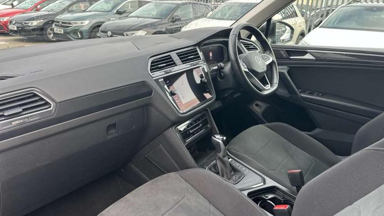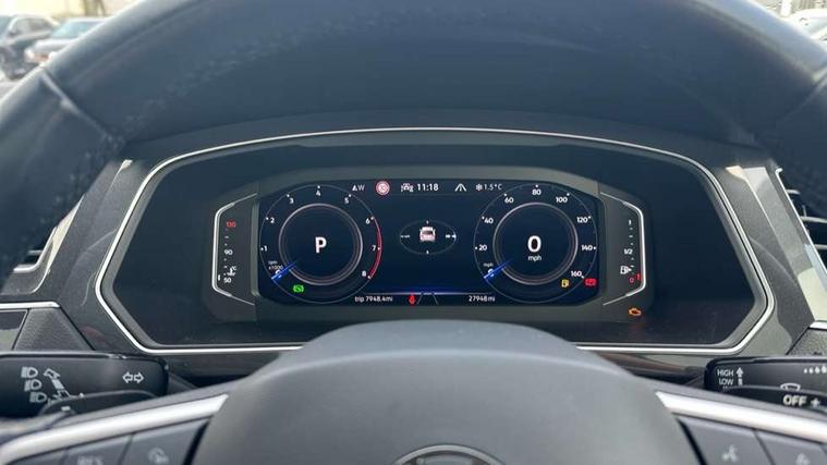 Adaptive cruise control ACC stop and go including speed limiter, App-Connect incl. App-Connect Wireless for Apple CarPlay and Android Auto, Bluetooth phone integration system, Distance control assist, Driver alert system, Driver profile selection, Dynamic road sign display, eCall emergency call system, Electromechanical speed sensitive power steering, Engine start/stop button, Lane keeping system Lane Assist, Lights on warning, Motorised electric tailgate operated via key fob, drivers door and foot movement under tailgate, Multifunction front facing camera, Outside temperature display, Premium multifunction display with multi colour display, Remote control boot opening, Rev counter, Revision / skills operating concept travel assistant, Service interval indicator, Speed limit display, Start/stop system with regenerative braking, Tailgate/trunk lid unlocking from outside, Trip computer, Warning sound and light for doors and tailgate open, Battery regeneration during braking, XDS electronic differential lock for improved traction and handling, 4 X 20 watt output, 8 Speakers, Diversity antenna for FM reception, Radio, SD card slot, Simultaneous pairing of 2 compatible mobile devices, SMS functionality - read, compose and send SMS messages using touch-screen display, Title and cover art display, USB C ports, Aluminium door sill protectors, Auto dimming interior rear view mirror, Automatic headlight control system, Body colour door handles, Body coloured bumpers, Body coloured door mirrors with integrated indicators, Coming/leaving home lighting function, Dynamic headlight range control, Front and rear electric windows, Heated rear window, High level 3rd brake light, IQ light-Adv high beam, Dynamic light assist for LED matrix headlamp+LED separate DRL+DCL, dark red rear LED tech, Poor weather light+ cornering light, Laminated safety glass windshield, heat and sound insulating, LED rear number plate lights, Poor weather light and cornering light, Privacy glass for rear side windows and rear window, Rain sensor windscreen wipers, Rear exhaust tailpipe, Rear fog lamp, Rear side wing doors, Rear windscreen washer and wiper with interval delay, Side and rear windows in heat insulating glass, Tilting and sliding panoramic sunroof with rear panoramic sunroof, Trailer Stability Programme, Windscreen wipers/ intermittent wipe + 4 position delay, 12V outlet in center console rear and in luggage compartment, 12V outlet in front and tray, 2 cup holders in front, 2 LED front reading lights, 2 LED rear reading lights, 3 bench rear seats in 2nd row, 3 rear headrests, 4 load lashing points, 40:20:40 split folding rear seats, Air Care Climatronic 3 zone automatic climate control with enhanced air filter and controls in the rear, Backrest release for left front seat, Climate control unit rear with touch function, Door and side trim panel in foam film and woven fabric, Front centre armrest, Front footwell illumination, Front seats head restraints (x-adjustment), Height adjustable front seats, Height/reach adjust steering wheel, Instrument lighting white adjustable panel illumination, Interior light with delay, Isofix Preparation 2 Rear child seats, Leather gear knob, Lockable cooled glovebox, Luggage compartment lighting, Luggage net, Rear bench seat asymetrically split folding, longitudinally movable and folding with load-through hatch and center armrest, Remote unlocking for rear seat backrest, Removable luggage cover, Removable rear headrests, Safety optimised front head restraints, Single front passenger seat, Sliding/reclining rear seats, Standard rear seat release, Storage compartment in driver's door, Storage compartment in passenger's door, Storage compartment in rear doors, Storage compartments in luggage area left and right, Storage tray on dashboard, Sun visors with illuminated vanity mirrors, Top front comfort seats, Variable boot floor, height adjustable and removable, Easy open and close pack with safelock - Tiguan, 3 point seat belt for centre rear seats, 3 point seat belts with seat belt pretensioners for the outer rear seats, Active bonnet, Curtain airbags for front and rear passengers, Driver/Front Passenger airbags, Drivers knee airbag, Electronic parking brake with auto hold, Electronic Stability Control with driver steering recommendation, ABS, ASR, EDL, EDTC and trailer stabilization, Front assist with autonomous emergency braking (for Adaptive Cruise Control ACC up to 130 mph), Front disc brakes, Front passenger airbag deactivation, Front side airbags, Height adjustable front 3 point seatbelts + pretensioners, Hill hold control, Manual child proof rear door locks, Pedestrian monitoring system, Power assisted brakes, Proactive passenger protection system in combination with front assist, Rear disc brakes, Rigid safety cell with front and rear crumple zones, Two tone horn, Warning sound and light for front seat belts if unfastened, Anti theft alarm system with interior monitoring, backup horn and towing protection, Anti theft wheel bolts, Central locking system with safelock radio remote control and 2 remote control folding keys, Electronic engine immobiliser, Tool kit,