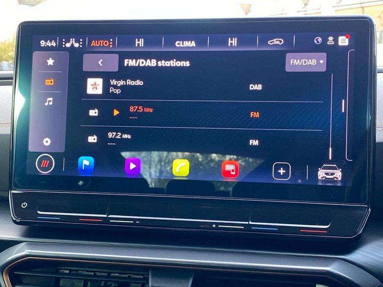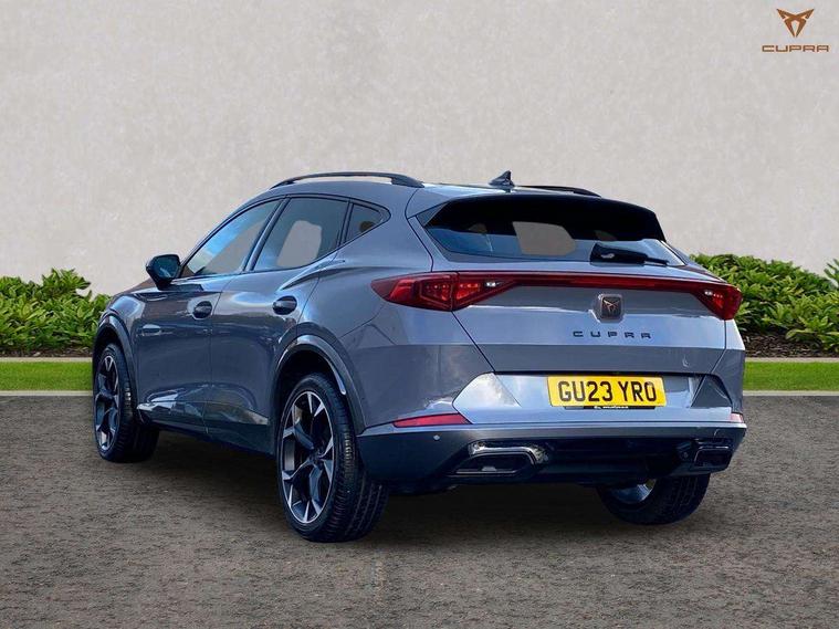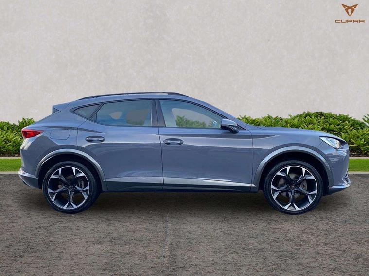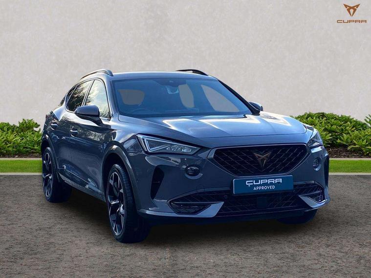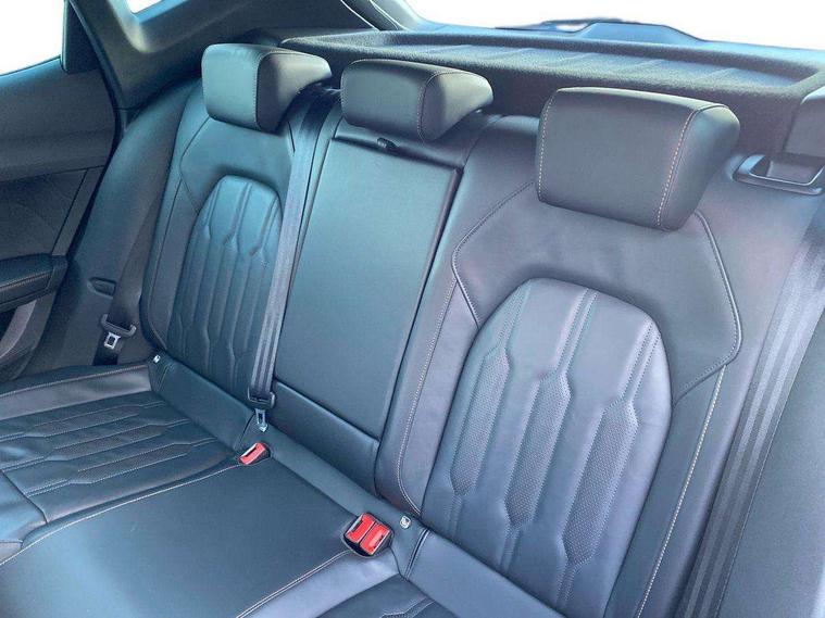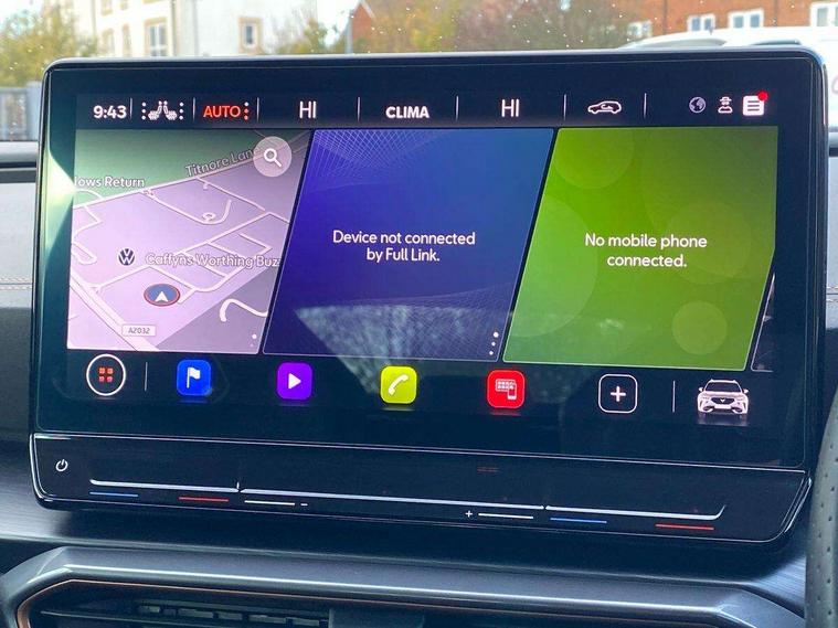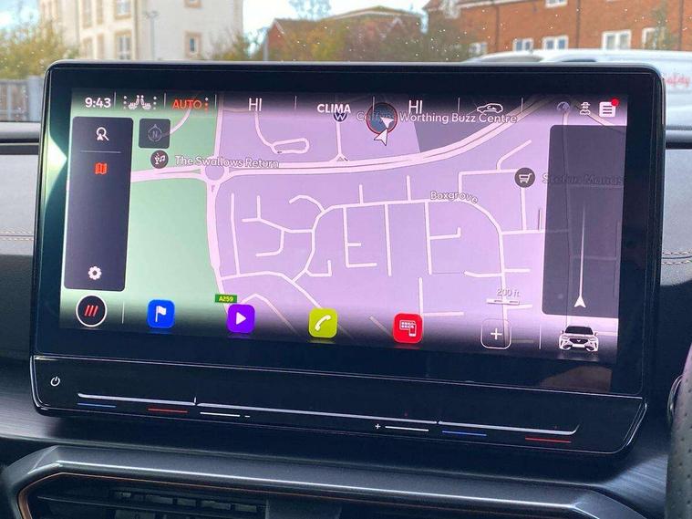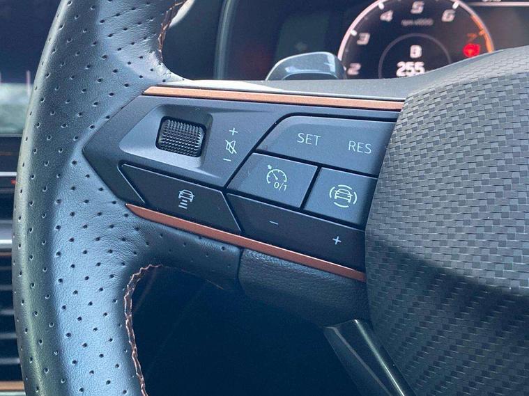 Digital cockpit and configurable dashboard, Driver alert system, Driving profile selection, Forward collision warning with automatic braking, Lane assist, Navigation system with 12'' Touchscreen Display, Park assist (inc front/rear parking sensors), PAS, Predictive adaptive cruise control with speed limiter, Rear view camera, RPM, trip computer, outside temp gauge, instrument light brightness, low fuel warning light, lights on reminder, gearshift indicator, Service interval indicator, Start/stop system with regenerative braking, Voice control system, Wireless apple carplay, Wireless phone charger, Electronic locking differential and dynamic traction support, Standard suspension, 2 front and 2 rear USB type C sockets, Auxiliary input socket, DAB radio, Auto dimming rear view mirror, Body colour door handles, Body coloured bumpers, Dark grey wing mirror, Daytime running light with automatic headlight control and coming home feature, Dynamic headlight range control, Electric front/rear windows, Electrically adjustable heated and folding door mirrors with memory function, Front fog lamps with cornering function, Gloss black roof rails and window surrounds, LED Headlights, LED Taillights with dynamic indicator, Rain sensing wipers, Rear diffuser with black simulated exhaust pipes, Rear side wing doors, Rear wash/wipe, Third brake light, Tinted rear windows, Welcome lights, 12v power supply in centre console, 12V socket, 12v socket in loadspace, 2 front and 2 rear reading lights, 230V socket, 3 seat bench in 2nd row, 60/40 split rear bench seat with armrest and mechanical seat release, Black headlining, Dust/pollen filter, Front and rear head restraints, Front centre armrest, Height/reach adjust steering wheel, Illuminated interior front door sills, Illuminated sunvisor with mirror, Isofix, Leather multi function heated steering wheel with gear shift paddles, Luggage tie-down hooks, Single front passenger seat, Three zone climate control with control panel in rear, Variable luggage/load compartment floor, Wraparound lighting, Genuine Nappa leather Pack - Cupra, 3 point seatbelts on all rear seats, ABS, Brake control system - ESC and brake booster, Child proof door locks, Driver and front passenger airbags with front passenger airbag de-activation, Electronic parking brake, Front and rear disc brakes, Front side curtain airbags, Hill hold control, Public e-call, Seat belt reminder for front and rear seats, Tyre pressure monitoring system, Anti theft alarm system, Keyless entry and start system (KESSY), Locking wheel bolts, Copper and aluminium interior detailing, 19" 'Exclusive' machined sport matte black and silver alloy wheels,