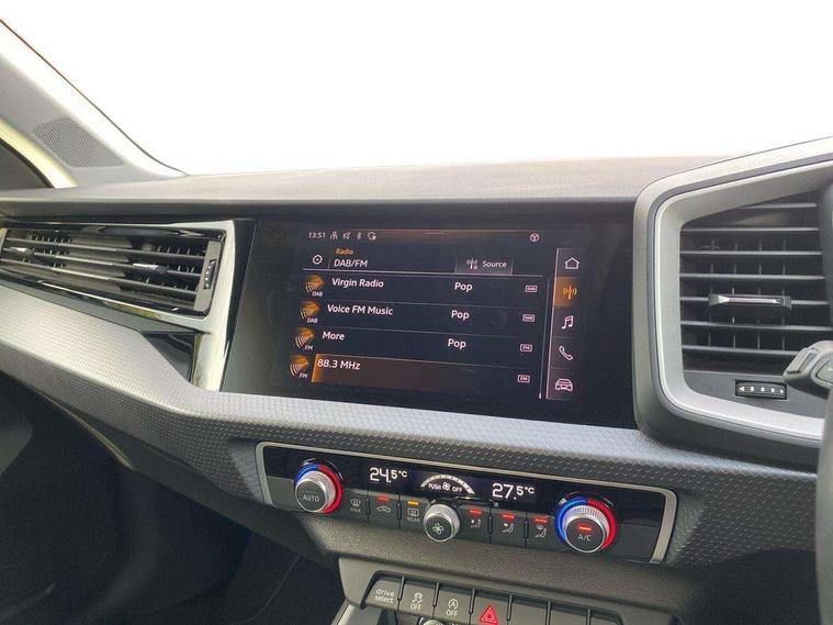 10.25" Digital instrument cluster display classis style instrument dials + speed, odometer, time, outside temperature, telephone menu + fuel level warning, Audi connect safety emergency and service including E-call, Audi drive select - power steering assistance + engine, Audi smartphone interface with connect compatible smartphone via USB directly MMI display + Nav, music, third party apps controlled via MMI controller, Automatic start/stop system, Bluetooth interface, Cruise control, Driver's information system, Electromechanical power steering, Emergency services call system, Lane departure warning system, Service interval indicator, Speed limiter, Voice control system, Washer fluid level indicator, Dynamic suspension, 1 x SDXC card reader, 2 x USB type C connection points, DAB Digital radio, MMI radio plus with 8.8" colour MMI display screen and MMI touch, Auto dimming rear view mirror, Body coloured bumpers, Body coloured door mirrors, Electric front and rear windows, Electrically adjustable, heated, folding door mirrors with integrated LED side indicator, Front side air inlets in grained matt black and C frame in titanium black, Heat insulating glass windscreen and side windows, Heated rear windscreen, High level LED brake light, LED headlights with LED rear lights + dynamic rear indicators + headlight adjustment and high beam, turning light + LED daytime running lights, Radiator grille and rear diffuser in matt titanium black, Radiator protective grille frame in matt aluminium silver, Rain and light sensors, Rear fog lights, Rear side wing doors, Rear wing door, Rear wiper, Side front spoiler lips in grained matt black, 12V socket in centre console with two cup holders, 3 rear seats with headrests, 3 seat bench in 2nd row, 40:60 Split folding rear seat or folded fully, Door sill trims with aluminium inlay, Driver and passenger seat with manual height adjust with forward and backwards adjustment, Front head restraints, Front passenger seat, Front/rear floor mats, Height and reach adjustable steering wheel, ISOFIX child seat mounting for front passenger and outer rear seats including top tether attachment point of outer rear seats, Leather gear knob with aluminium trim, Leatherette handbrake grip, Luggage compartment light with front and rear reading lights, Manually adjustable lumbar support in front seats, Novum cloth upholstery with front sport seats, Titanium grey cloth headlining, Luggage compartment pack - A1, 3x3 point rear seatbelts, Audi pre-sense front with pedestrain and cyclist recognition, Brake assist function, Driver and front passenger airbag with front side and head airbags, Electronic Stability Control including ABS, EBD, ASR and EDL, Front passenger airbag deactivation switch, Hill hold assist, Manual rear child locks, Seatbelt height adjustment for front seats, Seatbelt monitoring, Tyre pressure warning light, Warning triangle and first aid kit, Anti theft alarm, Anti theft wheel bolts and loose wheel warning, Immobiliser, Remote central locking with 2 foldaway keys, Aluminium trim for control switches, air vents and digital instrument cluster, Silver grey accent areas including air vents, door handle recesses and centre console in diamond paint finish, Slate grey inlays polygon structure in fine paint finish,