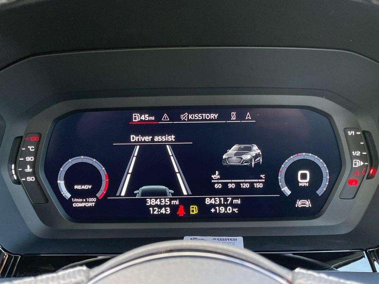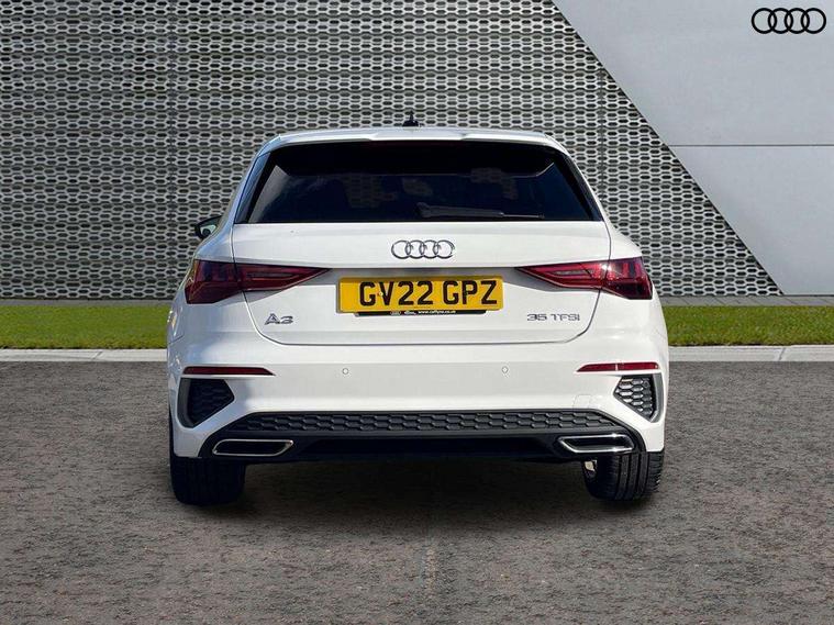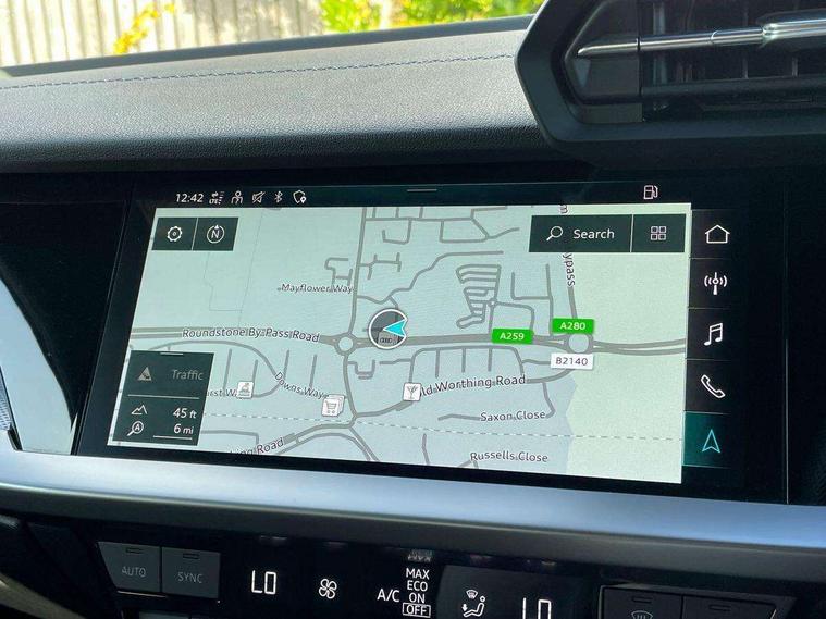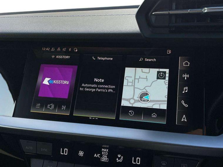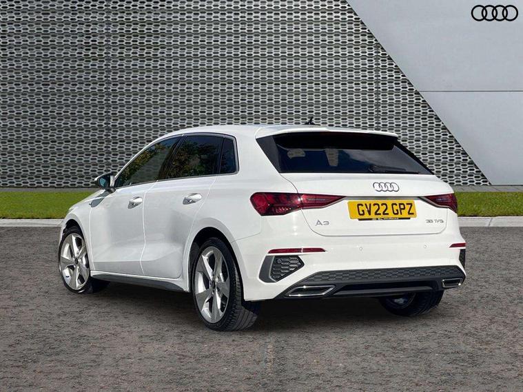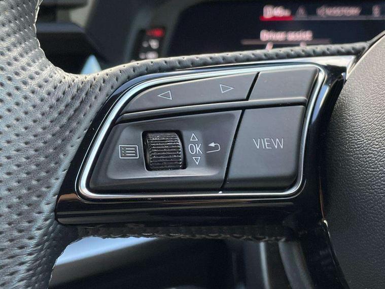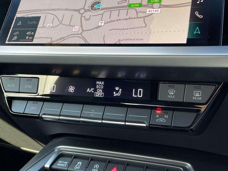 Audi drive select (Auto, Comfort, Dynamic, Efficiency and Individual), Audi smartphone interface, Audi Virtual Cockpit - 10.25" digital and colour instrument cluster, Automatic start/stop system with recuperation, Bluetooth interface, Collision avoidance assistant, Cruise control, e-Call (emergency call), Electromechanical power speed sensitive steering, Lane departure warning system, MMI Navigation Plus with high resolution 10.1" colour touch screen display, Rear parking sensors, Service indicator, Trip computer, Voice control system with natural language interaction, 2xUSB-C connection with data and charging functions, 6 passive loudspeakers, DAB Digital radio, 3rd brake light, Acoustic glass windscreen, Aluminium window trim, Auto dimming frameless rear view mirror, Electrically adjustable/heated/folding/auto dimming door mirrors with integrated LED indications + kerb view function for passenger side, Front electric windows, Illuminated aluminium inserts front door sills with S logo, LED daytime running lights, LED headlights with LED rear lights and dynamic rear indicators, Light and rain sensors, Privacy glass - dark tinted rear window, rear door and side windows, Rear electric windows, Rear side air outlets in grained matt black, Rear side wing doors, Rear wiper, S line bumpers, S roof spoiler, 12V socket and storage compartment in front centre console, 3 seat bench in 2nd row, 40/20/40 split folding rear seat bench with cupholder, Black cloth headlining, Dual zone electronic climate control, Front and rear centre armrest in leather, Front and rear headrests, Front/rear floor mats, Height and reach adjustable steering wheel, Illuminated vanity mirror, Interior lighting - glove compartment light and right hand side, Luggage compartment floor covering, Manual boot compartment lid, Manually adjustable front seats, Seat side bolsters, Single front passenger seat, Stainless steel pedals and front footrest in black, Twin leather upholstery with front sports seats S embossed logo, Aluminium interior elements pack - A3 Sportback, S line styling pack - A3 Sportback, 3x3 point rear seat belts, Audi pre sense front, Driver and front passenger airbag with passenger airbag deactivation, Electronic Stabilisation Control (ESC) including ABS, ASR and EDL, First aid kit with warning triangle and 2 safety vests, Front side airbags with head airbags and interaction airbag, Pre-sense front with pedestrian and cyclist detection, Seatbelt monitoring, Tyre pressure loss indicator, Anti theft alarm, Anti-theft wheel bolts, Immobiliser, Manual child locks, Remote control central locking, Accent surfaces in the dashboard and centre console in platinum grey silk effect paint finish, Dark spectrum aluminium inlays,
