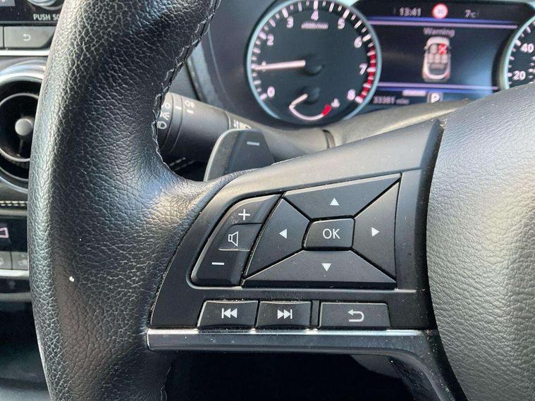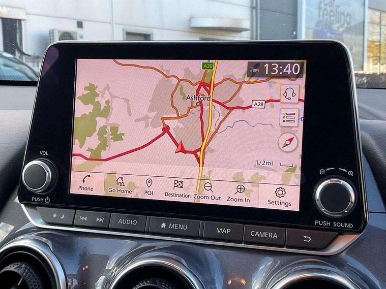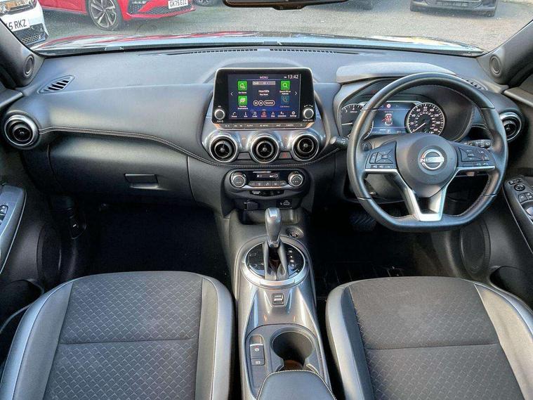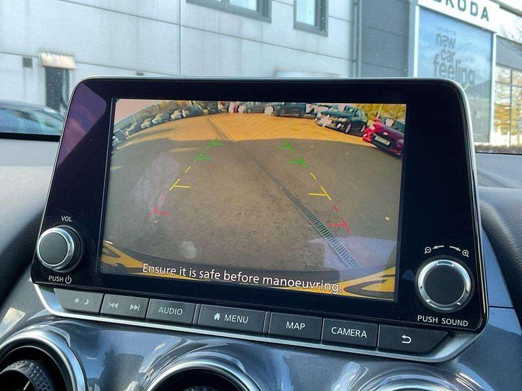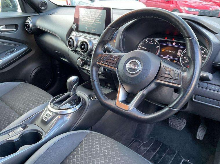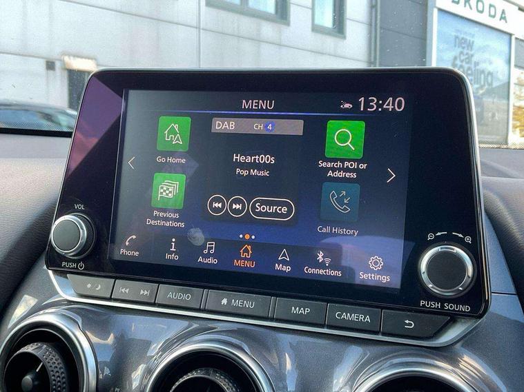 7" full colour TFT screen combimeter, Apple CarPlay and Google Android auto, Drive modes select (Eco, normal and sport), Emergency and breakdown call, Front parking sensor, Idle start/stop system, Intelligent lane intervention, Lane departure warning system, Nissan connect 8" touch screen entertainment system, Nissan connect nav with TomTom traffic, Nissan connect services and Wifi connection, Outside temperature sensor, Power Steering, Rear parking sensor, Traffic sign recognition, Trip computer, Voice recognition, Gasoline particulate filter, 6 speakers, Bluetooth system, USB, Aux-in and 12V socket, DAB Digital radio, Rear console USB port, Auto dimming interior rear view mirror, Auto headlights, Automatic hazard signal with emergency stop signal, Body colour bumpers, Body colour door handles, Electrically adjustable door mirrors with integrated indicators, Follow me home headlights, Front and rear electric window with one touch driver window, Heated and auto folding door mirrors, High beam assist, LED 3rd brake light, LED daytime running lights, LED headlamps, LED rear fog lamp, LED rear lamps, Rain sensor windscreen wipers, Rear privacy glass, Rear side wing doors, Rear wiper, Roof spoiler, Shark fin roof antenna in Pearl Black, Three blink turn signal, 3 height adjustable rear headrests, 3 seat bench in 2nd row, 60/40 split folding rear seat, Automatic climate control, Card holder on driver sunvisor, Cloth upholstery with black and metallic grey syntech leather inserts, Driver and passenger sliding and reclining seats, Driver side rear coat hanger, Driver/passenger sunvisors and vanity mirrors, Front and rear cabin lights, Front armrest, Front door pockets with bottle holders, Front head restraints, Front/rear passenger grab handles, Grey synthetic leather kneepad, Height adjustable driver's seat, Internal chrome door handles, Leather gearshift knob, Leather steering wheel, Luggage board, Luggage space lighting, Monoform sporty seats, Multifunction steering wheel, Rear door bottle holders, Single front passenger seat, Steering wheel mounted gearshift paddles, Telescopic steering wheel adjustment, Two cupholders in front centre console, Two rear isofix child seat anchorage points with top tether, Welcome light and console tray ambient lighting, ABS with EBD and brake assist, Active ride control, Active Trace Control, Driver and passenger airbags, Driver and passenger side airbags, Electric handbrake with auto hold function, Electronic Stability Programme (ESP), Front and rear curtain airbags, Height adjustable seatbelts, Hill start assist, Intelligent emergency braking with pedestrian and cyclist recognition, Rear door child safety locks, Seatbelt reminder for driver/front passenger and rear seats, Single tone horn, Three 3 point rear seatbelts, Traction control, Tyre pressure monitoring system, VDC Dynamic Vehicle Control, Ventilated rear brake discs, Alarm, Immobiliser, Intelligent key and start push button with walk away lock and approach unlock functions, Remote central locking,