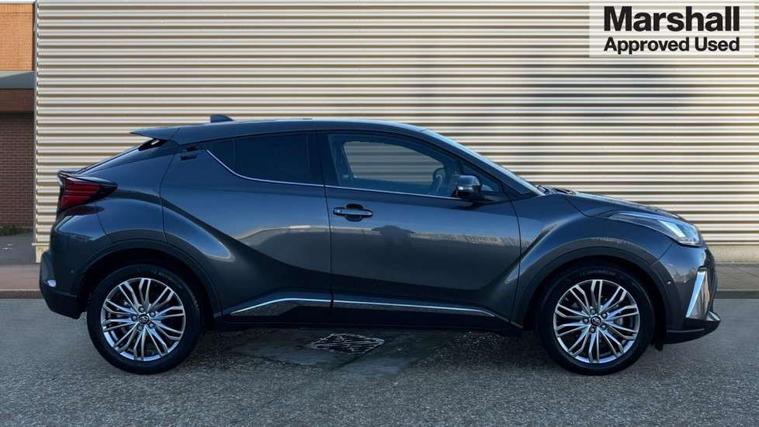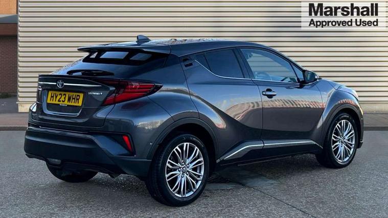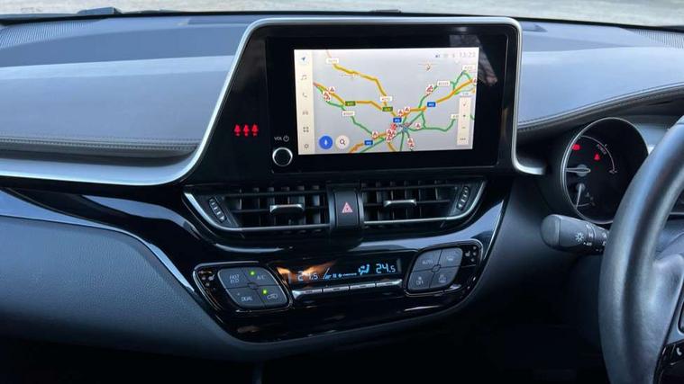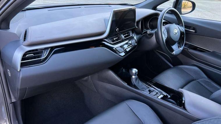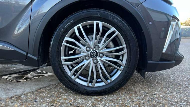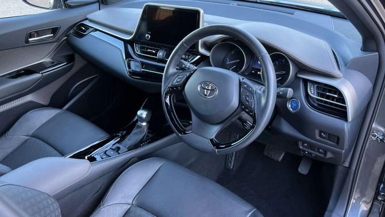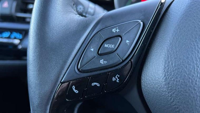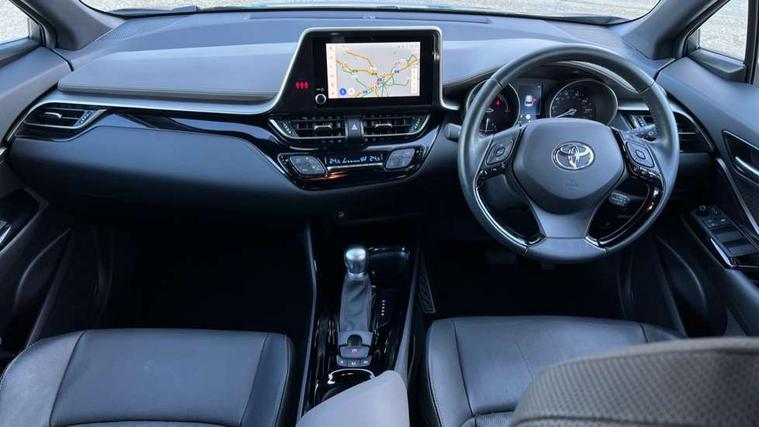 4.2" coloured TFT screen for multi-information display, Adaptive cruise control, Apple car play and Android auto, Bluetooth connectivity, E-call, Electric power steering, Hybrid system indicator, Lane departure alert with steering control, Lane trace assist, Push button tailgate release, Remote boot door release in cabin, Remote boot door release in key, Reversing camera, Road sign assist - RSA, Simple Intelligent parking assist, Smart voice assist, Touch 2 Go navigation system, Trip computer, Voice recognition, Wireless smartphone integration, Vehicle Stability Control (VSC), 6 speakers, AM/FM radio, DAB Radio (Digital Audio Broadcasting), Toyota touch 2 multimedia system with 8" display, USB connector, Wi-fi connectivity, Adaptive front light system, Adaptive LED Headlights, Anti-jam protection on power windows, Auto high beam, Auto up and down function on all power windows, Automatic headlight levelling, Automatic headlights, Automatic headlights cut-off, Black and body coloured rear bumper, Black lower front grille, Black upper front grille, Body colour door handles, Body colour door mirrors, Body colour front spoiler lip, Body coloured front bumper, Boot door release with push button, Electric heated door mirrors, Follow me home headlights, Front and rear power windows, Headlight cut off reminder, Honeycomb lower front grille, LED daytime running lights, LED fog lights, LED front light guide, LED High mounted stop light, LED rear brake lights, LED rear combination lights, Noise reduction layer on front windows and windscreen, Power adjustable door mirrors, Privacy glass, Rain sensor, Rear sequential indicators, Rear side wing doors, Rear spoiler, Rear tailgate, Rear window defogger, Rear window wiper, Shark fin antenna, UV-filter on driver and passenger windows, UV-filter on rear windows, Variable front intermittent wipers, 12v power outlet - front, 3 rear headrests, 3 seat bench in 2nd row, 3 spoke leather steering wheel, 60/40 split folding 2nd row rear seats, Adjustable rear headrests, Adjustable speed limiter switch on steering wheel, Assist grips front and centre pillar, Audio and telephone switches on steering wheel, Black front door assist grips, Blue ambient lighting on front cup holders, Blue ambient lighting on front doors, Boot light, Chrome interior door handles, Driver and front passenger personal light, Driver and front passenger Whiplash Injury Lessening seats, Driver and passenger seatback pockets, Dual zone automatic air conditioning, Floor mats, Front cupholders, Front head restraints, Front sports seats, Glovebox with internal light, Hard tonneau cover, Heated driver and front passenger seats, Heated steering wheel, Hooks for luggage holding net, Humidifying Nanoe air purifier, Illuminated entry system, Isofix attachments on outer rear seats, Leather gearshift, Light on driver sun visor, Light on passenger sun visor, Manual telescopic steering wheel, Manual tilt steering wheel, Microphone on front personal light, Mirror on driver sun visor, Mirror on passenger sun visor, Multimedia switches on steering wheel, Pollen filter, Power adjustable lumbar support on driver seat, Power tilting cushion on driver seat, Shopping bag hooks, Single front passenger seat, Slow opening on lower glovebox, Voice recognition switch on steering wheel, Leather pack - C-HR, Tech with parking sensor pack - C-HR, 16 Disk front wheel brake, 3x3 point rear seatbelts, ABS+EBD+Brake assist, Electronic parking brake, Front and rear seatbelt reminder, Front passenger airbag on/off switch, Hill start assist control (HAC), Pre collision system with pedestrian detection, Pre-tensioners and force limiters, Rear door child safety locks, SRS Airbags - Driver + Front passenger, front side, front and rear curtain and driver's knee airbags, Toyota safety sense, Tyre pressure monitoring system, Tyre pressure warning system, Acoustic vehicle alert system (AVAS), Glass-breaking alarm sensors, Immobiliser, Intrusion alarm, Intrusion sensor, Motion sensor alarm, Power door locks, Power passenger window lock, Remote central locking, Black lower dashboard, Dark brown upper dashboard, Piano black console, Silver deco line on upper dashboard, Tyre repair kit,