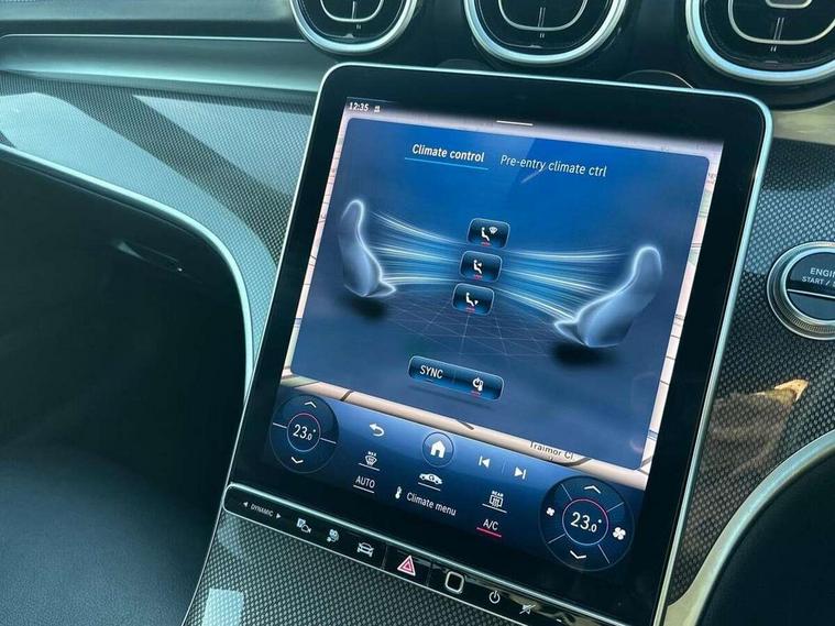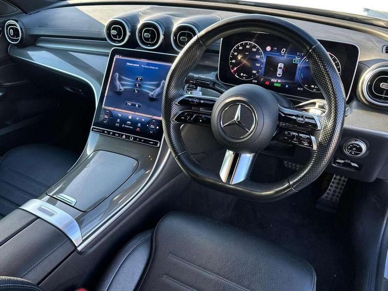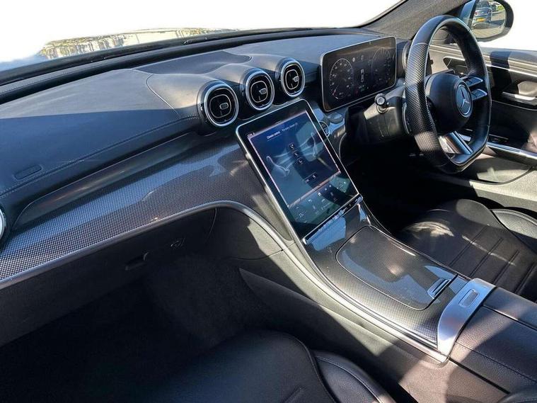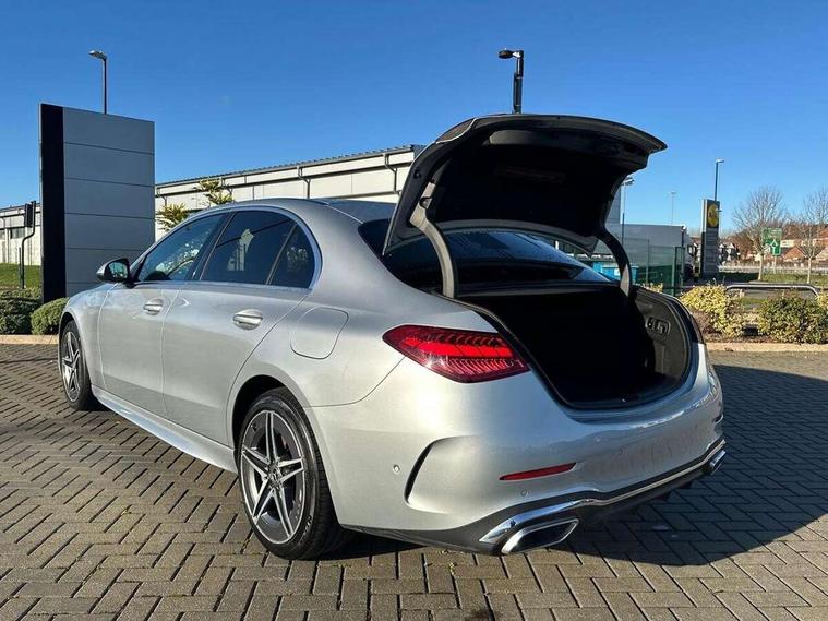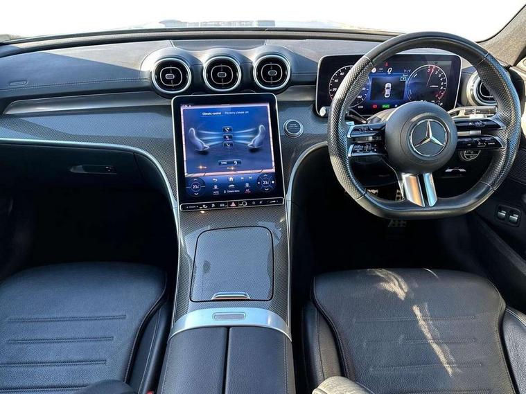 11.9" high resolution multimedia colour display, 12.3" digital instrument cluster display, Acoustic ambient protection, Active blind spot assist, Active brake assist plus, Active lane keeping assist, AMG DYNAMIC SELECT with a choice of driving modes (Slippery, Comfort, Sport, Sport+, Individual), Attention assist, Cruise control with speedtronic variable speed limiter, E-call, Extended MBUX functions, Finger print sensor, Fluorescent jacket for driver, MBUX navigation premium, MBUX voice control activated by keywords "Hey Mercedes", Mercedes connect me, Mercedes me remote services, Outside temperature gauge, Pre-installation for digital key transfer, Remote boot release, Service indicator (ASSYST), Smartphone integration, Speed limit assist, Sports direct steer speed sensitive steering, Status display for rear seat belts in instrument cluster, Traffic sign assist, Wireless charging system for mobile devices, 11 kW AC onboard charger, 50l fuel tank with increased capacity, 5m charging cable for household socket (mode 2), 5m charging cable for wall box/public charging stations(mode 3), 66l fuel tank with increased capacity, 9G TRONIC 9 speed automatic transmission, Agility control sports suspension and lowered by 15 mm, Petrol Particulate Filter, Sporty engine sound system, DAB Digital radio, MBUX multimedia system, Adaptive brake lights, Adaptive high beam assist, AMG body styling front apron, rear apron and side skirts, AMG front bumper with sporty air intakes and chrome elements, AMG rear bumper with high gloss chrome elements, AMG side skirts in vehicle colour, B-pillar trim in glossy black, Body coloured bumpers, Body coloured door mirrors, Chrome beltline trim, Daytime running lights, Electric windows with one touch opening/closing and obstruction sensors, Electrically adjustable and heated door mirrors, Green tinted glass, Heat insulating dark tinted glass, Illuminated front door sill panels, LED high performance headlamps, LED Indicators, LED tail lights, LED third brake light, Powerdomes on bonnet, Privacy glass, Radiator diamond grille with integrated Mercedes Benz star and louvre silver with chrome pins, Radio aerial integrated into rear window, Rain sensor with automatic windscreen wiper activation, Rear boot, Rear side wing doors, Side windows surround in polished aluminium, Two visible exhaust pipes integrated into rear bumper, 3 seat bench in 2nd row, 3 spoke flattened bottom AMG multifunction steering wheel in black nappa leather with chrome inserts and perforated leather in grip area, 40:20:40 split folding rear bench seat, AMG sports seats, Artico man-made leather upholstery, Audio and onboard settings control on multifunction steering wheel, Auto Mercedes-Benz child seat recognition sensor, Black air vents with silver chrome elements, Black floor mats with AMG lettering, Black roof liner, Door trim elements high gloss black with silver chrome surroundings and switches, Double cupholder in centre console, Folding rear seat backrest, Front and rear head restraints, Front centre armrest with storage compartment, Front door sills with Mercedes Benz lettering, Gearshift paddles on steering wheel, Heated front seats, Illuminated glove compartment stowage, Interior lighting - 64 colour Ambient lighting, Manually height and reach adjustable steering column, Overhead control unit in high gloss black, Rear top tether child seat ISOFIX attachment, Single front passenger seat, Sports pedals with stainless steel surfaces and rubber studs, Sunvisors with illuminated vanity mirrors, THERMATIC 2 zone automatic climate control, Interior lighting package - C Class, Memory package - C Class, Mirror pack - C Class, Parking package with reversing camera - C Class, Seat comfort pack - C Class, Stowage space pack - C Class, USB package - C Class, USB package plus - C Class, 3 rear 3 point seatbelts, Active bonnet pedestrian safety measure which detects an impact and raises bonnet, Adaptive brake system with HOLD function and brake drying in the wet, Anti-lock braking system (ABS), Black seat belts, Brake calipers with Mercedes-Benz lettering + perforated front brake discs, Child proof door locks, Drivers knee airbag, Drivers pelvis airbag, Dual stage driver/passenger airbags, Electric parking brake, Electronic Stability Programme (ESP), Front centre airbag between driver and front passenger seats, Front side airbags, Larger brake discs on front axle, Rear seatbelt warning indicator, Sports braking system, Tyre pressure monitoring system, Warning triangle and first aid kit, Window airbags for driver, front passenger and rear passenger, Central locking with interior switch, automatic locking and crash sensor with emergency opening function, Chrome surround in electric key, Keyless Go, URBAN GUARD vehicle protection (Thatcham Category 1) consisting of break-in, anti-theft alarm system (ATA), interior monitoring and tow-away protection, Artico man-made leather dashboard with contrast stitching, Centre console trim in metal weave, 18" AMG 5 spoke design aerodynamically optimised alloy wheels painted in tantalite grey with high sheen finish, Summer tyres, TIREFIT with tyre inflation compressor,