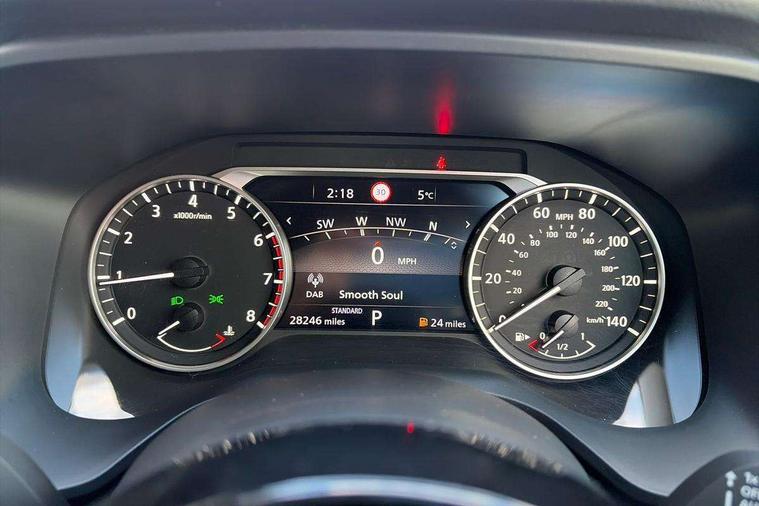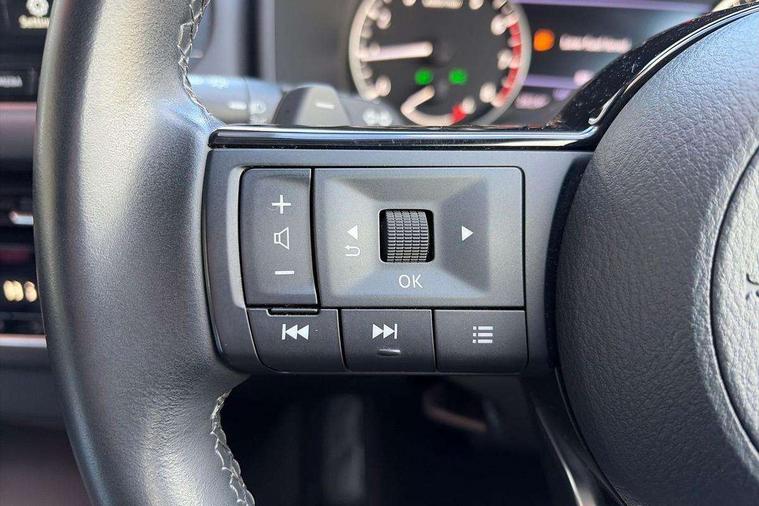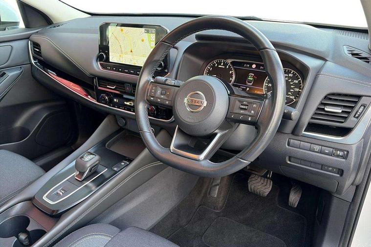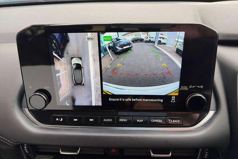 Android auto/Apple CarPlay (Wired), Blind spot warning, Drive modes (sport, normal, eco), Electric speed sensitive power steering, Emergency and breakdown call, Full Digital 12.3" TFT Digital Combimeter, Google maps services - search, weather, 3D maps and Google street view, Idle stop/start system, Intelligent around view monitor, Intelligent Cruise control (ICC), Intelligent driver alert system, Intelligent forward collision warning, Intelligent lane intervention, Lane departure prevention, Lane departure warning system, Maximum speed limiter, Moving object detection, Nissan connect 12.3 inch touchscreen infotainment system, Nissan connect navigation, Push button starter, Rear cross traffic alert, Rear parking sensors, Rear view camera, Remote control services - door locks, lights, horn and car locator, Telematics - notifications and connectivity services, TomTom live traffic services, Traffic sign recognition with legal speed adjustment, Trip computer, Virtual personal assistant and firmware over the air capability, Wireless apple carplay, 6 speakers, AM/FM audio system with DAB, Bluetooth audio streaming, Front USB connections (Type-A and Type-C), Rear USB charging only ports (Type-A and Type-C), Auto dimming rear view mirror, Auto rear wiper when reversing, Automatic hazard signal with emergency stop signal, Body colour mirror caps, Body coloured door handles, Bodyside mouldings, Chrome side window finisher, Door handle with button, Electric auto folding door mirrors, Electrically adjustable and heated door mirrors with LED turn indicator, Follow me home headlights, High beam assist, Intelligent auto headlights, LED daytime running lights, LED Headlights, LED rear lights, One touch front and rear electric windows with remote opening and closing, Partially body coloured bumpers, Privacy glass, Rear bumper with graphite insert, Rear reversing light (bulb lighting), Rear roof spoiler, Rear side wing doors, Rear styling plate, Shark fin antenna, Splash free rain sensing wipers, Super UV and infrared cut glass, Three blink turn signal, 12v power socket in dashboard and luggage, 2x Rear coat hooks, 3 bench rear seats in 2nd row, 3 rear headrests, 4 folding assist grip, 6 Luggage hooks - 4 on floor, 2 on side, 6-way manually adjustable driver's seat, 60/40 split folding rear seat bench, Ambient lighting around centre console, Centre console storage tray, Chrome interior door handles, Cloth monoform upholstery, Driver and front passenger sunvisors with illuminated vanity mirrors, Driver seat back pocket, Dual zone automatic climate control with pollen filter, Electrically adjustable lumbar support for driver, Front and rear door storage, Front centre console and armrest, Front cupholders x 2, Front door with bottle holders, Glovebox with light, Hard trunk cover, Height adjustable driver's seat, Height adjustable front headrests, Height adjustable passenger seat, Leather steering wheel, Luggage board system, Luggage space lighting, Manually adjustable passenger (slide recline + lifter), Multifunction steering wheel, Passenger seat back pocket, Rear armrest with 2 cupholders, Rear door bottle holders, Single front passenger seat, Soft PVC kneepad, Steering wheel gearshift paddles, Steering wheel switches, Sunglasses holder, Tilt/telescopic adjustable steering wheel, Two rear isofix child seat anchorage points with top tether, Welcome light and console tray ambient lighting, 3x3 point rear seatbelt pretensioners + load limiters, ABS with EBD and brake assist, Active brake limited slip, Auto hold function, Child locks on rear doors, Curtain and front side, far side airbags, Driver and passenger airbags, Driver, passenger and 2nd row rear seat belt reminder, Electronic parking brake, Front seatbelt pretensioners + load limiters, Height adjustable front seatbelts, Hill start assist, Intelligent blind spot intervention, Intelligent front emergency braking with pedestrian, cyclist recognition and junction assist, Intelligent rear automatic braking, Tyre pressure monitoring system, Vehicle dynamic control, Capless fuel filler, Engine immobiliser, Intelligent Key, Remote central door locking with deadlocking, Thatcham Cat.1 alarm, Interior instrumental panel B finisher, 18" Diamond cut alloy wheels, Tyre puncture repair kit,