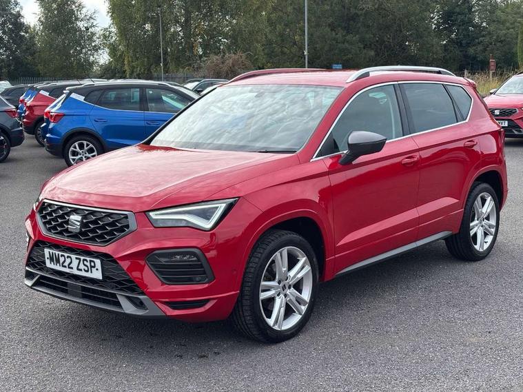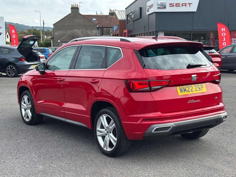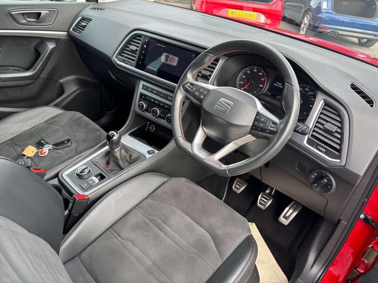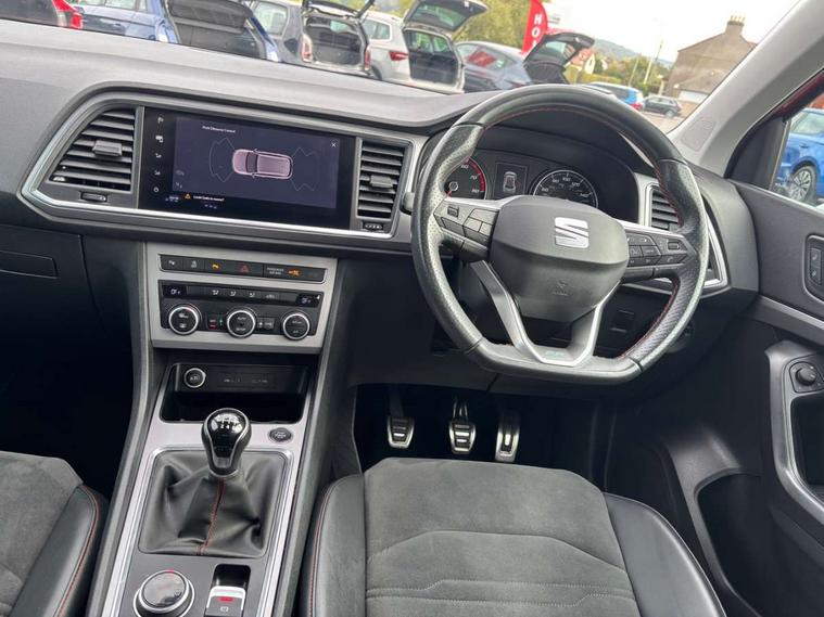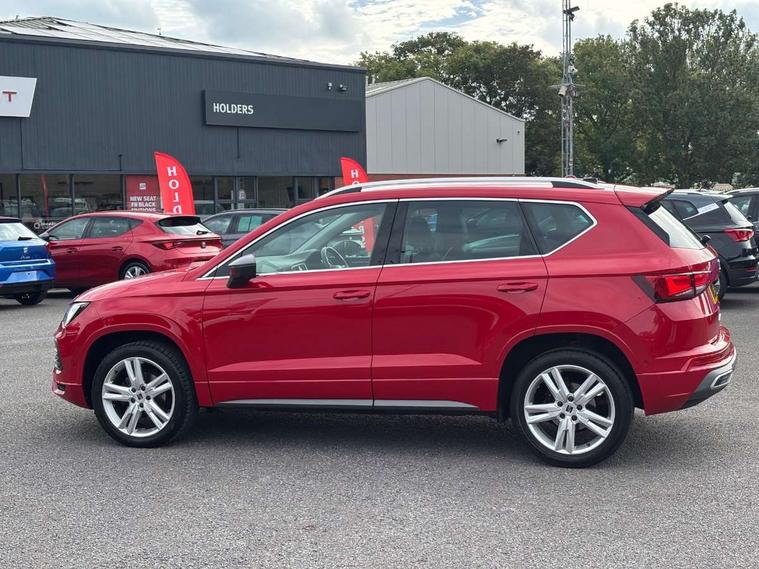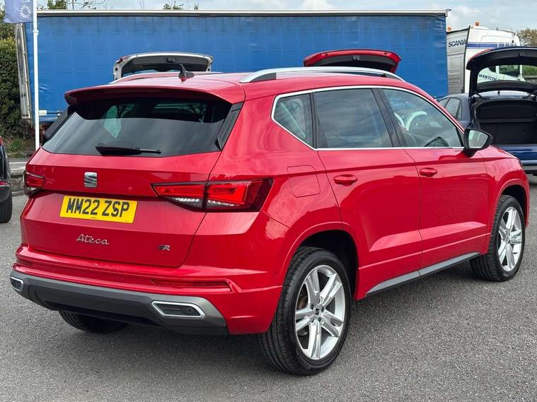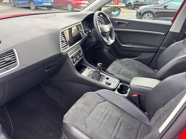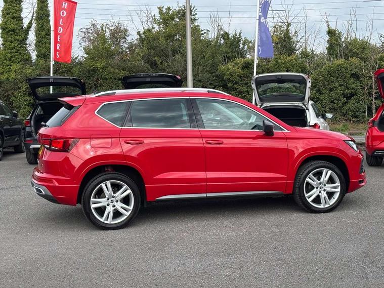 Colour multi-function on board computer display, Cruise control system with speed limiter, E-call, Outside temperature gauge, Progressive power assisted steering, SEAT drive profile with driving experience button - Normal, Sport, Eco and Individual mode, steering and throttle response, Self parking functionality (includes front and rear parking sensors), Trip computer, Wireless full link smartphone integration, Wireless phone charger, Steering wheel mounted audio/phone controls, Body colour bumpers, Body coloured wheel arch surrounds, Chrome front grille frame, Chrome roof rails, Chrome side window trim, Dark tinted rear windows, Daytime running lights, Door mirrors with welcome light silhouette, Dynamic headlight range control with self adjusting whilst driving, Electric adjustable/heated/folding door mirrors, Front and rear electric windows, Full LED headlamps with lens and LED front fog lamps with cornering function, Illuminated aluminium front door sill, LED rear tail lights with dynamic indicators, Rear fog lights, Rear side wing doors, Rear spoiler, Rear wash/wipe, Simulated exhaust pipes in chrome frame, 12v socket in front, 3 seat bench in 2nd row, 60/40 split folding rear seat, Aluminium pedals, Dual zone climate control, Front and rear head restraints, Front centre armrest, Front seat back storage pockets, Height adjustable driver and passenger seat with lumbar adjustment, ISOFIX points in outer rear seats with top tether anchorage points, Leather steering wheel and gear knob, Microsuede upholstery with front comfort seats, Rear armrest and easy back seat release mechanism from boot, Single front passenger seat, Storage compartment under driver's seat, Convenience pack - Ateca, Interior lighting pack - Ateca, Navigation system pack with DAB - Ateca, 3x3 point rear seatbelts, ABS, Traction control system (TCS), Electronic stability control (ESC) and Electronic differential lock system (XDS), Airbags - Driver and front passenger airbag with deactivation, front side, two curtain and driver's knee airbags, Electric parking brake with auto hold function, Front and rear seatbelt reminder, Front assist with autonomous emergency braking, Hill hold control, Manual rear child locks, Tiredness recognition system, Traction control, Tyre pressure monitoring system, Alarm, Keyless entry, Locking wheel bolts, Chrome interior detailing, 18" Brillaint silver alloy wheels,