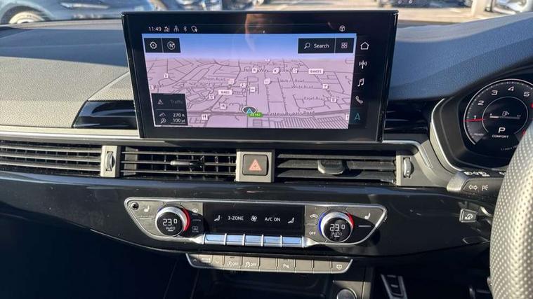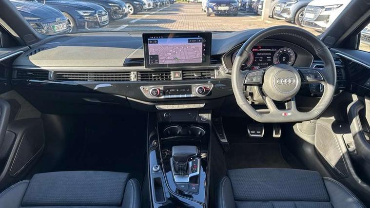 Audi connect safety and service (e-call), Audi connect with Amazon Alexa Integration, Audi drive select, Audi parking system plus with front and rear sensors, Audi smartphone interface, Audi virtual cockpit, Automatic start-stop system with coasting functionality and efficiency programme, Bluetooth interface, Electromechanical power steering, Email, calendar and text messages displayed via MMI, MMI Navigation plus with MMI touch includes 10.1" high resolution colour MMI display, 3D map, Power operated tailgate, Rear view camera, Voice control system, 54 litre fuel tank, Sports suspension lowered by 23mm, 2 USB charging ports, 8 passive loudspeakers, DAB digital radio reception, Auto dimming rear view mirror, Black Audi rings and black badging (model name in black badging, no engine badging), Black audi rings decal above rear sills, Body colour door handles, Body colour front spoiler lip, Body colour side sill trim, Electrically folding auto dimming/adjustable/heated door mirrors with LED side indicators and kerb view function for passenger side, Front and rear bumpers with side skirts, Front wing badges, Grained matt black side air inlets with matt aluminium silver inlay, High beam assistant, High gloss black B pillar trims and triangular rear door trim, LED headlights with LED rear lights + dynamic rear indicators + headlight adjustment and high beam, turning light + LED daytime running lights, LED third brake light, Matt aluminium silver tailpipe trim, Privacy glass, Rain and light sensors, Rear diffuser in matt titanium black with trim strip in matt aluminium silver, Rear side wing doors, RS4 rear spoiler in body colour, S Line roof edge spoiler, Variable intermittent front wash/wipe, Windscreen with acoustic glazing, 4 way electric lumbar support for driver and front passenger, 40/20/40 split folding 3 rear seat bench in 3 parts with rear centre armrest, Black cloth headlining, Black perforated leather gearknob, Contrast stitching on seats, steering wheel and gear lever gaiter, Deluxe 3 zone electronic climate control, Door sill trims with aluminium inlay, Electric load area cover, Front and rear head restraints, Front centre armrest, Heated front seats, Illuminated door sill trims with S logo, ISOFIX child seat mounting and top tether, Manual seat adjustment, Single front passenger seat, Stainless steel pedals and foot rest, Black styling pack - A4 Avant, LED Interior light pack - A4/S4, 3 rear seatbelts, 6 airbags - Driver, front passenger, curtain and side windows, Electronic Stabilisation Control (ESC) including ABS, ASR and EDL, Hill hold assist, Multi collision brake assist, Pop-up bonnet for pedestrian protection, Pre sense city, Seatbelt monitoring, Warning triangle and first aid kit, Anti theft alarm, Anti theft wheel bolts, Central locking, Keyless Go, Piano black finish inlay, Tool kit, Tyre repair kit,