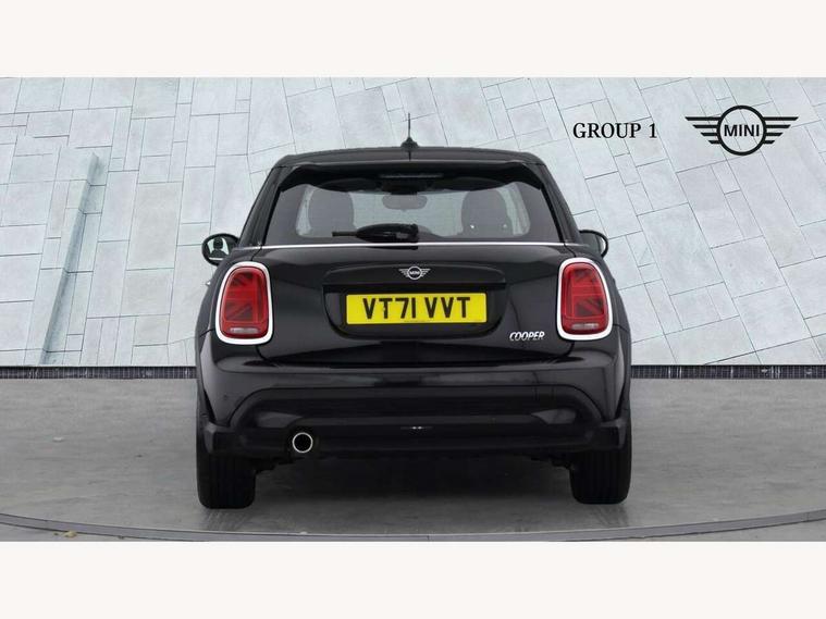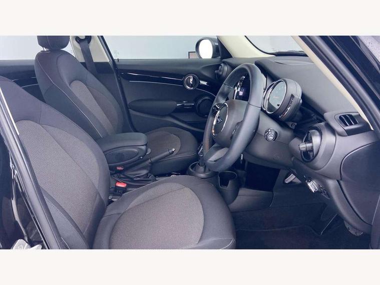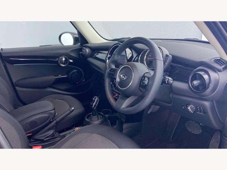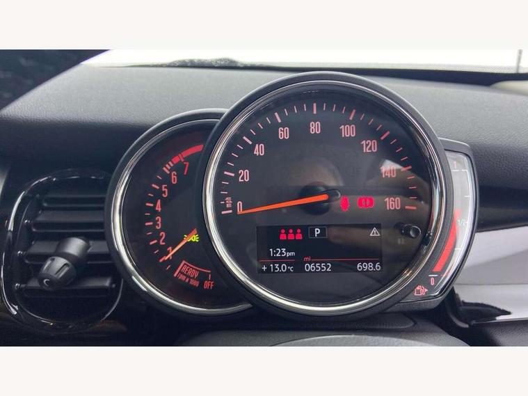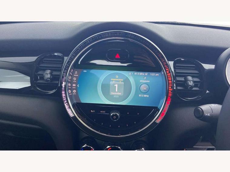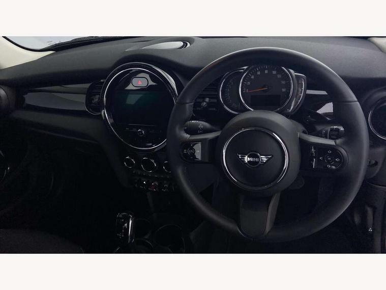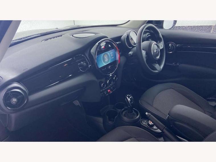 Automatic start/stop function with brake energy recuperation, Compatible mobile phone bluetooth with audio streaming, Cruise control with brake assist, Electro-mechanical speed dependant steering assistance, Flexible car sharing preparation, Instrument cluster, Mini E-call, MINI TeleServices, On board computer, Service interval indicator, Double Vanos system, Fully variable valve control, Gear change indicator display, High precision injection, Performance Control, Steptronic transmission with double clutch, 6 speakers in front door trims and underneath front seats, 8.8" touchscreen with LED ring, FM tuner and DAB digital radio, Automatic headlight activation switch, Body colour fuel filler cap, Chrome border high gloss black slats radiator grille, Dynamic brake lights, Electric front+rear windows, Exhaust tailpipe on left with chrome finisher, Heated rear window, Heated windscreen washer jets, LED headlight with closed ring and daytime driving lights, Metal door sill strips with MINI imprint, Model logo Cooper on right of tailgate, Rain sensor window wipers, Rear fog lights, Rear LED lights with union jack design, Rear window wiper, Side scuttle panel with integrated indicator, Sun/heat protection glass, White indicator lenses, 12V Accessory socket in centre console, 4 lashing eyes in luggage compartment, 60/40 split folding rear seat, Ambient lighting, Carbon black colour line - Knee roll and door armrest, Chrome interior highlights, Cupholders, Front and rear head restraints, Front and rear isofix with front passenger airbag deactivation, Glove compartment, Height and length steering column adjustment, Interior lighting with 12 different colours across the dashboard, underneath door bezel with illuminated laser-engraved design on central display, Leatherette gearshift lever and handbrake gaiters, LED reading lights, vanity mirror lights, front foot well light and spotlight on front seats, Manual air conditioning, Mechanical seat adjustment - forward/back & backrest for front seats and driver seat height adjust, Multifunction steering wheel, Satellite grey headlining including grab handles and clothes hooks, Sport leather steering wheel with speed limiter and audio/communication controls, Storage compartments in doors, Sunvisors with vanity mirrors, Velour floor mats, 3 point seatbelts on all five seats, 6 Airbags - front, side, head and seat belt tensioners, Anti-lock braking system (ABS), DSC - Dynamic Stability Control, Front and rear disc brakes, Hill start assist, Single tone fanfare horn, Tyre pressure monitoring system, Alarm system with tilt sensor, monitoring doors, bonnet interior and tailgate, Electronic vehicle immobiliser, Start/stop toggle with keyless go, Piano black interior trim, Tool kit, Tyre repair kit,