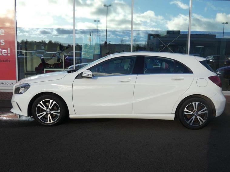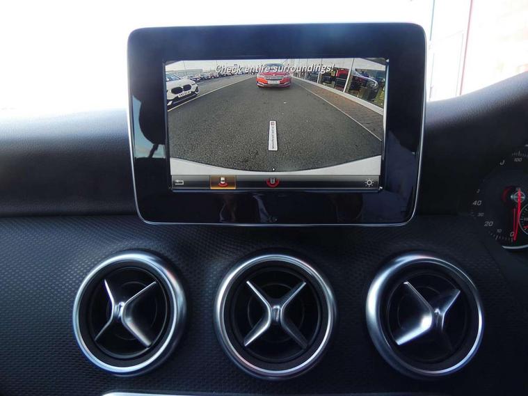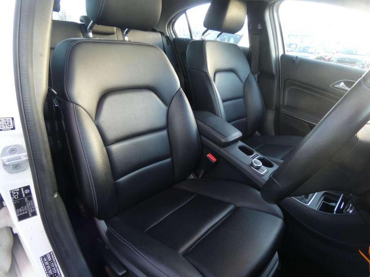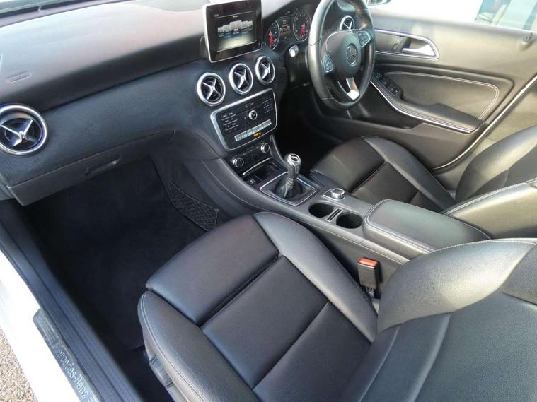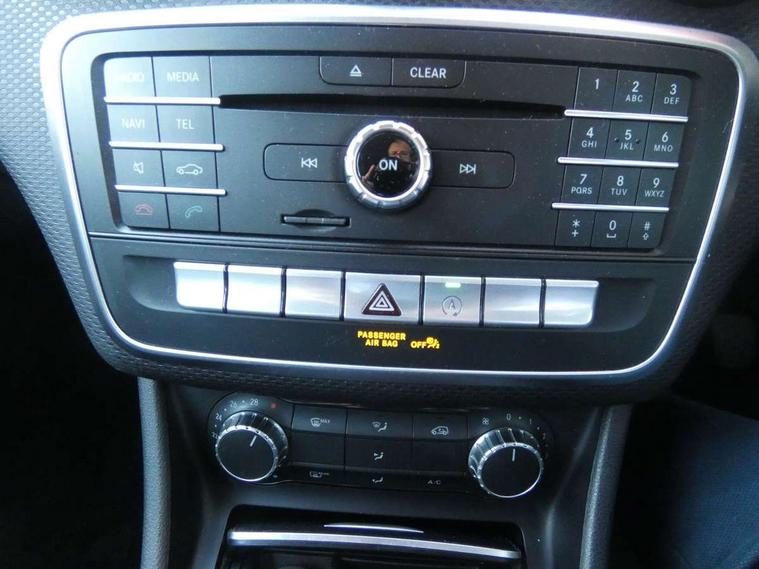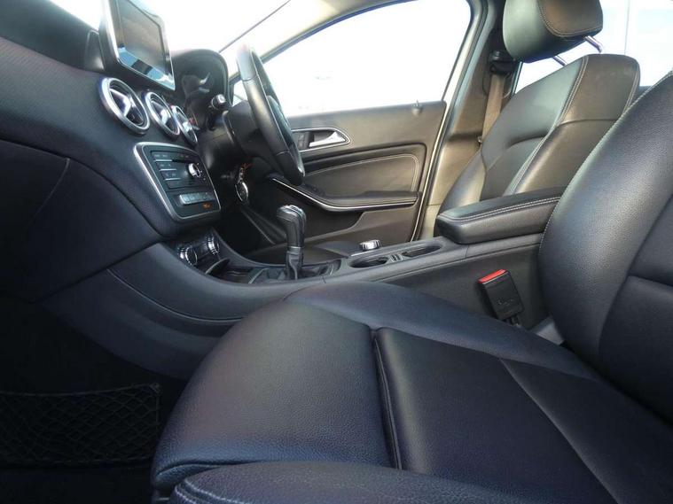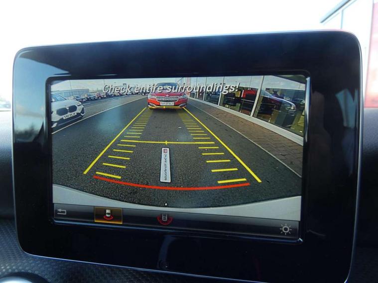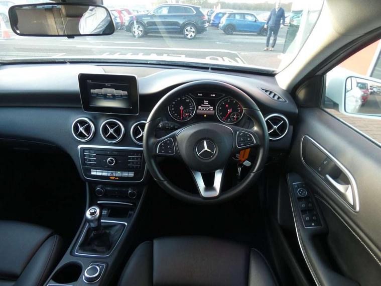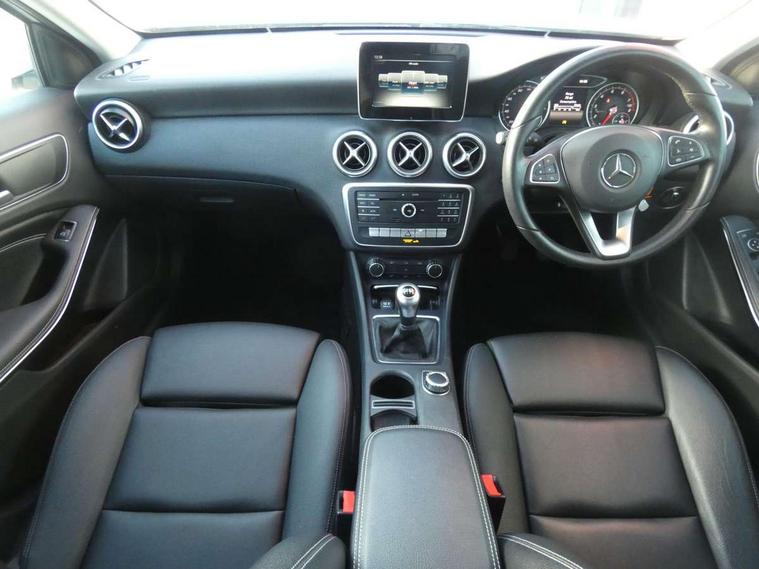 7" tablet style colour display, Attention assist, Bluetooth interface for hands free telephone, Bulb failure indicator, Collision prevention assist plus, External temperature gauge, Low fluid warning light, Reversing camera, Service indicator (ASSYST PLUS), Speed sensitive parameter assisted steering, Trip computer, Comfort suspension, 6 speakers, Media interface, Mercedes Audio 20 radio/single CD + telephone keypad, SD card slot, USB port, Adaptive brake lights, Body colour bumpers, Body colour door handles, Body colour side skirt, Body coloured door mirrors, Chrome beltline trim, Daytime running lights, Electric adjustable heated door mirrors, Electric front windows, Electric rear windows, Headlamp assist, Heated rear window with timer, Radiator grille with 2 louvres in body colour, Rear wiper, 1/3 to 2/3 split folding rear seats, 12V socket, 3 spoke leather multifunction sports steering wheel, Adjustable head restraints, Air conditioning, Artico man-made leather upholstery, Auto Mercedes-Benz child seat recognition sensor, Front centre armrest with storage compartment, Front door sills with Mercedes Benz lettering, Front head restraints, Grey headlining, Height adjustable front seats, Height/reach adjustable steering column, Illuminated glovebox, Isofix rear child seat preparation, Leather gearshift, Load securing rings in luggage compartment, Luggage compartment cover, Luggage net under rear parcel shelf, Rear head restraints, Storage compartment under load area floor, Twin front cupholders, Seat comfort pack - A Class, Stowage Pack - A Class, 3 rear 3 point seatbelts, ABS with Brake Assist, Active bonnet, Adaptive brake system, Child proof door locks, Crash responsive emergency lighting, Drivers knee airbag, Dual stage driver/passenger airbags, Electronic parking brake, ESP with ASR, Front and rear seatbelt reminder, Front head airbags, Front passenger seat occupancy sensor, Front side airbags, Hill start assist, Tyre pressure monitoring system, Warning triangle and first aid kit, Window airbags, Alarm system/interior protection/immobiliser, Keyless ignition, Remote central locking, Chrome air vent surrounds, Honeycomb effect trim, 16" 5 twin spoke alloy wheels, Tirefit sealant with electric air pump,