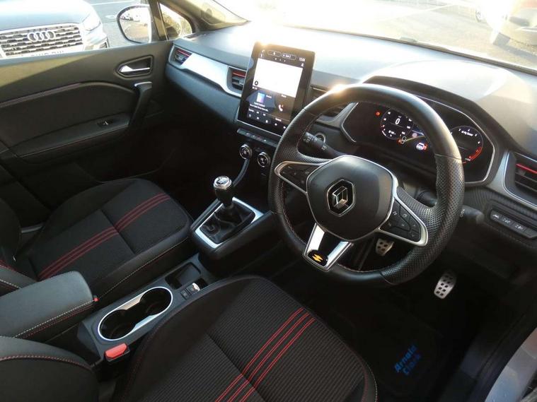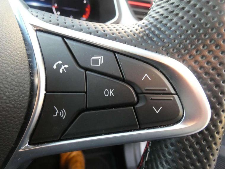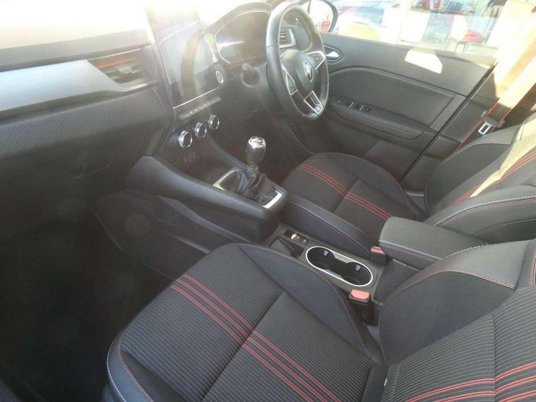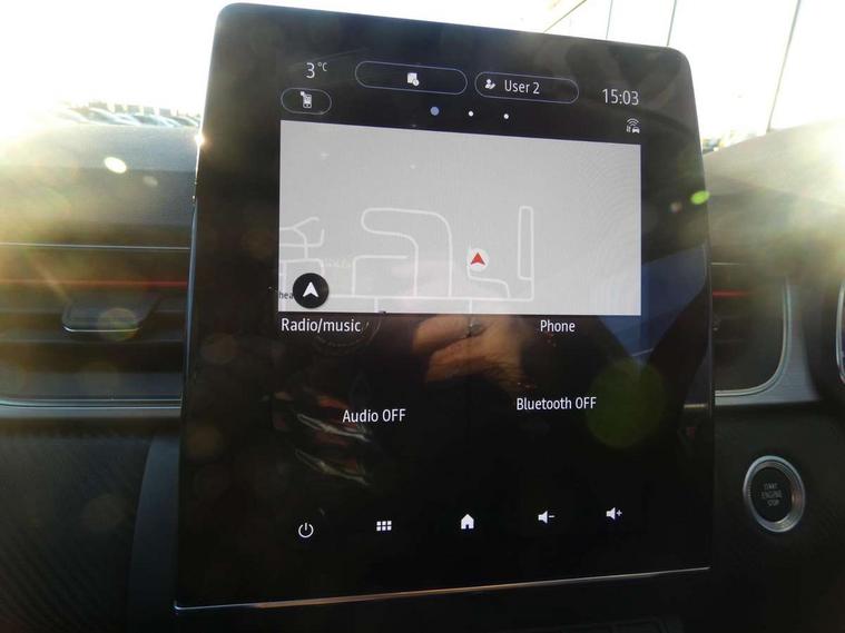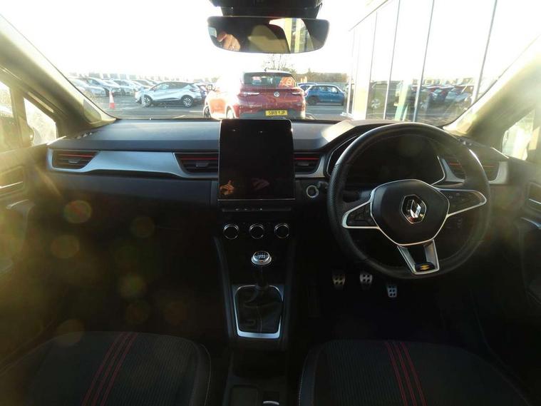 10" TFT Driver information display, Cruise control + speed limiter, EasyLink 9.3" portrait touchscreen with navigation, google search and traffic information, Eco mode, Front and rear parking sensors with rear view camera, Gear change indicator, Lane departure warning system, Lane keep assist, Multisense with 3 driving modes + 8 ambient lighting colours, Renault automatic emergency assist, Smartphone integration compatible with Apple CarPlay and Android Auto, Traffic sign recognition with over speed prevention, Trip computer, Variable assistance power steering, Wireless phone charger, DAB Radio with Bluetooth and USB, Aluminium Renault sport door sills, Auto dimming rear view mirror, Automatic front wipers with rain sensors, Automatic headlights, Automatic high/low beam, Black side door protection with chrome effect, Body colour door handles, Body coloured bumpers, Body coloured door mirrors, C Shaped LED front and rear lighting signatures with 3D effect on the rear lights, Day time running light, Double chromed exhaust tailpipes element, Drivers one touch window with anti-pinch feature, Extra tinted glass in rear windows and tailgate, Frameless rear view mirror, Front and rear electric windows, Front bumper with F1 blade and honeycomb front grille, Front grille with chrome upper trim, Full LED headlights, Grey front and rear skid plate, LED front fog lights, LED high level brake lights, LED rear fog light, Longitudinal roof bars, Rear side wing doors, Rear wiper, RS Line badges on front wing and hatch door, Shark fin antenna, 12V Accessory socket, 3 rear headrests, 60/40 split and fixed base rear seat bench, Aluminium pedals, Automatic climate control with one touch demist function and air quality regulator, Centre console storage tray, Dark roof lining, Front head restraints, Glovebox, Heating system with pollen filter, Height adjustable driver's seat, Height adjustable passenger seat, Height/reach adjust steering wheel, ISOFIX child seat fixing points on rear outermost seats, LED front roof lights, Middle console with armrest and storage, Modular boot floor, Perforated leather steering wheel with red stitching and RS Line badge, Rear air vents, Red insert on air vent, RS Line sport synthetic leather/cloth upholstery, Single front passenger seat, Sliding rear bench, 3 rear seatbelts, ABS+EBA, AEBS, Distance warning alert, Driver and front passenger, side, head and curtain airbags, Driver height adjustable seat belt, Electric parking brake with auto hold function, Electronic stability control, Front and rear no seatbelt warning sound, Front dash warning indicator in case of heavy braking, Front driver and passenger side airbag deactivation, Hill start assist, Rear door and window child locking function for rear door, Tyre pressure warning light, Anti drill door locks and locking fuel cap, Central door locking, Deadlocking system, Hands free keycard with push button and start/stop function, RAID (Renault Anti-Intruder Device) automatic door locking, Carbon style soft touch dashboard, 18" Le castellete diamond cut alloy wheels,