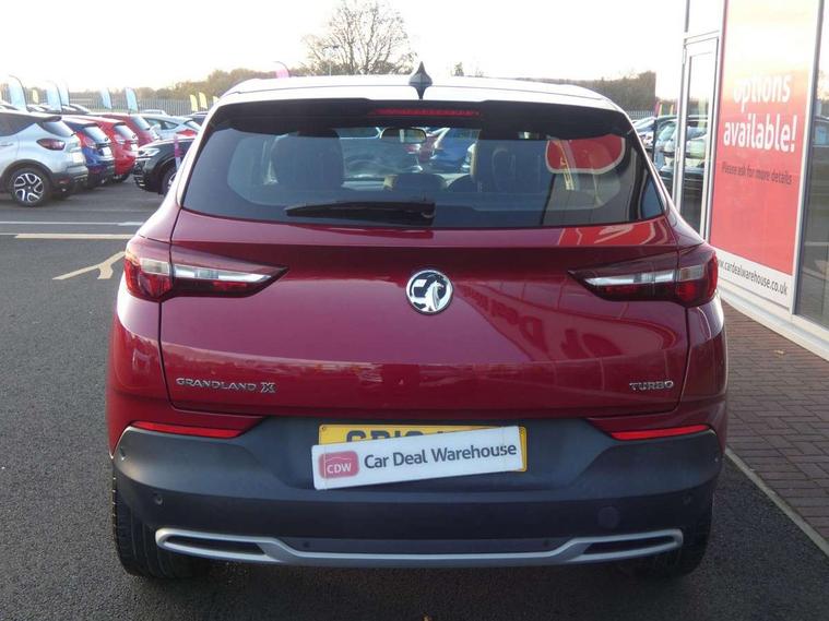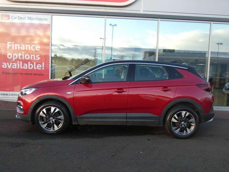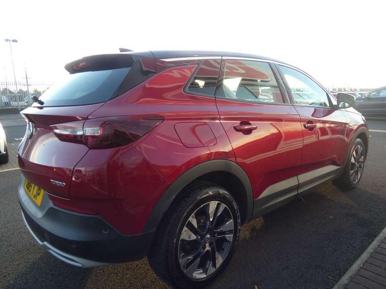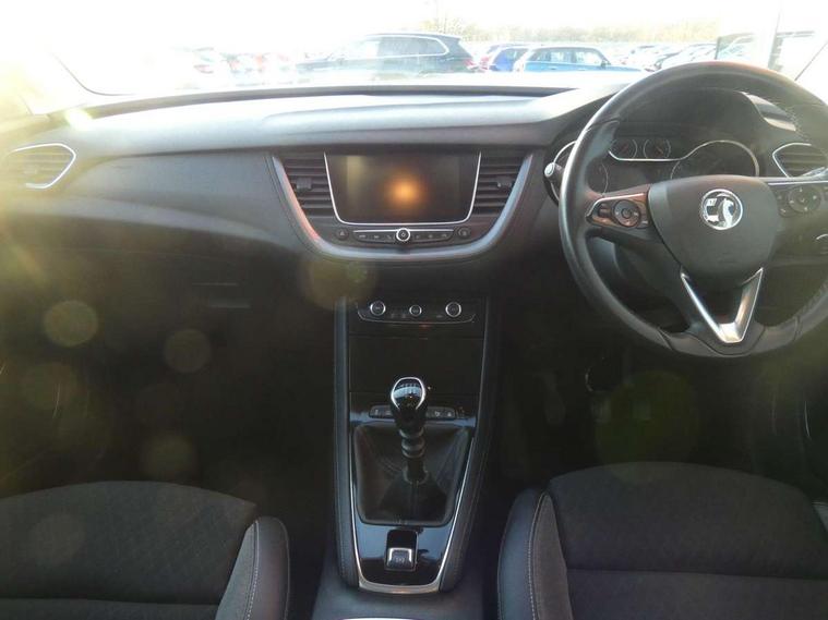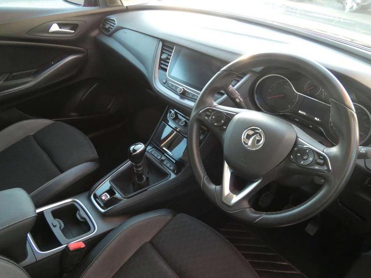 3.5" colour information display, Cruise control with speed limiter and intelligent speed adaption, Digital clock, Digital water temperature gauge with warning light, Fuel gauge with low fuel level warning light, Gearshift up/down indication light, Multi function trip computer, Nav 5.0 sat nav system + 8" colour touchscreen+DAB radio+RDS traffic programme+European mapping+USB+bluetooth+bluetooth audio streaming+Apple CarPlay, Outside temperature display, Rev counter, Service interval indicator, Speed sensitive electric power assisted steering, Speed sign recognition, Speedometer, Steering wheel mounted audio controls, Alloy effect front and rear skid plates, Black roof and door mirrors, Body colour door handles, Body colour door mirrors, Chrome effect bar on front grille, Chrome side window trim, Collapsible windscreen wipers, Door to door illumination, Electrically adjustable and heated door mirrors, Electrically operated front and rear windows with safety auto reverse and one touch up/down facility with heated rear window, Front fog lights, Gloss black finish B pillar, Hazard warning lights, High level centre rear brake light, Intermittent rear window wash/wipe, LED daytime running lights, LED tail lights, Rear fog lights, Rear spoiler, Reversing lights, Side protection mouldings, Side window demist vents, Sound absorbing windscreen, Tinted windows, Two speed windscreen wipers with variable intermittent wipe, Welcome lighting, Windscreen demist vents, 12V electrical accessory socket in front, 12V electrical accessory socket in luggage compartment, 220V power outlet behind front seats, Alloy effect door sill covers, Ambient centre console downlighter, Ambient interior lighting, Ambient lighting in front doors, Anti submarining front seats, Centre rear head restraint, Chrome effect interior door handles, Covered storage compartment in centre console and in driver armrest, Driver's centre armrest, Driver/passenger sunvisors with illuminated vanity mirrors, Electronic dual zone climate control with air conditioning + advanced predictive logic control using sensor + Charcoal filter + illuminated controls, Front and rear passenger assist handles, Front door pockets with 2.6 litre capacity, Front seat back storage pockets, Fully carpeted luggage area, Harlekin cloth upholstery, Heated rear windscreen with timed cut-off, Height adjustable and removable front/rear head restraints, Interior courtesy light operated by all doors, Isofix attachment on front seat, Isofix system on outer rear seats, Luggage compartment cover, Reach + rake adjustable steering column, Rear door pockets with 1.8 litre capacity, Rear reading lights, Two drinks holder in centre console, Ventilated glove box with lid, Safety pack - Grandland X, Sight and light pack - Grandland X, Versatility pack - Grandland X, 3x3 point rear seatbelts, Anti-lock braking system (ABS), Automatic emergency braking system, Child proof locks on rear doors, CSC - Cornering stability control, Deactivation switch for front passenger front and side impact airbags, Deflation detection sensors, Deformation zones front and rear, Driver/Front Passenger airbags, Dual seatbelt pretensioners on front seats, EBD - Electronic brakeforce distribution, Electronic parking brake, Energy absorbing steering column, Engine drag torque control, Front and rear outer seat belt pre-tensioners, Front and rear seatbelt reminder, Front seat side impact airbags, Full size curtain airbags for driver, front passenger and outer rear passenger seats, Hill start assist, Hydraulic Brake Assist (HBA), Inertia reel lap and diagonal seatbelts for all seats, Reinforced passenger safety cell, Seatbelt load limiter, Side impact protection beams, Switchable electronic stability programme, Traction control, Tyre pressure monitoring system, Engine deadlock and immobiliser, Locking wheel nuts, Remote control central locking, Remote security alarm system, Visible vehicle identification number,
