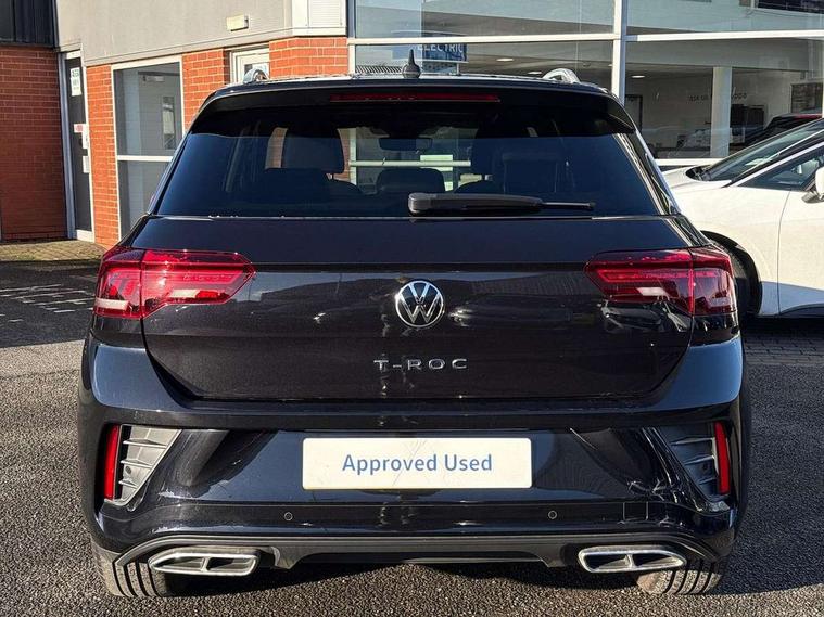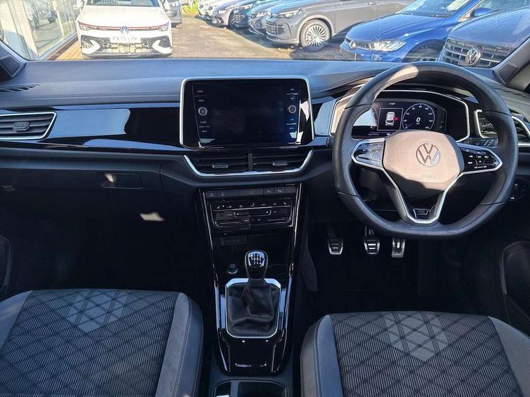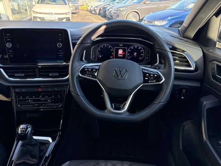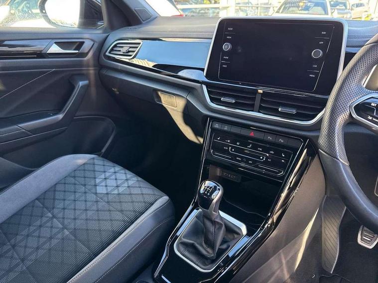 10.25" Digital cockpit pro, Bluetooth mobile phone interface, Driver alert system with fatigue detection, Driver tips and journey analysis, Emergency call service, Lane keeping system Lane Assist, Modified key software - reduce switch off time for key status change to Long no motion, Online services, Park assist including front and rear parking sensors, Service interval indicator, Tailgate/trunk lid release from outside, Think blue trainer driver tips and journey analysis, Warning sound and light for front seatbelts unfastened, Wireless app connect, Battery regeneration during braking, Start/stop function with battery regeneration, Diversity antenna for FM reception, Front and rear 6 speakers, Music playback - MP3, WMA and AAC files, Premium USB cable in choice of either Apple or Android smartphone compatibility, SD card slot, Simultaneous pairing of 2 compatible mobile devices, Title and cover art display, We Connect and We Connect Plus functionality, 3rd brake light, Auto dimming interior rear view mirror, Automatic hazard lights activation under emergency braking, Automatic headlight control with LED separate daytime running lights with coming/leaving home function, Extended roof spoiler, Exterior mirrors aspherical on driver side, convex on front passenger side, External USB type C socket and charging sockets, Front windscreen wiper with intermittent wipe and 4 position delay, Heated rear window, LED Plus headlamps, LED rear combination lamps, LED rear number plate lights, LED tail lamp rear comination lamps, Power windows with comfort operation and circuit breaker, R-Line design body coloured bumpers, Rain sensor, Rear exhaust tailpipe, Rear fog light on one side and reversing lights on both sides, Rear side wing doors, Rear wash/wipe with intermittent wipe setting, Remote electrically foldable door mirrors, puddle lights and reverse activated passenger's door mirror, 12V power socket in centre console, 3 rear head restraints, 3 seat bench in 2nd row, 4 load lashing points in luggage compartment, Air care climatronic air conditoning system with active combination filter and 2-zone temperature control, Black roof lining, Chrome plated radiator grille inserts, air vent surrounds and light switch surrounds, Door and side trim panel with leatherette insert, Drawer under drivers seat, Front + rear carpet mats, Front centre armrest, Front cupholders x 2, Front footwell illumination, Front reading light, Front scuff plates with R logo, Instrument lighting, white adjustable panel illumination, Interior ambient lighting and surround lighting, Interior light delay, Isofix child seat preparation, Leather gearshift handle, Load-through provision with cup holder when folded down ('Unsplit rear seat bench, split folding backrest, with centre armrest), Luggage compartment lighting, Single front passenger seat, Stainless steel pedals, Storage compartment in left and right luggage area, Storage compartment in rear doors, Storage compartments in driver and front passenger doors, Sunvisors with illuminated vanity mirrors, Variable boot floor, height adjustable and removable, Driver assistance pack without proactive passenger protection - T-Roc, 3 point height adj front seatbelts + pretensioners, 3 point seatbelts in outer rear with ECE label, ABS, Child locks on rear doors, Driver and front passenger airbag with front passenger airbag deactivation, Driver and front passenger safety-optimised head restraints, Drivers seatbelt reminder, Electronic parking brake, Electronic Stability Control (ESC) inc EDL (Electronic Differential Lock) and ASR (Traction Control), Front and rear passengers curtain airbag system including front side airbags, Front assist with city emergency braking and pedestrian monitoring, Front seat side impact airbags, Hill start assist, Predictive pedestrian protection, Rear disc brakes, Single tone horn, Tyre pressure loss indicator, Volkswagen roadside assistance, Alarm with interior protection, Anti-theft alarm system with interior monitoring, backup horn, and towing protection, Remote central locking with SAFELOCK, radio remote control with 2 remote control folding keys, Trims for alloy wheels,