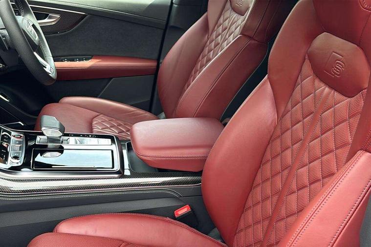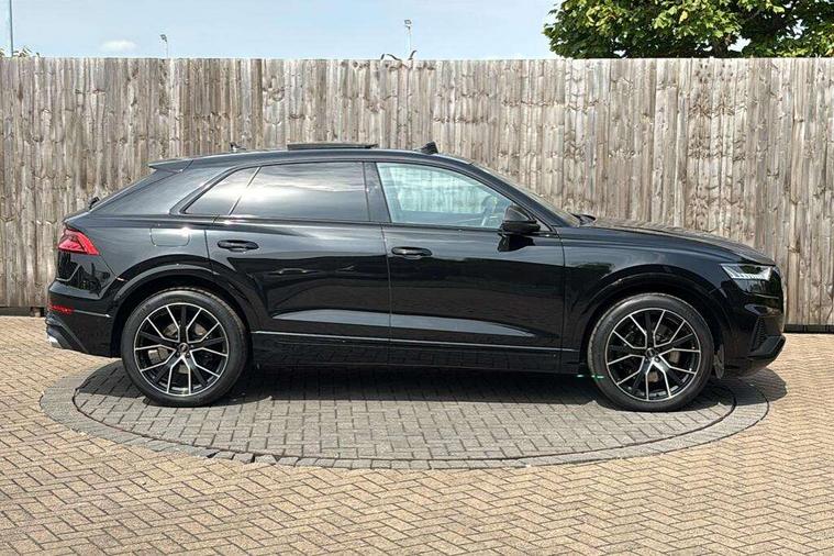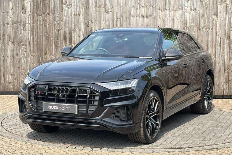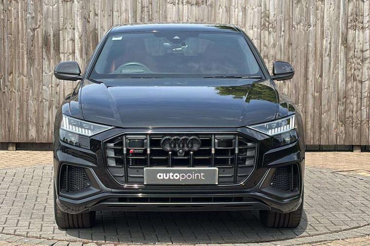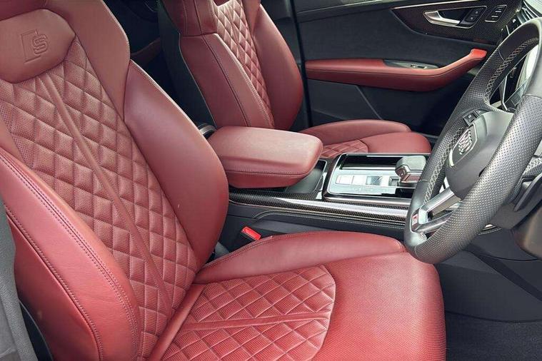 10.1" and 8.6" Dual colour touchscreens, 2 USB C ports with charging functionality in the rear, 360 camera, Adaptive cruise control, All wheel steering, Audi connect safety and service (e-call), Audi connect with Amazon Alexa Integration, Audi drive select, Audi phone box light with wireless charging, Audi side assist, Audi smartphone interface includes wireless Apple carplay/Android Auto, Audi virtual cockpit plus, Automatic start/stop system, Camera based traffic sign recognition, Collision avoidance assistant, Cross traffic assist front and rear, Electro-mechanical PAS, Head up Display, Lane departure warning with emergency assist, Low washer fluid indicator, MMI - Multi Media Interface control system, MMI navigation plus with MMI touch, Natural voice recognition, On board computer, Operating buttons in black, glass look with haptic feedback, Power door closure, Power operated tailgate, Predictive efficiency assistant, Remote park assist plus, Service interval indicator, Turn Assist, 48V Mild hybrid technology, 85 litre fuel tank, Electromechanical active roll stabilisation, Quattro sports differential, S specific Adaptive air suspension, Audi music interface with 2 USB ports with charge and data functions, Aux-in socket, Bang + Olufsen sound system, DAB Digital radio, 3rd brake light, Acoustic windscreen, Adaptive windscreen wipers with integrated washer jets, Audi beam, Audi HD Matrix LED headlights with dynamic front and rear indicators, Auto dimming frameless rear view mirror, Coming/leaving home lighting function, Electric front+rear windows, Electric panoramic glass sunroof, Electrically folding auto dimming/adjustable/heated door mirrors with memory function, LED side indicators and kerb view function for passenger side, Gloss black finish for exterior Audi rings and SQ8 logo, Headlight washers, Heat insulating glass in windshield, High gloss black in side window trims, LED signature daytime running lights, Platinum grey front spoiler lip and diffuser insert with honeycomb grille in black, Privacy glass - dark tinted rear and rear side windows from B-pillar backwards, Rain and light sensors, Rear side wing doors, Rear wiper, S specific dual brach chrome tailpipes on both the left and right, S specific front and rear bumpers, S specific side skirts in matt selenite silver, Side air inlet grilles in matt anthracite black, Styling accents on front bumper in anthracite black, Trim and underbody protection in matt selenite silver, 3 bench rear seats in 2nd row, 3 spoke heated leather multi-function sport steering including paddle shift, 4 zone deluxe automatic climate control, 4-way lumbar support for front seats, 40:20:40 split folding rear bench seat, Audi phone box light, Black dinamica headlining, Comfort front centre armrest, Double sun visor with illuminated vanity mirror on driver and passenger side extendable, Driver and front passenger seat memory function for electrically adjustable front seats, Electric luggage compartment cover, Electric sunblind for the rear side windows and manual sunblind for the rear window, Front head restraints, Front/rear floor mats, Heated front and outer rear seats, ISOFIX child seat mounting for front passenger seat and 2 outer rear seats with top tether child seat mounting for all 3 rear seats, Luggage compartment sill protection in stainless steel, Massage and ventilation function for front seats, Power adjustable steering wheel, Rear centre armrest with 2 cupholders, Rear headrests, Seat cushion displaceable by 100mm in the ratio 60:40, Single front passenger seat, Stainless steel pedals, Tool kit, Valcona leather upholstery + front super sport seats with S embossed logo, Ambient lighting package plus - Q8, Extended leather pack - Q8, 3 point seatbelts on all seats, Audi pre sense basic, Audi pre sense front, Audi pre sense rear, Child locks on rear doors, Driver and front passenger, front side and curtain airbags, Electromechanical parking brake, Electronic Stability Control (ESC) including ABS, ASR and EDL, Exit warning, Front passenger airbag deactivation, Hill descent control, Hill hold assist, Predictive pedestrian protection, Seatbelt monitoring, Traction control, Tyre pressure loss indicator, Warning triangle and first aid kit, Advanced key, Anti theft alarm with tow away protection, Anti-theft wheel bolts and wheel loosening detection, Immobiliser, 22" x 10J 5 V spoke star design alloy wheels in gloss anthracite black, Tyre repair kit,