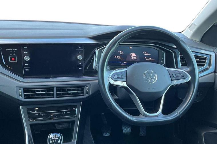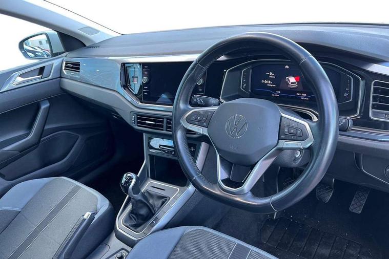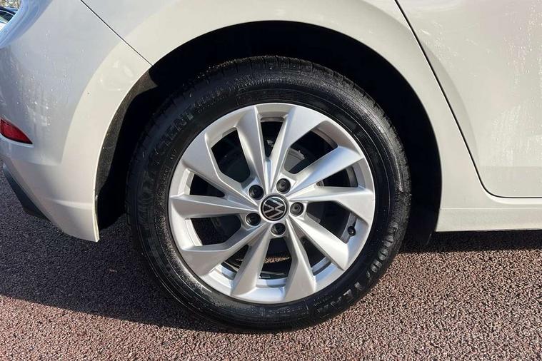 Adaptive cruise control without follow-to-stop and speed limiter, Bluetooth mobile phone interface, Digital Cockpit Pro with 10.25" Display, Driver alert system, Dynamic road sign display, Emergency call service, Power assisted speed sensitive steering, Preparation for We connect and We connect plus, Speedo and rev counter, electronic odometer, trip, service interval display and fuel gauge, Standard rear axle, Travel Assist - Lane keeping system and traffic jam assist, Travel assist including emergency assist, Trip computer, Warning signal and warning light for front and rear seatbelts not fastened, Washer fluid level indicator, Wireless app connect, Front wheel drive, Rear shock absorpion, Start-stop system with battery regeneration (recuperation - energy recovery during braking), DAB Digital radio, Diversity antenna for FM reception, Front and rear 6 speakers, Automatic dimming interior rear view mirror, Automatic headlights, Body colour door handles, Body coloured bumpers and radiator grille with chrome trims, Electric front windows, Heat insulating darkened glass in side and rear windows, Heat insulating glass windscreen, LED separate daytime running lights with coming/leaving home function, Power folding adjustable/heated exterior mirrors and front passenger exterior mirror lowering function, Rain sensor, Rear electric windows, Rear fog light, Rear side wing doors, Rear windscreen washer and wiper with interval delay, Third brake light, 12V power socket in centre console, 2 USB-C ports in the front, 2 USB-C charging sockets on the center console in the rear, 3 rear head restraints, 60/40 split folding rear seat and rear seat bench not split, Air care climatronic air conditoning system with active combination filter and 2-zone temperature control, Ambient lighting, Chrome plated radiator grille inserts, air vent surrounds and light switch surrounds, Door and side trim panel, Driver and front passenger seat height adjustment, Driver/passenger sunvisors with illuminated vanity mirrors, Front + rear carpet mats in recycled material, Front centre armrest, Front footwell illumination, Front seat backrest storage pockets, Front sports comfort seats, Handbrake lever handle in leather, Headliner in recycled material, Isofix child seat preparation easy-fit (for two outer rear seats, and front passenger seat) compatible with I-size, Leather trimmed gear knob, LED interior light with switch off delay and dimmer, 2 reading lights front and rear, Luggage compartment cover, Luggage compartment floor, Luggage compartment lighting, Lumbar adjustment for front seats, Multifunction steering wheel, Single front passenger seat, Standard pedal cluster, IQ LED matrix headlights pack - Polo, Light and vision pack - Polo, 3 point height adj front seatbelts + pretensioners, 3x3 point rear seatbelts, ABS, Driver and front passenger airbag with front passenger airbag deactivation, Drivers and front passengers safety optimised head restraints, ESC (Electronic stability control) + EDL (Electronic Differntial lock) and ASR (Traction control), Extended and predictive pedestrian/ cyclist protection, Front curtain and side airbags with center airbag, Front disc brakes, Hill hold control, Manual child lock in rear doors, Rear drum brakes, Single tone horn, Tyre pressure loss indicator, Alarm with interior protection, Anti-theft alarm system with interior monitoring, backup horn, and towing protection, Anti-theft wheel bolts, Electronic engine immobiliser, Chrome applications on rotary light, mirror adjustment, window regulator switches, outlet with frame in black, Low rolling resistance tyres,