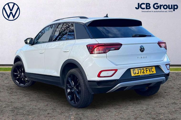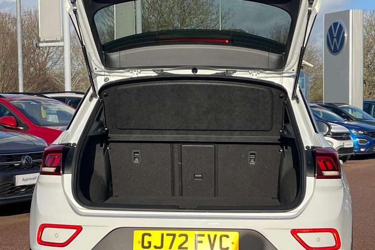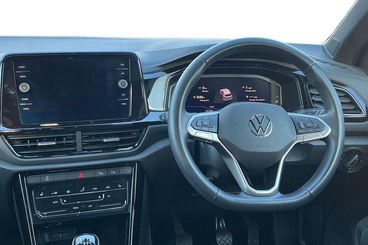 10.25" Digital cockpit pro, Bluetooth mobile phone interface, Driver alert system with fatigue detection, Driver tips and journey analysis, Dynamic road sign display, Emergency call service, Lane keeping system Lane Assist, Modified key software - reduce switch off time for key status change to Long no motion, Online services, Park assist including front and rear parking sensors, Power assisted speed sensitive steering, Service interval indicator, Tailgate/trunk lid release from outside, Think blue trainer driver tips and journey analysis, Warning sound and light for front seatbelts unfastened, Wireless app connect, Battery regeneration during braking, Front shock absorption, Rear shock absorption chassis with increased ride height, Start/stop function with battery regeneration, Diversity antenna for FM reception, Front and rear 6 speakers, Music playback - MP3, WMA and AAC files, Premium USB cable in choice of either Apple or Android smartphone compatibility, SD card slot, Simultaneous pairing of 2 compatible mobile devices, Title and cover art display, We Connect and We Connect Plus functionality, 3rd brake light, Auto dimming interior rear view mirror, Automatic hazard lights activation under emergency braking, Automatic headlight control with LED separate daytime running lights with coming/leaving home function, Body colour sports bumpers with silver metallic underbody fascia, Dynamic headlight range control with self adjusting whilst driving, Extended roof spoiler, Exterior mirrors aspherical on driver side, convex on front passenger side, External USB type C socket and charging sockets, Front windscreen wiper with intermittent wipe and 4 position delay, Heated rear window, LED Plus headlamps, LED rear combination lamps, LED rear number plate lights, LED tail lamp rear comination lamps, Light mode for poor weather, rain, fog or snow, Power windows with comfort operation and circuit breaker, Rain sensor, Rear exhaust tailpipe, Rear fog light on one side and reversing lights on both sides, Rear side wing doors, Rear wash/wipe with intermittent wipe setting, Remote electrically foldable door mirrors, puddle lights and reverse activated passenger's door mirror, 12V power socket in centre console, 3 rear head restraints, 3 seat bench in 2nd row, 4 load lashing points in luggage compartment, Air care climatronic air conditoning system with active combination filter and 2-zone temperature control, Chrome plated radiator grille inserts, air vent surrounds and light switch surrounds, Door and side trim panel with leatherette insert, Drawer under drivers seat, Front + rear carpet mats, Front centre armrest, Front comfort sports seats, Front cupholders x 2, Front footwell illumination, Instrument lighting, white adjustable panel illumination, Interior ambient lighting and surround lighting, Interior light delay, Isofix child seat preparation, Leather gearshift handle, LED interior light with switch off delay/dimmer and 2 front/rear LED reading lights, Load-through provision with cup holder when folded down ('Unsplit rear seat bench, split folding backrest, with centre armrest), Luggage compartment lighting, Non-folding front passenger seat backrest, Single front passenger seat, Storage compartment in left and right luggage area, Storage compartment in rear doors, Storage compartments in driver and front passenger doors, Sunvisors with illuminated vanity mirrors, Variable boot floor, height adjustable and removable, Driver assistance pack without proactive passenger protection - T-Roc, 3 point height adj front seatbelts + pretensioners, 3 point seatbelts in outer rear with ECE label, ABS, Child locks on rear doors, Driver and front passenger airbag with front passenger airbag deactivation, Driver and front passenger safety-optimised head restraints, Drivers seatbelt reminder, Electronic parking brake, Electronic Stability Control (ESC) inc EDL (Electronic Differential Lock) and ASR (Traction Control), Front and rear passengers curtain airbag system including front side airbags, Front assist with city emergency braking and pedestrian monitoring, Front disc brakes, Front seat side impact airbags, Predictive pedestrian protection, Rear disc brakes, Single tone horn, Tyre pressure loss indicator, Volkswagen roadside assistance, Alarm with interior protection, Anti-theft alarm system with interior monitoring, backup horn, and towing protection, Remote central locking with SAFELOCK, radio remote control with 2 remote control folding keys, Trims for alloy wheels,