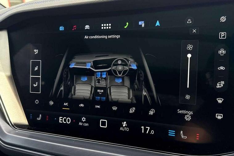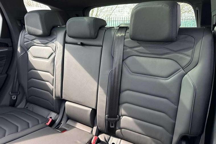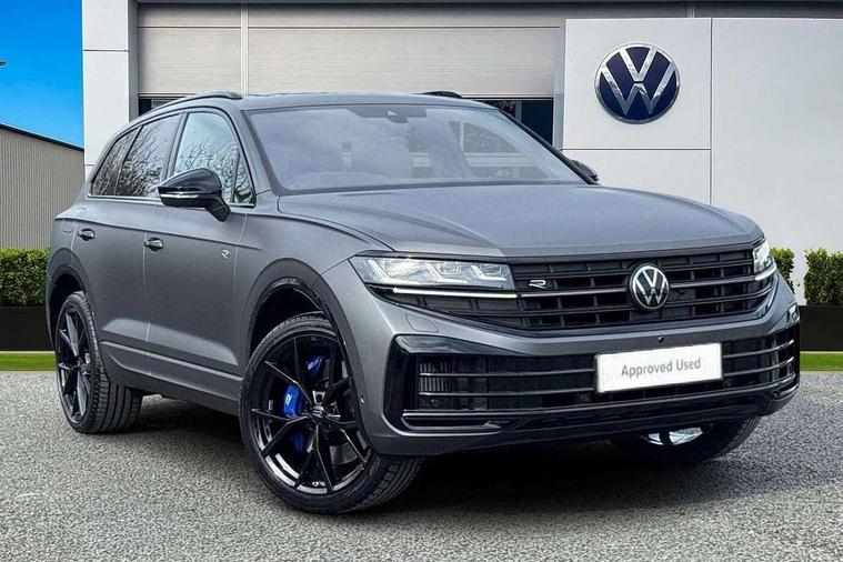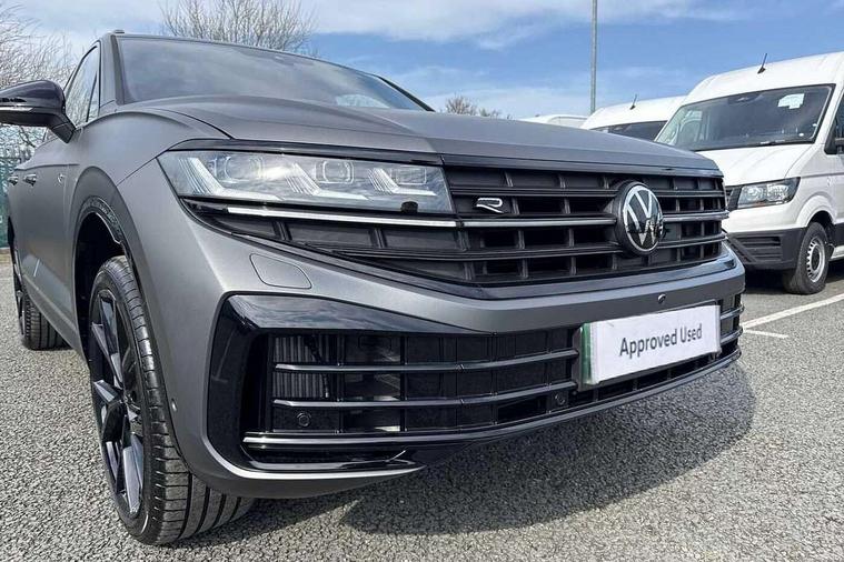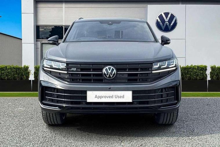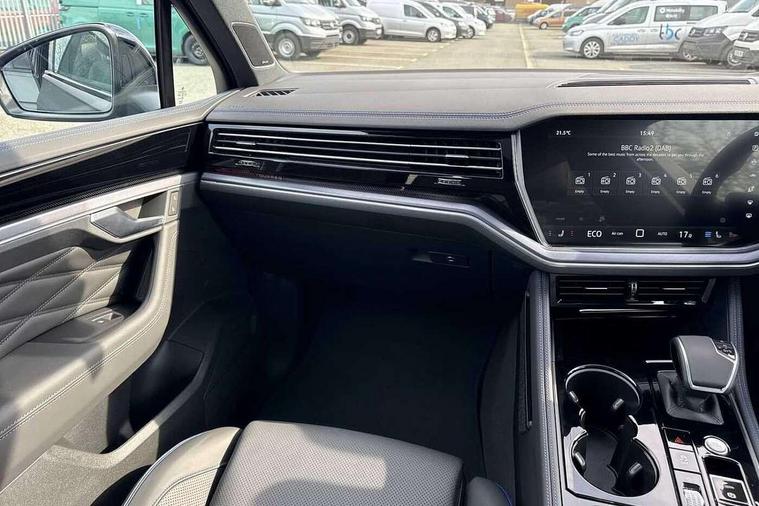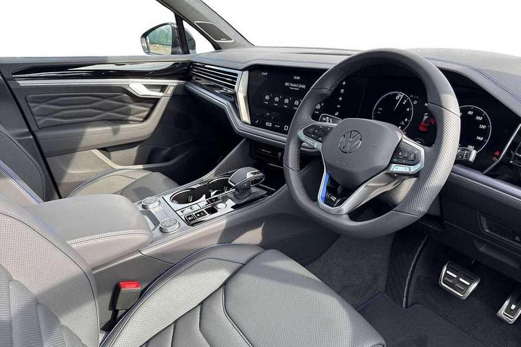 15" Screen Top infotainment system Premium (MIB3), Adaptive cruise control, Driver profile selection, Dynamic road sign display, E-Sim card for online connectivity, eCall emergency system, Innovision cockpit, Intelligent park assist, Mobile phone interface with inductive charging, Multi-colour Active Info display, Park Assist - Sensor controlled steering aid to assist parallel or bay parking, PAS, Warning signal and warning light for front and rear seatbelts not fastened, Wireless app connect, Adaptive chassis control, Air suspension, Charging cable - Mode 2 / 10-amp / 2.3 kW, Charging cable - Mode 3 / 32-amp / 7.2 kW, Standard electronic engine sound, DAB Digital radio, Diversity antenna for AM/ FM reception, We Connect and We Connect Plus functionality, Automatic coming/leaving home lighting function, Automatic headlights, Black door mirrors, Black style comfort bumpers, Dynamic headlight range control with dynamic cornering light, Electric front tilt/slide panoramic sunroof and fixed rear sunroof, Electrically power adjustable, heated, folding, auto dimming, front passenger exterior door mirror lowering function, External USB type C socket and charging sockets, Gloss black roof rails, HD LED Matrix beam plus digital headlight projection with variable light distribution, Headlight washers, Heat insulating glass in side and rear windows, Heated windscreen washer jets, Highway light, LED 3rd brake light, LED daytime running lights, LED rear combination lamp with variable lighting functions and special styling, Poor weather light, Rear exhaust tailpipe, Rear fog light with back up light on both sides, Rear light bar and illuminated logo, Rear side wing doors, Rear wiper, Stainless steel door sill protection, 12V socket in centre console, 3 rear headrests, 3 seat bench in 2nd row, 30 colours interior ambient lighting, 4 zone climate control, Additional Interior Lighting, Airbag label on sun visor and B-pillar, Black decorative trims, Brushed stainless steel pedals, Door and side trim panel with Leather quilting, Double sun visors with illuminated vanity mirrors, Front + rear carpet mats, Front centre armrest, Illuminated scuff plates in door apertures, Leather wrapped multifunction sports steering wheel, heated, with touch control and shift paddles, Mechanical rear seat release, Power adjustable lumbar support in front, Power seats in front, right side with memory features and seat cushion depth adjustment, Puglia leather upholstery with "R" ergoComfort, Rear seat backrest and split folding with center armrest, Single front passenger seat, Tool kit, Extra acoustics pack - Touareg, Memory pack plus - Touareg, 3 point seatbelts, outer rear with ECE lable, ABS, Advanced driver attention and drowsiness monitor, Child locks on rear doors, Curtain airbags, Disc brakes in front blue with R-Logo, Disc brakes in rear blue, Driver and front passenger safety-optimised head restraints, Driver/Front Passenger airbags, Extended pedestrian protection measures, Front assist, Front seat side impact airbags, Generative braking with start and stop system, Height adjustable 3 point front seatbelts with pre tensioners, Passenger airbag deactivate switch, Three 3 point rear seatbelts, Two tone horn, Tyre pressure loss indicator, Warning triangle and first aid kit, Alarm system with interior protection, Easy open and close sensor controlled luggage compartment opening and closing with remote unlocking, Keyless Access Keyless locking and starting system with SAFELOCK, Aluminium decorative inserts, Gloss black decorative inserts in centre console, 285/35 R22 106Y XL Low rolling resistance tyres, Tyre mobility kit including compressor and sealing foam,