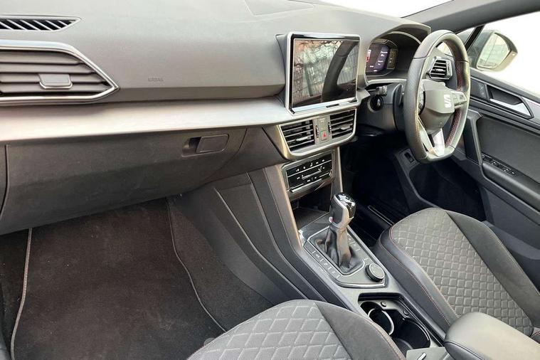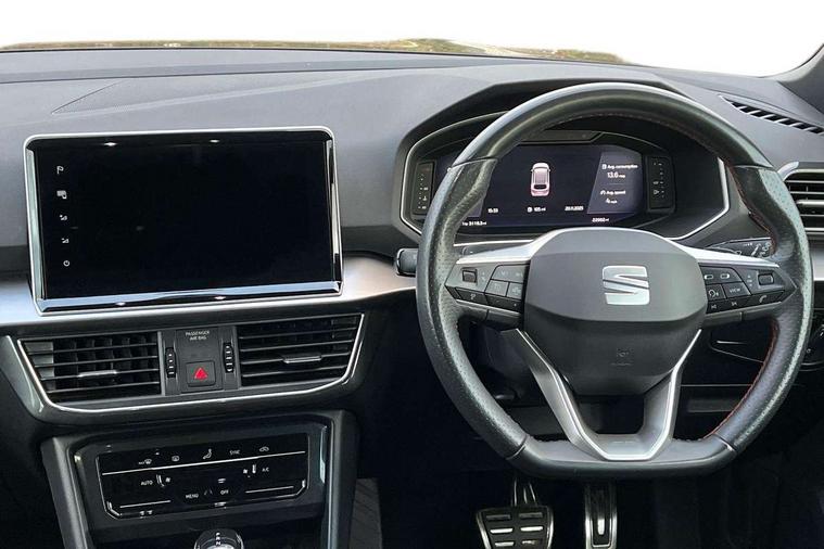 'Lights On' Reminder warning buzzer, 10.25" digital cockpit with multi function display, Adaptive cruise control with speed limiter, Bluetooth audio streaming with handsfree system, Digital clock, e-Call (emergency call), Front assist city emergency braking and pedestrian protection, Full Link Wireless Smartphone Integration with Mirror Link, Apple Car Play, Lane assist, Low fuel warning light, Outside temperature gauge, Power assist steering, RPM counter, Seat connect with safety, service, remote and online, SEAT Drive profile-4 different modes, progressive steering, 4Drive versions with off-road/snow, steering response, throttle response, gear shifts mode, Self parking functionality (includes front and rear parking sensors), Trip computer, Wash water level indicator, Comfort suspension, Sports rear shock absorption, XDS electronic differential lock, Navigation system with 9.2" colour touchscreen with proximity sensor, 3D Map display, DAB, AM/FM Radio, 3 USB (type C), Aux-in, 8 speakers, SD card, Steering wheel mounted audio/telephone controls, USB (type C) cable for Apple and Android compatibility, Auto dimming rear view mirror, Auto headlights with automatic coming and leaving home function, Automatic headlight adjustment, Black bumpers, Black door mirrors, Black roof rails, Black window trims, Body coloured side skirts, Coast to coast lighting, Dark tinted rear windows, Dynamic rear indicators, Electric adjustable/heated/folding door mirrors with memory, Electric front/rear windows, Exterior black mouldings, Front grille frame in black, Front halogen fog lights with cornering function, Fuel door linked to central locking, Full LED headlights with LED rear lights, Illuminated aluminium front door sill with trim logo, LED daytime running lights, LED licence plate lighting, Rain sensing wipers, Rear fog lights, Rear roof spoiler, Rear side wing doors, Rear wash/wipe, Sports bumpers, Twin exhaust pipes, Welcome lighting, 2 individual 3rd row seats, 3 seat bench in 2nd row, 3 zone climate control, Ambient spot lighting and front footwell illumination, Black interior roof, Centre armrest in front with air outlet in rear, Dinamica cloth upholstery, Driver and passenger sunvisor with covered and illuminated mirror, Driver's electric lumbar adjustment, Easy fold rear seat system - second and third row, Electric driver's seat with memory, Forward and backward adjustable seats 2nd row, Four cargo rings in the boot, Front bucket seats, Front cupholders, Front integrated headrests, Front passenger seat lumbar adjustment, Front seat back storage pockets, Gear shift indicator, Height adjustable passenger seat, Illuminated boot, Illuminated glovebox, Instrument lighting with brightness control, ISOFIX points in outer 2nd row seats and front passenger seat with top tether anchorage points, Leather gear knob, Leather wrapped multifunction steering wheel, Luggage compartment floor with split function, Multicolour ambient lighting in front and rear door panels + LED lights in interior door handles, Rear armrest and easy back seat release mechanism from boot, Rear head restraints, Red stitching on front armrest, Single front passenger seat, Sliding boot cover, Sports front seats, Sports steering wheel, Storage draw under front passenger seat, Three 12V sockets, 3x3 point rear seatbelts, ABS, Driver/front passenger airbag, Drivers knee airbag, Electronic parking brake with auto hold, Electronic stability control, Front passenger airbag deactivation, Front side airbags, Hill hold control, Manual rear child locks, Seatbelt reminders for all seats, Tiredness recognition system, Traction control, Two curtain airbags, Tyre pressure monitoring system, Alarm, Keyless enter and go with electric tailgate with virtual pedal, Locking wheel bolts, Power locking and remote control with two foldable keys and opening boot selector, Chrome interior detailing - door and dashboard decorative inserts, 19" Exclusive cosmo grey alloy wheels, Tool kit,