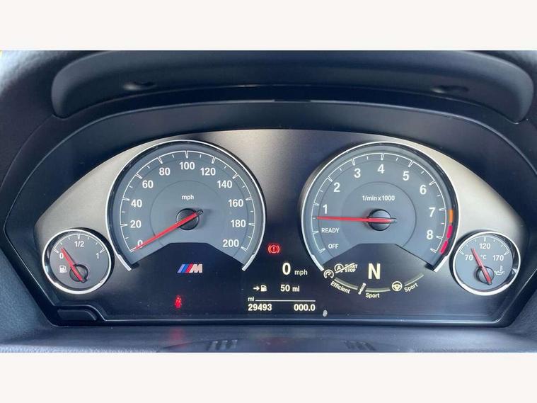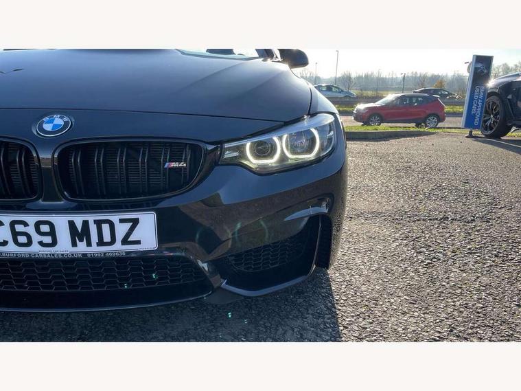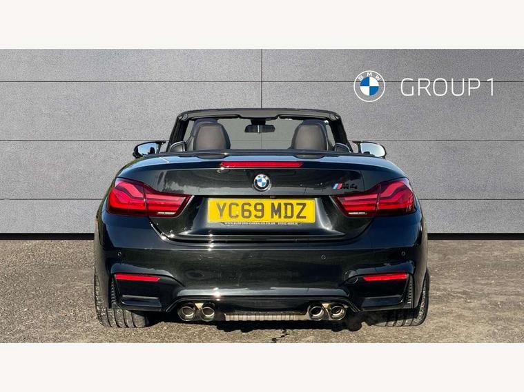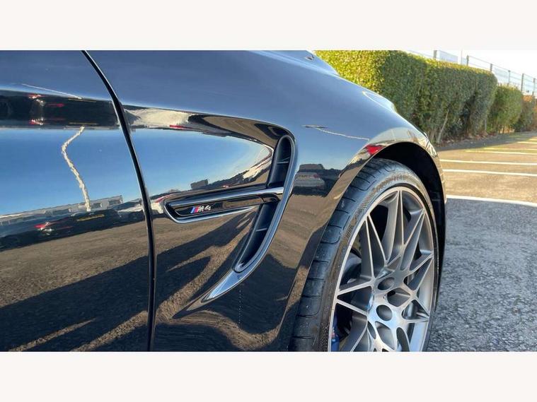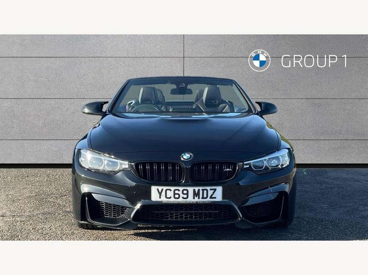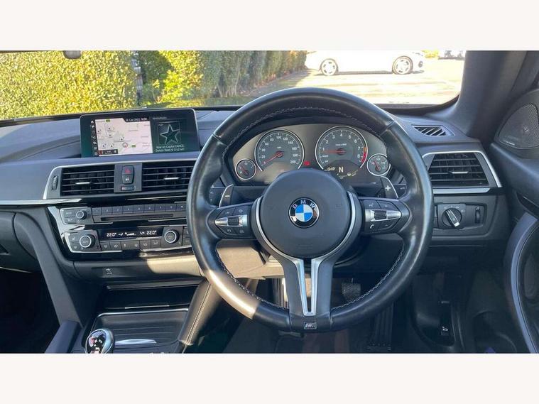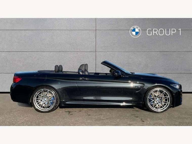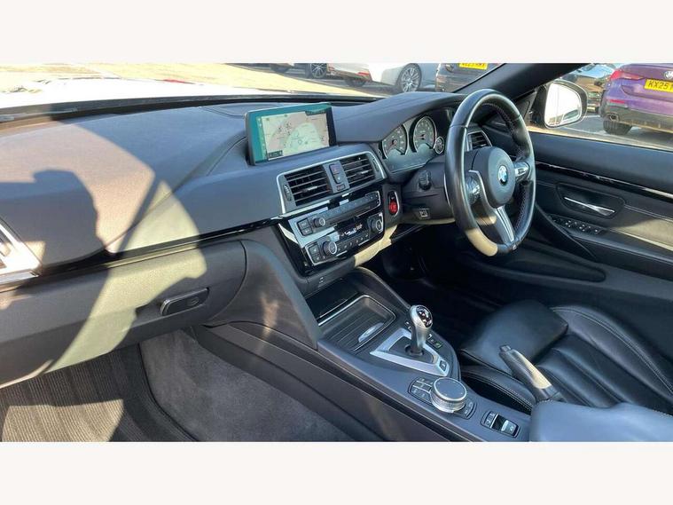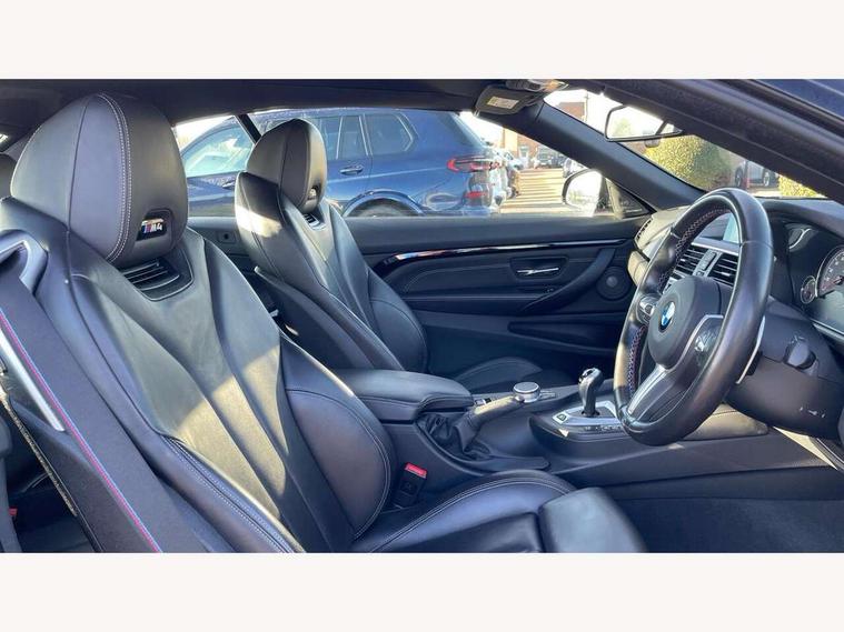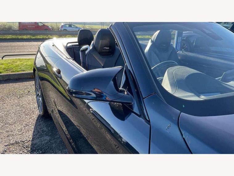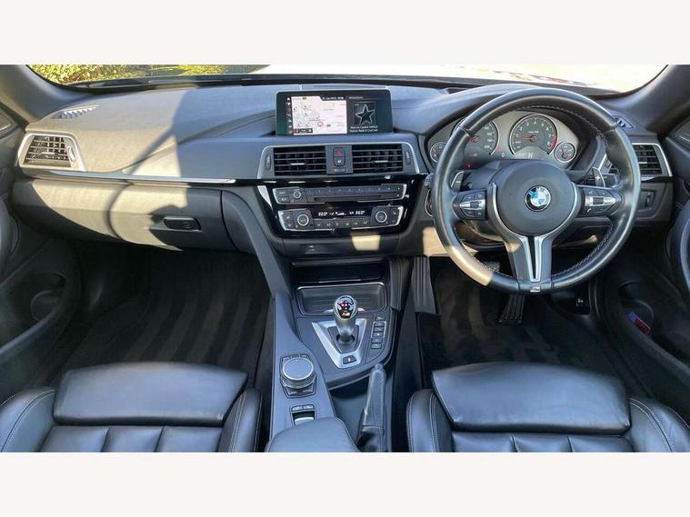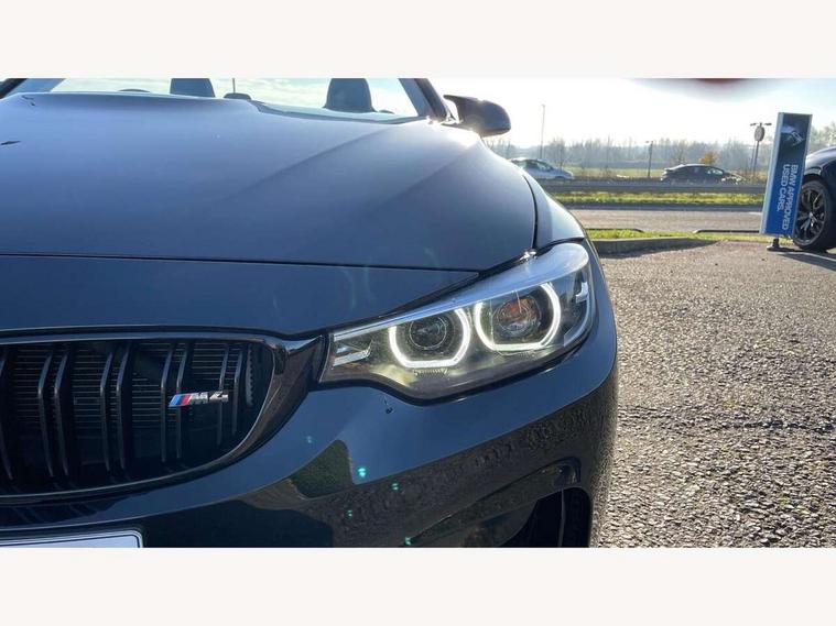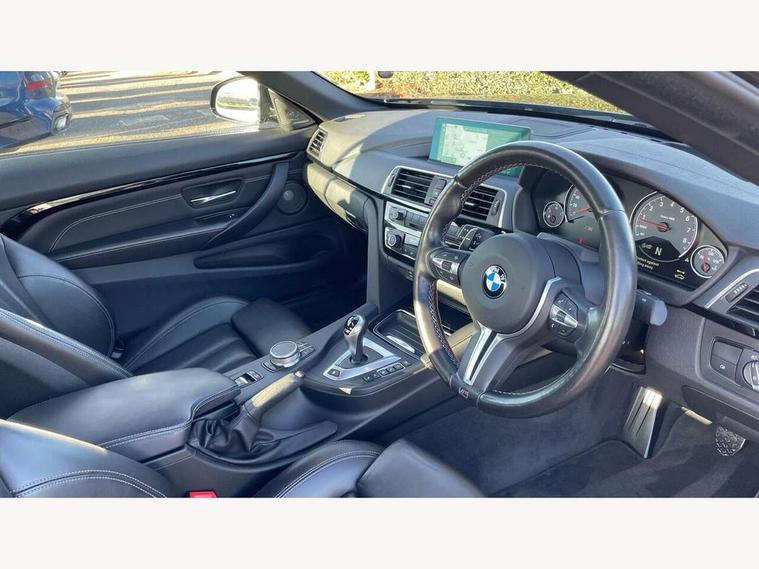 BMW service history, Brake pad wear indicator warning light, Check Control warning system for monitoring of lights and door/luggage compartment open warning, Condition based service, Controller and Control Display+8.8" monitor, Cruise control with brake assist, Electric Power Steering (EPS) with Servotronic, Enhanced bluetooth with wireless charging, iDrive touch controller with shortcut buttons, Instrument cluster with speedometer with miles per hour read out, tachometer and fuel gauge, Integrated owner's handbook, Lights on warning by audio warning signal when ignition is switched off, M drive manager for individual set up, Oil temperature gauge, On-Board Computer (OBC) comprising: average speed, average and current fuel consumption, and range, outside temperature display with acoustic warning, Optimum shift indicator, Service interval indicator, Wireless charging cradle in front centre armrest storage compartment, Adaptive M Sport suspension, Aluminium front suspension, Five link rear suspension, M differential lock, Sport exhaust system, 8 programmable favourite buttons, Auxiliary point for auxiliary devices, BMW professional radio/CD/MP3, DAB Digital radio, Electronic service booklet, Wi-Fi hot spot, Air breather, Auto dimming rear view mirror, Body colour bumpers, Body colour door handles, Body colour door mirrors, Body colour roof mouldings, Daytime running lights, Direction indicator, side repeaters, integrated in exterior mirrors, Door sill finishers, Dynamic brake lights, Electric adjustable heated door mirrors, Electric front and rear windows with fingertip open/close + anti-trap facility and comfort closing function, Exterior mirrors - electrically folding with anti-dazzle, Follow me home headlights, Green tinted heat insulating glass, Headlight beam throw control, Heated windscreen washer jets, High gloss black kidney grille, High gloss black M side strakes, High level third brake light, Illuminated M badge and model name with black high-gloss surround, Individual high gloss shadow line, LED direction indicator lenses, LED eyebrow light, M Sport exhaust finish with black chrome tailpipe finishers, Rain sensor including auto headlights activation, Retractable hard top, Two part LED tailights in L-shape with components in smoked glass, brake light, LED turn indicator and rear fog light, Two speed adjustable intervals windscreen wipers, Visible VIN plate, Welcome lighting, 12V sockets in front centre console and passenger footwell, 3 spoke leather M sport multifunction sports steering wheel, 4 grab handles, Anthracite headlining, Armrest front sliding with folding storage compartment, Driver + passenger electric lumbar support, Driver and front passenger seat heating, Dual zone climate control, Electrically adjustable front seats - driver seat with memory, Front and rear bottle holders integrated into door trim storage compartments, Front and rear side armrest integrated into door trim, Front interior light, Front seat backrest width adjustment, Full black panel display, Gearshift lever with M designation, Glovebox with lid, Integrated rear head restraints, ISOFIX child seat preparation+airbag deactivation, Lashing eyelets in boot, Leather gear and handbrake lever, Luggage compartment lighting, M specific running gear, M specific seats for driver and passenger lightweight construction with integrated headrests, M-specific rear seats with integrated two headrests, Reach + rake adjustable steering column, Storage compartment behind rear seat, Storage compartment in rear centre console, Storage compartment in rear doors, Storage tray in left luggage compartment, Sunvisors with illuminated vanity mirrors and ticket pocket, Toolkit located in luggage compartment, Two front cupholders with removable oddments tray/lid, Velour floormats, Extended lights package - M Series, Media pack - Professional - M4, ABS/EBD, Automatic Stability Control (ASC), Battery safety cut-off, Brake assist, Brake drying, Brake energy regeneration, Braking pre-tensioning, Childproof rear door locks, Compound brake discs - inner vented, Cornering brake control (CBC), Crash Sensor - activates hazard/interior lighting + unlocks doors, Driver/Front Passenger airbags, DSC+, Dynamic brake control, Dynamic Traction Control - DTC, ESP, Front passenger airbag deactivation, Front pyrotechnic belt tensioners and belt force limiter, rear coaded belt buckles, Front side airbags, Hill start assist, M dynamic mode, M sport seatbelt, Roll over protection, Seat belt security check for driver, Side impact protection, Twin horns, Tyre pressure monitor, Warning triangle and first aid kit, Automatic drive away locking facility, Central locking switch for all doors, fuel filler cap and luggage compartment, Electronic immobiliser, Keyless Start, Remote central locking, Remote control including integrated key with inset in chrome two, Remote control Thatcham category 1 alarm, Start/stop button with Comfort Go keyless engine start and auto Start/stop deactivation button, M mobility system (flat-tyre repair system),