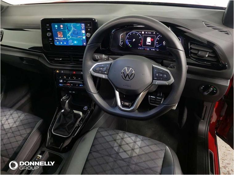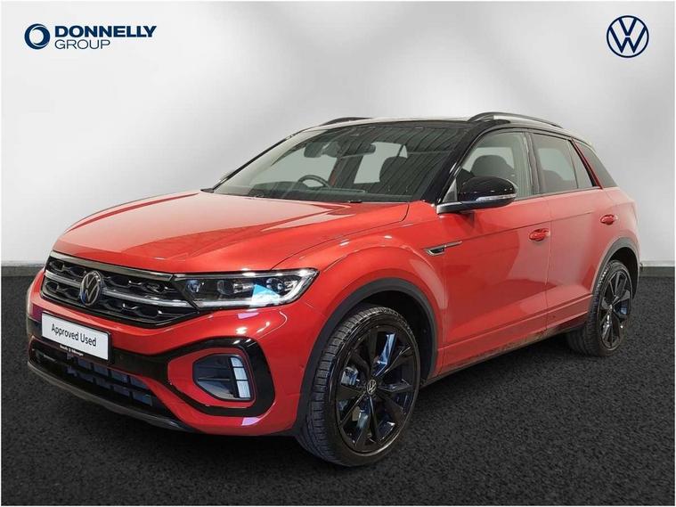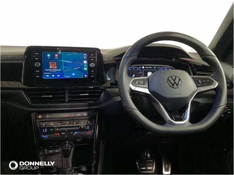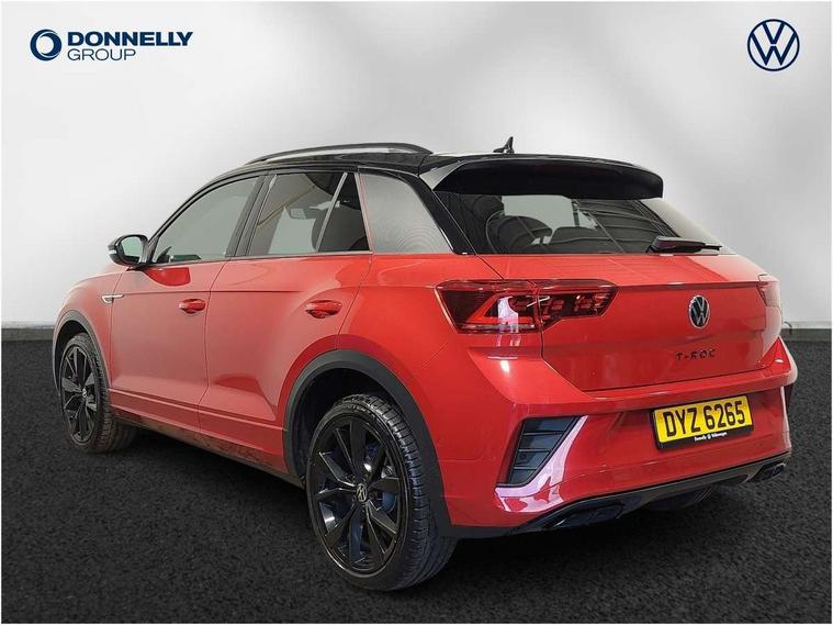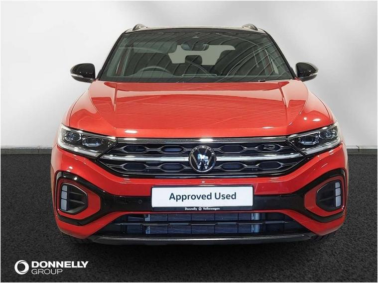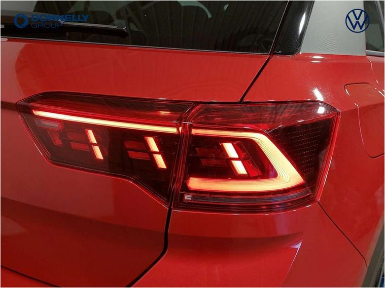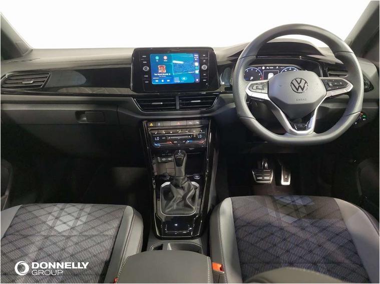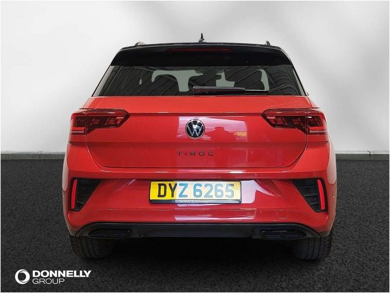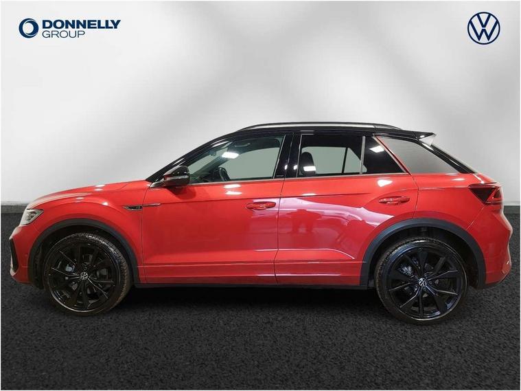 10.25" Digital cockpit pro, Advanced driver attention and drowsiness monitor, Emergency call service, Lane keeping system Lane Assist, Mobile phone interface, Modified key software - reduce switch off time for key status change to Long no motion, Online services, Park assist including front and rear parking sensors, Power assisted speed sensitive steering, Rear view camera, Service interval indicator, Tailgate/trunk lid release from outside, Think blue trainer driver tips and journey analysis, Warning sound and light for front seatbelts unfastened, Wireless app connect, Battery regeneration during braking, Start/stop function with battery regeneration, DAB Digital radio, Diversity antenna for FM reception, Music playback - MP3, WMA and AAC files, Premium USB cable in choice of either Apple or Android smartphone compatibility, SD card slot, Simultaneous pairing of 2 compatible mobile devices, Title and cover art display, We Connect and We Connect Plus functionality, Advanced dynamic light assist for LED matrix headlights, Auto dimming interior rear view mirror, Automatic hazard lights activation under emergency braking, Black roof rails, Dynamic cornering light, Dynamic headlight range control with self adjusting whilst driving, Electrically adjustable and heated door mirrors, Extended roof spoiler, Exterior ambient lighting, Exterior mirrors aspherical on driver side, convex on front passenger side, External USB type C socket and charging sockets, Front windscreen wiper with intermittent wipe and 4 position delay, Heated rear window, Illuminated front grille, IQ LED matrix headlights, LED 3rd brake light, LED rear number plate lights, LED rear tail lights with dynamic turn signal, LED separate daytime running light, Light mode for poor weather, rain, fog or snow, Power windows with comfort operation and circuit breaker, Privacy glass for rear side windows and rear window, R-Line design body coloured bumpers, Rain sensor, Rear exhaust tailpipe, Rear fog light on one side and reversing lights on both sides, Rear side wing doors, Rear wash/wipe with intermittent wipe setting, Remote electrically foldable door mirrors, puddle lights and reverse activated passenger's door mirror, Tilting and sliding panoramic sunroof with rear panoramic sunroof, 12V power socket in centre console, 3 rear head restraints, 3 seat bench in 2nd row, 4 load lashing points in luggage compartment, Air care climatronic air conditoning system with active combination filter and 2-zone temperature control, Chrome plated radiator grille inserts, air vent surrounds and light switch surrounds, Door and side trim panel with leatherette insert, Front + rear carpet mats, Front centre armrest, Front cupholders x 2, Front footwell illumination, Front reading light, Front scuff plates with R Line logo, Front seat back storage pockets, Glove compartment door with light, Instrument lighting, white adjustable panel illumination, Interior ambient lighting and surround lighting, Interior light delay, Isofix child seat preparation, Leather gearshift handle, Load-through provision with cup holder when folded down ('Unsplit rear seat bench, split folding backrest, with centre armrest), Luggage compartment lighting, Single front passenger seat, Stainless steel pedals, Storage compartment in left and right luggage area, Storage compartment in rear doors, Storage compartments in driver and front passenger doors, Sunvisors with illuminated vanity mirrors, Variable boot floor, height adjustable and removable, Black design pack - T-Roc black edition plus, Easy open package with safelock - T-Roc, 3 point height adj front seatbelts + pretensioners, 3 point seatbelts in outer rear with ECE label, ABS, Child locks on rear doors, City emergency braking and pedestrian monitoring, Driver and front passenger airbag with front passenger airbag deactivation, Driver and front passenger safety-optimised head restraints, Drivers seatbelt reminder, Electronic parking brake, Electronic Stability Control (ESC) inc EDL (Electronic Differential Lock) and ASR (Traction Control), Front and rear passengers curtain airbag system including front side airbags, Hill start assist, Predictive pedestrian protection, Rear disc brakes, Two tone horn, Tyre pressure loss indicator, Volkswagen roadside assistance, Keyless locking and starting system keyless access with safelock, Gloss deep iron dash trim, 19" Misano alloy wheels with low rolling resistance and anti theft wheel bolts, Tool kit, Trims for alloy wheels, Tyre mobility kit including compressor and sealing foam,