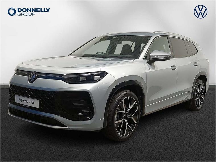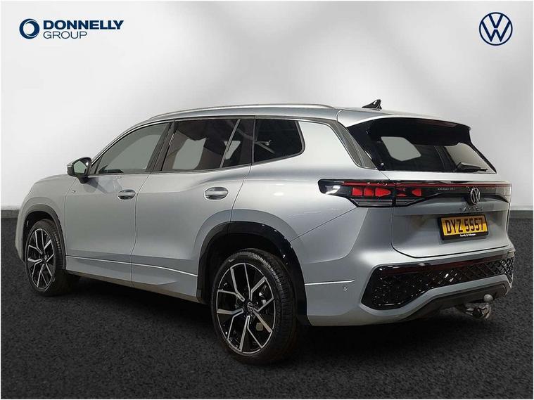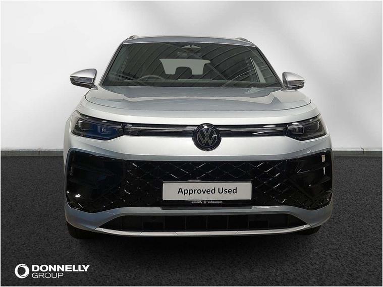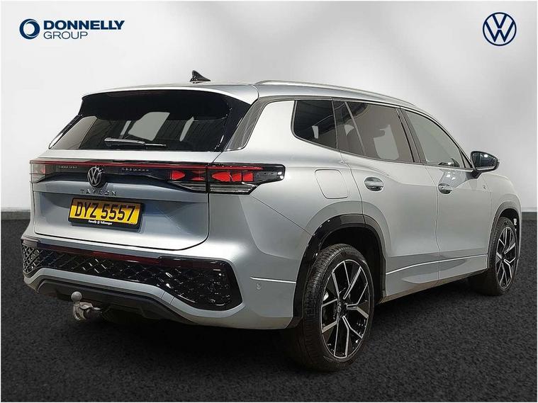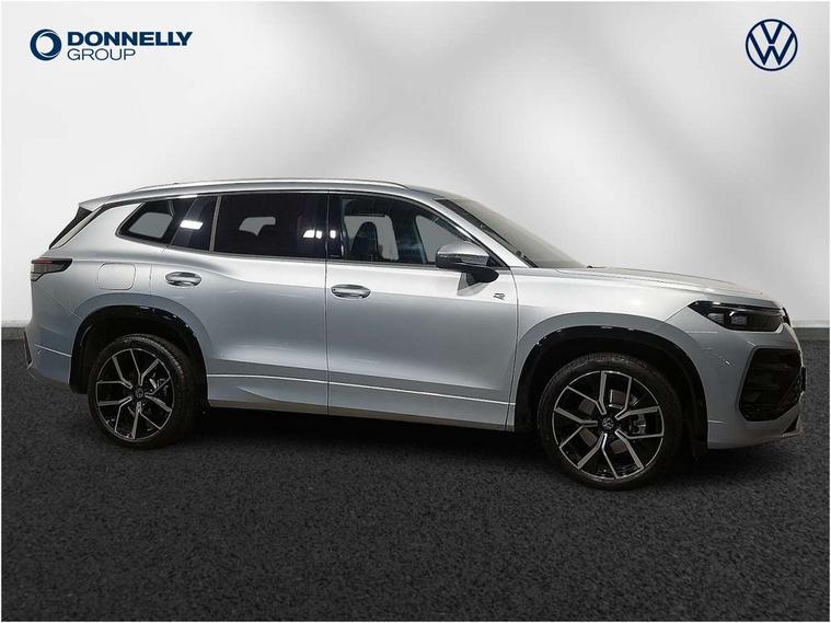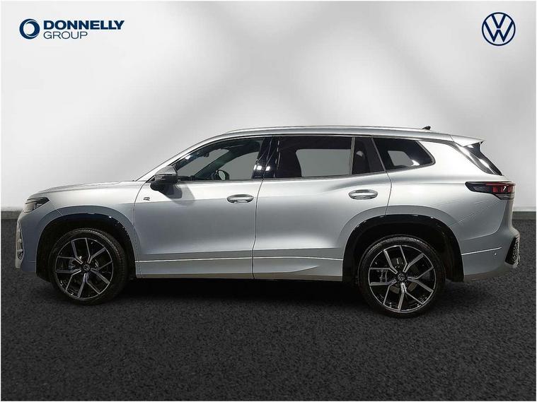 Adaptive cruise control (ACC), Digital Cockpit Pro - 10.25" high resolution dash display screen with customisable menus and information, Driver alert system, Driver attention monitoring system, Dynamic road sign display, E-Sim card for online connectivity, eCall emergency call system, Lane change system, Side assist, Rear traffic alert and Exit warning system, Multifunction front facing camera, Oncoming vehicle braking when turning including swerve support, Start/stop system with regenerative braking, Voice activation spoken voice commands for telephone and navigation system, Warning signal and warning light for front and rear seatbelts not fastened, Wireless App-Connect, All wheel drive - 4Motion, Digital radio reception (DAB), Diversity antenna for FM reception, Air intake with Chrome trim, Auto dimming interior rear view mirror, Automatic headlight control system, Body colour door handles, Chrome moldings on the side windows, Coming/leaving home lighting function, Dynamic headlight range control with dynamic cornering light, Exterior mirrors convex on the left and aspherical on the right, Heat insulating glass in side and rear windows, Illuminated Volkswagen logo rear with animation, Laminated safety glass winshield, heat insulating, LED 3rd brake light, LED separate signature day time running light, Puddle lights, Rain sensor windscreen wipers, Rear fog light on one side, reversing light on both sides, Rear side wing doors, Rear wiper, Reverse activated passenger's door mirror, Surround lighting with welcome light, Volkswagen logo in front, illuminated lighting animation with wake up/goodbye scenario and illuminated door handles, 10 colour interior ambient lighting, 12V outlet in center console rear and in luggage compartment, 3 rear headrests, 3 rear seat bench in 2nd row, backrest split folding with centre armrest and 2 seats in 3rd row of seats, Black roof lining, Brushed stainless steel pedals, Carpet mats, front and rear, Centre console with illuminated storage compartment with sliding cover and two drinks holders, Chrome elements on the mirror switch and power window switches and door pulls, Door and side trim panel insert in Art velour, Flat luggage compartment floor, Front centre armrest, Front scuff plates in aluminium, ISOFIX anchors for child seats on outer rear seats and front passenger seat compatible with i-Size, Mechanical rear seat release, Power adjustable lumbar support in front, Single front passenger seat, Sports comfort seats in front, Sun visors with illuminated vanity mirrors, 3 Point seat belts in front with pretensioners, 3 point seatbelts in outer rear with ECE label, Autonomous emergency braking front assist with pedestrian and cyclist monitoring, Driver and front passenger airbag with front passenger airbag deactivation, Electronic parking brake with auto hold, First aid kit with warning triangle and safety vest, Front and rear curtain airbags, Front and rear side airbags, Front centre airbag, Front disc brakes, Hill decent control, Hill start assist, Rear disc brakes, Two tone horn, Decorative material set R-Line, Interior door handle in matte chrome,