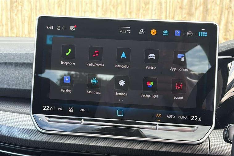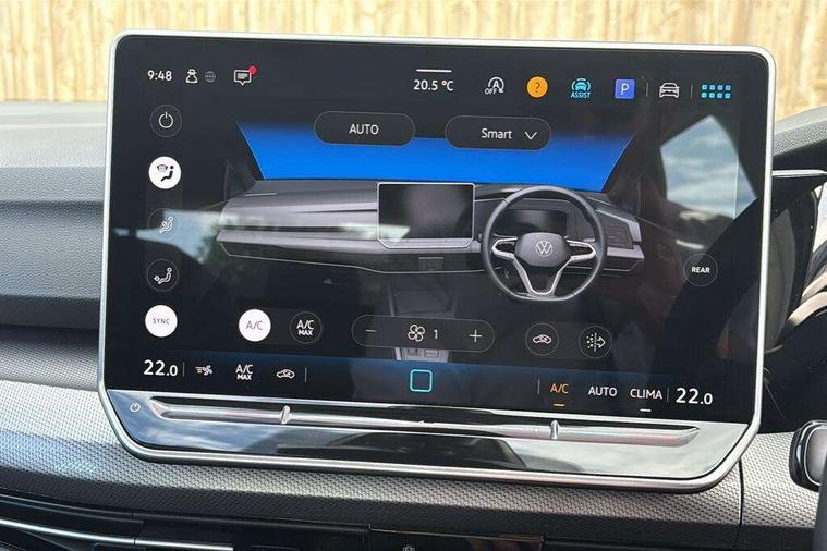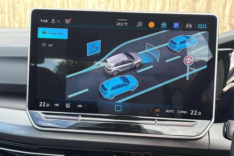 Activated carbon canister, Adaptive cruise control (ACC), Advanced driver attention and drowsiness monitor, Dynamic road sign display, E-Sim card for online connectivity, eCall emergency call system, Multi-color Digital cockpit pro, selection of different info profile possible, Multifunction front facing camera for distance control, Navigation system, Oncoming vehicle braking when turning including swerve support, Preparation for light assist system, Side assist blind spot lane change system, rear traffic alert and exit warning system, Speed limiter, Speedo, rev counter, electronic odometer, trip, service interval display, exterior temperature and fuel gauge, Traffic jam assist, Voice enhancer and voice control, Warning signal and warning light for front and rear seatbelts not fastened, We connect plus preparation, We connect preparation, Wireless app connect, Hybrid propulsion system, Petrol Particulate Filter, Start-stop system with battery regeneration (recuperation - energy recovery during braking), XDS electronic differential lock for improved traction and handling, 2 USB C ports in front, 2 USB charging sockets on the centre console in the rear charging capacity upto 45W, Comfort telephony + wireless charging, without wireless aerial connection, Digital radio reception (DAB), Diversity antenna for FM reception, Gaming platform via car app, Infotainment system with 12.9" display, Mobile phone interface with inductive charging feature, 3rd brake light, Auto dimming rear view mirror, Auto headlights, Automatic headlamp activation with Coming home and Leaving home feature, Body colour bumpers, Body colour door handles, Body colour door mirrors, Chrome trimmed front air intake surrounds, Chrome trims on the side window bottom, Exterior ambient lighting with with illuminated molding between the headlamps and door handle recess, Exterior mirrors convex on the left and aspherical on the right, Front and rear electric windows, Heat insulating windshield made of laminated glass, LED daytime running lights, Rain sensor, Rear exhaust tailpipe, Rear fog light on one side and reversing lights on both sides, Rear side wing doors, Rear windscreen washer and wiper with interval delay, Remote electrically foldable door mirrors, puddle lights and reverse activated passenger's door mirror, Welcome light with surround lighting, 12V socket in front centre console, 12V socket in luggage compartment, 3 rear head restraints, 3 seat bench in 2nd row, Air care climatronic 3 Zone automatic climate control with rear air conditioning control panel, Ambient lighting with 30 colour including LED light unit in front footwell with selectable light colour, Art velours cloth upholstery, Carpet mats, front and rear, Chrome plated radiator grille inserts, air vent surrounds and light switch surrounds, Door insert, side trim panel and arm support in leatherette, Front centre armrest, Front head restraints, Front seat lumbar support adjuster, ISOFIX anchors for child seats on outer rear bench seats and on front passanger seat compatible for i-Size, Luggage compartment lighting, Manual height adjustable front seats, Plastic gear knob, Rear cupholder and loadthough, Single front passenger seat, Soul black instrument panel, Split folding backrest with centre armrest and unsplit rear seat bench, Sports comfort seats in front, Standard pedal cluster, Storm grey roof lining, Sun visors with illuminated vanity mirrors, Driver assistance pack - Golf DSG Estate/Hatchback, 3 point height adj front seatbelts + pretensioners, 3 rear three point seatbelts, ABS, Autonomous emergency braking front assist with pedestrian and cyclist monitoring, Child locks on rear doors, Driver and front passenger airbag with front passenger airbag deactivation, Electronic parking brake with auto hold, ESC (Electronic Stability Control), Extended pedestrian protection measures, Hill start assist, Rear disc brakes, Two tone horn, Tyre pressure loss indicator, Volkswagen roadside assistance, Anti theft wheel bolts, Preparation for alcohol interlock, New brushed dark metal decorative inserts for dashboard and front door panels,