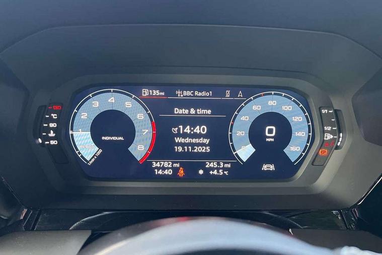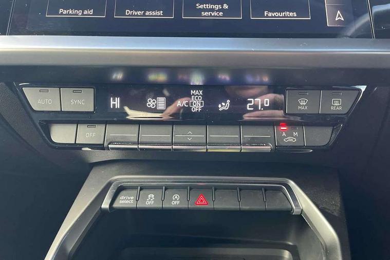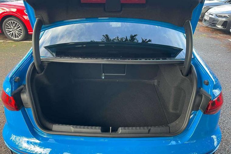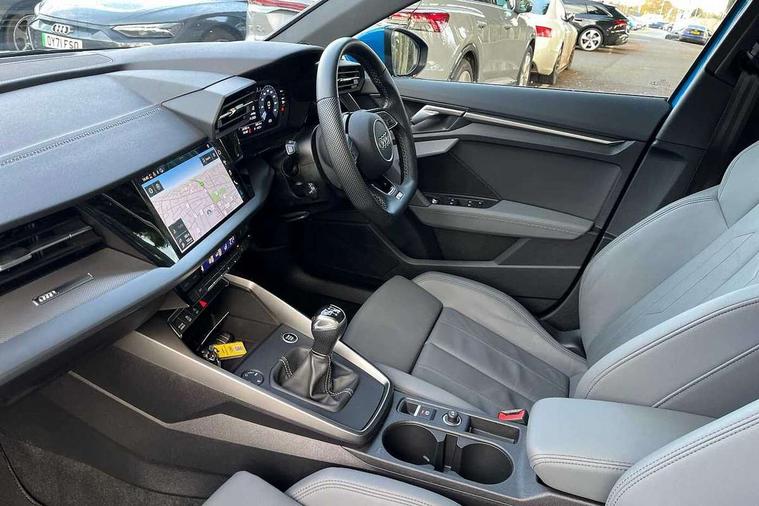 Audi connect emergency call and service, Audi drive select (Auto, Comfort, Dynamic, Efficiency and Individual), Audi smartphone interface, Audi Virtual Cockpit - 10.25" digital and colour instrument cluster, Automatic start/stop system with recuperation, Bluetooth interface, Collision avoidance assistant, Cruise control + speed limiter, Electromechanical power speed sensitive steering, Lane departure warning system, MMI Navigation Plus with high resolution 10.1" colour touch screen display, Rear parking sensors, Service indicator, Voice control system with natural language interaction, 2x USB Type C ports (for charging and data transfer), 6 passive loudspeakers, CD player, DAB Digital radio, 3rd brake light, Acoustic glass windscreen, Aluminium window trim, Auto dimming frameless rear view mirror, Electrically adjustable/heated/folding/auto dimming door mirrors with integrated LED indications + kerb view function for passenger side, Front electric windows, Illuminated door sills with aluminium inserts at the front with S logo, LED daytime running lights, LED headlights with LED rear lights and dynamic rear indicators, Light and rain sensors, Model and engine designation badges at rear, Privacy glass - dark tinted rear window, rear door and side windows, Rear boot, Rear electric windows, Rear side wing doors, S line bumpers, S roof spoiler, 12V socket and storage compartment in front centre console, 3 seat bench in 2nd row, 40/20/40 split folding rear seat bench with cupholder, Black cloth headlining, Dual zone electronic climate control, Front and rear centre armrest in leather, Front and rear headrests, Front/rear floor mats, Height and reach adjustable steering wheel, Illuminated vanity mirror, Interior lighting - glove compartment light and right hand side, Luggage compartment floor covering, Manual boot compartment lid, Manually adjustable front sport seats, Seat side bolsters, Single front passenger seat, Stainless steel pedals and front footrest in black, Twin leather upholstery with front sports seats S embossed logo, Aluminium interior elements pack - A3, S line styling pack - A3 Saloon, 3x3 point rear seat belts, Driver and front passenger airbag with passenger airbag deactivation, Electronic Stabilisation Control (ESC) including ABS, ASR and EDL, First aid kit with warning triangle and 2 safety vests, Front side airbags with head airbags and interaction airbag, Hill hold assist, Pre-sense front with pedestrian and cyclist detection, Seatbelt monitoring, Tyre pressure loss indicator, Anti theft alarm, Anti-theft wheel bolts, Immobiliser, Manual child locks, Remote control central locking, Aluminium air vent surrounds, Aluminium trim elements, Dark spectrum aluminium inlays, accent surfaces in the dashboard and centre console in platinum grey silk effect paint finish,