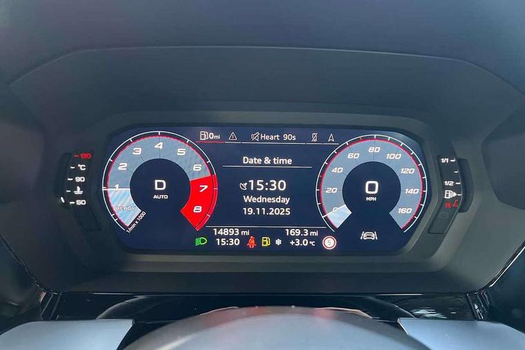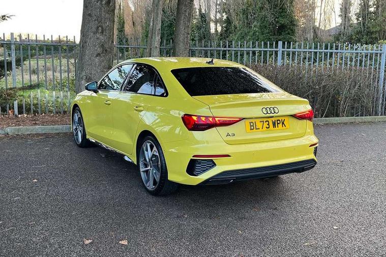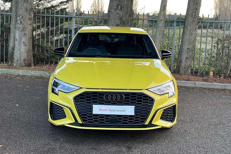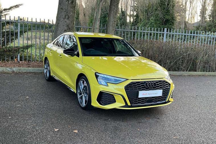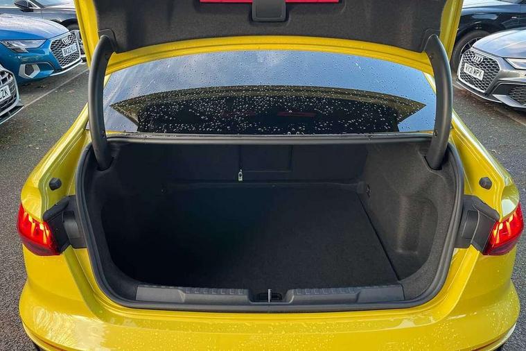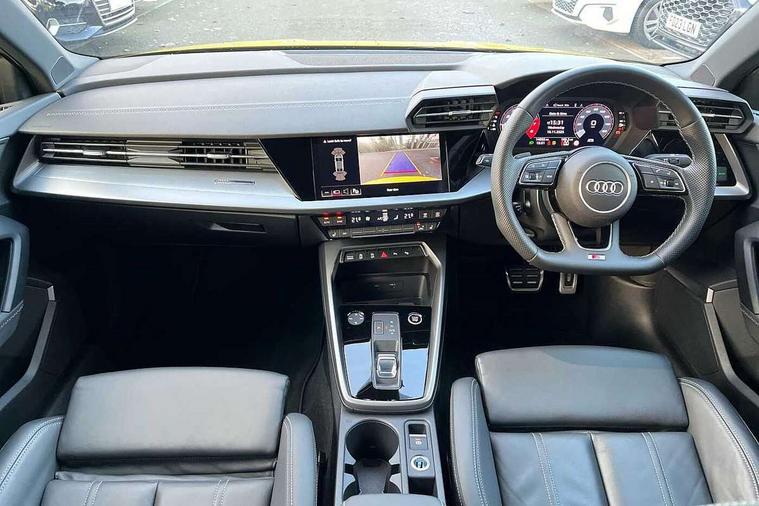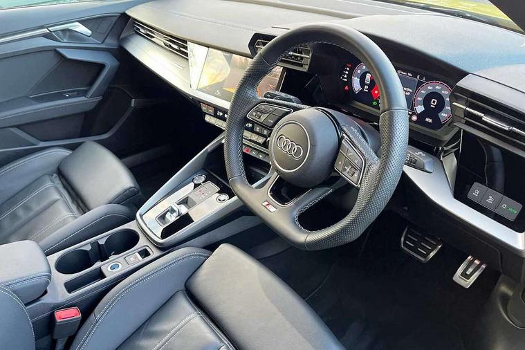 Audi drive select (Auto, Comfort, Dynamic, Efficiency and Individual), Audi smartphone interface, Audi Virtual Cockpit - 10.25" digital and colour instrument cluster, Automatic start/stop system with recuperation, Bluetooth interface, Camera based traffic sign recognition, Collision avoidance assistant, e-Call (emergency call), Electromechanical power speed sensitive steering, Lane departure warning system, MMI Navigation Plus with high resolution 10.1" colour touch screen display, Service indicator, Trip computer, Voice control system with natural language interaction, Sports suspension, 2xUSB-C connection with data and charging functions, 6 passive loudspeakers, CD player, DAB Digital radio, 3rd brake light, Acoustic glass windscreen, Audi beam uses LEDs to project the Audi logo onto the ground as you exit your A3, Auto dimming frameless rear view mirror, Electrically adjustable/heated/folding/dimming door mirrors with kerb view includes integrated LED indications + kerb view function for passenger side, Front electric windows, Illuminated door sills with aluminium inserts at the front with S logo, LED daytime running lights, LED headlights with LED rear lights and dynamic rear indicators, Light and rain sensors, Model and engine designation badges at rear, Privacy glass - dark tinted rear window, rear door and side windows, Rear boot, Rear electric windows, Rear side wing doors, S roof spoiler, 12V socket and storage compartment in front centre console, 3 seat bench in 2nd row, 3 spoke flat bottomed leather multifunction sport steering wheel with gear shift paddles, 4 way electrically adjustable lumbar support for driver and front passenger, 60/40 split folding rear seat bench, Black cloth headlining, Dual zone electronic climate control, Front and rear centre armrest in artificial leather, Front and rear headrests, Front/rear floor mats, Height and reach adjustable steering wheel, Interior lighting - glove compartment light and right hand side, Luggage compartment floor covering, Manual boot compartment lid, Single front passenger seat, Stainless steel pedals and front footrest in black, Twin leather upholstery with front sports seats S embossed logo, Aluminium interior elements pack - A3 Saloon, Black styling pack - A3 Saloon/Black edition, LED interior lighting pack - A3 Saloon, 3x3 point rear seat belts, Driver and front passenger airbag with passenger airbag deactivation, Electronic Stabilisation Control (ESC) including ABS, ASR and EDL, First aid kit with warning triangle and 2 safety vests, Front side airbags with head airbags and interaction airbag, Pre-sense front with pedestrian and cyclist detection, Seatbelt monitoring, Tyre pressure loss indicator, Anti theft alarm, Anti-theft wheel bolts, Electronically operated child locks, Immobiliser, Remote control central locking, Aluminium air vent surrounds, Dark spectrum aluminium inlays, accent surfaces in the dashboard and centre console in platinum grey silk effect paint finish, 19" 5 arm trapezoid design alloy wheels in matt grey with diamond cut finish,
