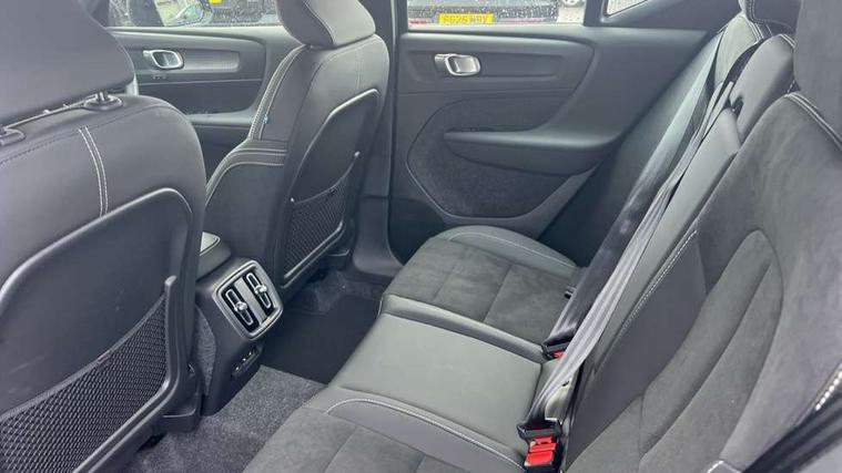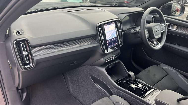 12.3" Progressive Driver Display, 9" centre console portrait touch screen, Adjustable steering wheel force, Android auto (Wired), Apple carplay (wired), Bluetooth handsfree system, Driver alert control, Driver assistance (pilot assist and adaptive cruise control), Driver awareness - Blind spot information system with steer assist, cross traffic alert with autobrake and rear collision warning and mitigation, E-call, Front park assist, Google automotive services - Enabled entertainment apps, navigation with google maps, voice recognition with google assistant, Hands free power tailgate, Intelligent speed assistance, Lane keeping aid, Oncoming Lane Mitigation, Rear park assist, Speed sensitive steering, Volvo cars services with app - Driving journal, emergency and breakdown call, engine remote start, remote door locking/unlocking and vehicle dashboard, Wireless/Inductive Mobile Phone Charging, Automatic transmission with start/stop and manual change functions, Dynamic chassis, DAB Digital radio, Steering wheel mounted remote controls, Adaptive brake lights with high level LED brake lights, Auto dimming feature for exterior door mirrors, Auto dimming interior mirror, Automatic headlamp levelling, Automatic LED Headlights + Active high beam incorporating daytime running lights, Front aluminium tread plates, Front and rear electric windows, High gloss black front and rear skid plate, High gloss black front bumper deco, High gloss black mesh front grille with high gloss black surround, High gloss black window trim, Home safe and approach lighting, Integrated roof rails in high gloss black, LED front fog lights, Puddle lights, Rain sensor with automatic windscreen wiper activation, Rear side wing doors, Rear wiper, Roof antenna, Roof spoiler, Visible VIN plate, 12V socket in front tunnel console and luggage compartment, 2-Zone electronic climate control with CleanZone air quality system and pollen filter, 3 seat bench in 2nd row, 3 Spoke tailored steering wheel with chrome trim, 60/40 versatile split folding rear seat, Centre console cupholders and storage, Charcoal headlining, Connect textile/microtech upholstery, Flexible load floor and grocery bag holder, Floor mats, Front cabin courtesy lights, Front door pocket, front cupholder, ambient front door, rear reading, rear courtesy, instrument panel and tailgate lighting, Front footwell illumination, Front headrests, Front reading lights, Front seat cushion extensions, Front side step illumination (under door), Glovebox bag hook, Heated front seats, Height adjustable passenger seat, Height/reach adjustable steering column, High gloss centre tunnel deco, Illuminated glovebox, Illuminated luggage compartment, Illuminated vanity mirrors + ticket holder, Integrated waste bin, Isofix attachments on outer rear seats, Load cover, Load protection net, Multi directional lumbar support for driver and passenger seat, Power driver seat with memory + exterior mirrors memory, Rear armrest with cupholders, Rear headrests, Single front passenger seat, Underfloor cargo storage, Climate pack without heated front seats - XC40, 3x3 point rear seatbelts, City safety with steering support with Pedestrian + cyclist + front collision warning with full auto brake and rear auto brake, Driver and passenger airbags, Drivers knee airbag, Electronic parking brake with auto hold, First aid kit, Front and outer rear seatbelt reminder and pretensioners, Front seats SIPS airbags, Hill descent control, Hill start assist, Inflatable curtain, Passenger airbag cut-off device, Power child locks on rear doors, Road sign information display, Run off Road Protection, SIPS (Side Impact Protection System), Slippery road and hazard light alert, Stability and Traction Control with Spin control, Engine Drag Control and Corner Traction Control, Tyre pressure monitoring system, Vehicle deceleration control with Anti-lock Brake System, Electronic Brake Distribution and Emergency Brake Assist, Warning triangle, WHIPS whiplash protection system - front, 2 x Key integrated remote control central locking including with deadlocking system and auto open/close windows, Anti-theft alarm including immobiliser/volume sensor + level sensor, Keyless drive includes keyless entry and keyless start, Locking wheel nuts,