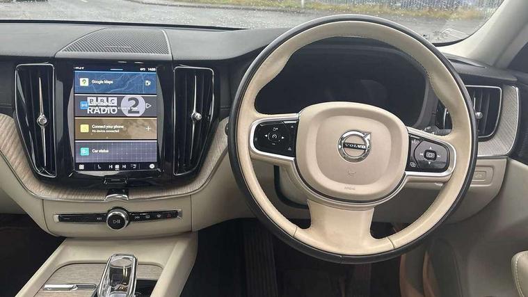 12.3" Active TFT crystal driver's instrument display, 9" centre console touch screen, Adjustable steering wheel force, Bluetooth handsfree system, Drive mode selector, Driver alert control with lane keeping aid, Emergency services call system, Front and rear park assist, Google Automotive Services, Oncoming Lane Mitigation, Service interval indicator, Speed limiter, Speed sensitive steering, Trip computer, Volvo on call with App, Wireless/Inductive Mobile Phone Charging, 8 speed automatic transmission with start/stop + manual change functions, Dynamic chassis, DAB Digital radio, Adaptive brake lights with high level LED brake lights, Auto dimming interior + exterior mirrors, Automatic headlight levelling system, Automatic LED Headlights + Active high beam incorporating daytime running lights, Chrome deco lower front bumper, Chrome lower side moulding trim, Chrome window surround, Colour co-ordinated door mirrors, Electric adjustable/heated/auto power folding door mirrors, Electric front+rear windows, Front aluminium tread plates, High gloss black grille with chrome inserts, Home safe and approach lighting, Integrated roof rails in Chrome, Puddle lights, Rain sensor with automatic windscreen wiper activation, Rear Bumper Chrome Insert, Rear side wing doors, Rear wiper, Roof antenna, Roof spoiler, Tinted windscreen, Visible VIN plate, 12V socket in front tunnel console and luggage compartment, 3 seat bench in 2nd row, A-pillar parking ticket holder, B Pillar ventilation, Bright metal luggage threshold, Centre armrest storage illumination, Centre console cupholders and storage, Floor mats, Front and rear door pocket and front cupholder illumination, Front footwell and side step illumination, Front reading lights, Front seat cushion extensions, Head restraints for all seats, Heated front seats, Height/reach adjustable steering column, High gloss black steering wheel remote infotainment controls, Illuminated glovebox, Illuminated luggage compartment, Illuminated vanity mirrors + ticket holder, Load cover, Load protection net, Multi directional lumbar support, Orrefors Crystal gear lever knob, Rear armrest with cupholder, Rear footwell and side step illumination, Rear seat concealed storage, Single front passenger seat, Tailgate illumination and ambient door lighting, Underfloor stowage compartment, Versatile split folding rear seat - 60/40, Seat pack - XC60 R-Design Pro/Inscription Pro, 5 three point seatbelts, City safety with steering support with Pedestrian + cyclist + large animal detection + front collision warning with full auto brake, Drivers knee airbag, Dual stage driver/passenger airbags, Electronic parking brake with auto hold, First aid kit, Hill descent control, Hill start assist, IC (Inflatable Curtains) - Full Length, Mechanical child locks on rear doors, Passenger airbag cut-off device, Road sign information display, Run off Road Mitigation, Run off Road Protection, Seatbelt reminder and pretensioners, SIPS (Side Impact Protection System), SIPS airbags, Slippery road and hazard light alert, Stability and Traction Control with Spin control, Engine Drag Control and Corner Traction Control, Tyre pressure monitoring system, Vehicle deceleration control with Anti-lock Brake System, Electronic Brake Distribution and Emergency Brake Assist, Warning triangle, WHIPS whiplash protection system - front, Anti-theft alarm including immobiliser/volume sensor + level sensor, Care key with user defined top speed, Key integrated remote control central locking + fuel flap with deadlocking system and auto open/close power windows, Keyless Drive (includes Keyless Entry and Keyless Start) with Handsfree Tailgate Opening/Closing, Locking wheel nuts, Private locking for tailgate, Tailored instrument panel with contrast stitching,