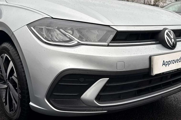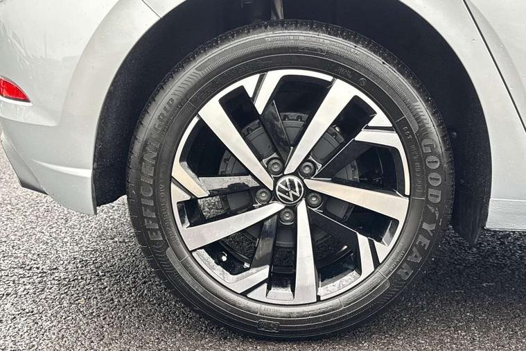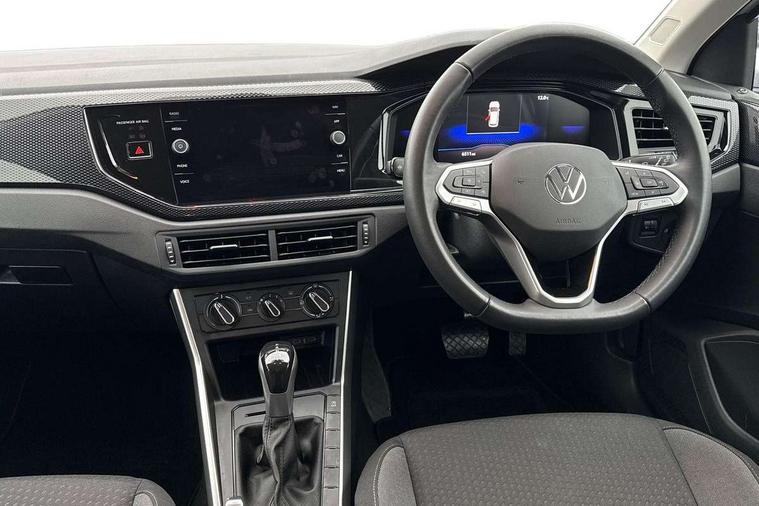 Advanced driver attention and drowsiness monitor, Bluetooth mobile phone interface, Dynamic road sign display, Emergency call service, Mobile phone preparation with inductive charging function, Multifunction front facing camera for distance control, Power assisted speed sensitive steering, Predictive adaptive cruise control without follow-to-stop and speed limiter, Preparation for navigation system with media and internet package, Preparation for We connect and We connect plus, Rear view camera, Speedo and rev counter, electronic odometer, trip, service interval display and exterior temperature gauge, Standard rear axle, Travel Assist - Lane keeping system and traffic jam assist, Travel assist including emergency assist, Trip computer, Warning signal and warning light for front and rear seatbelts not fastened, Washer fluid level indicator, Wireless app connect, Front wheel drive, Rear shock absorpion, Start-stop system with battery regeneration (recuperation - energy recovery during braking), DAB Digital radio, Diversity antenna for FM reception, Automatic dimming interior rear view mirror, Automatic headlight control with LED separate daytime running lights with coming/leaving home function, Body colour bumpers with chrome inserts, Body colour door handles, Body colour door mirrors, Electric front windows, Engine badge deletion, Headlight range adjustment, Heat insulating and laminated safety glass windshield, LED Headlights, LED rear combination lamps, Power folding adjustable/heated exterior mirrors and front passenger exterior mirror lowering function, Rain sensor, Rear electric windows, Rear fog light, Rear side wing doors, Rear tinted glass from B-pillar backwards approx 65% tinted, Rear windscreen washer and wiper with interval delay, Third brake light, 12V power socket in centre console, 2 front and 2 rear reading lights with switch off delay and dimmer, 2 USB-C ports in the front, 2 USB-C charging sockets on the center console in the rear, 3 rear head restraints, 60/40 split folding rear seat and rear seat bench not split, Ceramique roof lining, Chrome plated radiator grille inserts, air vent surrounds and light switch surrounds, Door and side trim panel, Driver and front passenger seat height adjustment, Driver/passenger sunvisors with illuminated vanity mirrors, Front centre armrest, Front seat backrest storage pockets, Front standard seats, Handbrake lever handle in leather, Hartley/Thomas cloth upholstery, Headliner in recycled material, Isofix child seat preparation easy-fit (for two outer rear seats, and front passenger seat) compatible with I-size, Leather trimmed gear knob, Luggage compartment cover, Luggage compartment lighting, Removable luggage compartment floor, Single front passenger seat, Standard climatic zones, Standard pedal cluster, Three spoke leather wrapped multifunction steering wheel with shifting paddles, Light and vision pack - Polo, 3 point height adj front seatbelts + pretensioners, 3 point seat belt for centre rear seat, 3 point seatbelts, outer rear with ECE lable, ABS, Driver and front passenger airbag with front passenger airbag deactivation, Drivers and front passengers safety optimised head restraints, ESC (Electronic stability control) + EDL (Electronic Differntial lock) and ASR (Traction control), Extended and predictive pedestrian/ cyclist protection, Front assist with autonomous emergency braking (for Adaptive Cruise Control ACC up to 130 mph), Front curtain and side airbags with center airbag, Front disc brakes, Hill hold control, Manual child lock in rear doors, Rear drum brakes, Single tone horn, Tyre pressure loss indicator, Alarm with interior protection, Anti-theft alarm system with interior monitoring, backup horn, and towing protection, Anti-theft wheel bolts, Electronic engine immobiliser, Lava stone black gloss/matt decorative inserts in dash and front door panels, 16" Torsby alloy wheels, Low rolling resistance tyres,