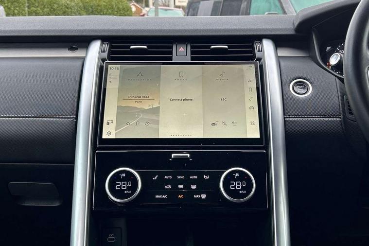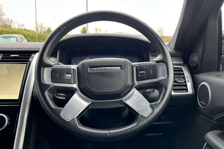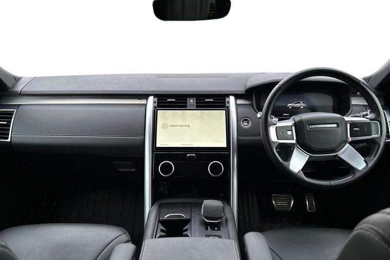 11.4" touchscreen, 3D surround camera, Adaptive cruise control, Android Auto, Apple car play, Blind spot assist, Driver condition monitor, Electric power assisted steering (EPAS), Emergency services call system, Front and rear parking aid, Lane keep assist, Power inner tailgate, Push button start, Rear collision monitor, Rear traffic monitor, Remote, Remote boot release, Service interval indicator, Speed proportional steering, Sportshift selector, Stop/start system, Traffic sign recognition with adaptive speed limiter, Trip computer, Wade Sensing, Adaptive dynamics, Dynamic stability control, Electronic air suspension, Front axle open differential, Digital Audio Broadcast radio-DAB, Dynamic volume control, Meridian surround sound system - 14 speaker + subwoofer, 18 channel amplifier, 700W, Pivi pro connected, USB/aux input socket, Acoustic laminated windscreen, Animated directional indicators, Auto dimming interior rear view mirror, Automatic headlight levelling, Automatic headlights, Body colour bumpers, Body colour door handles, Centre high mounted stop light, D300 badge, Electric heated/power fold memory door mirrors with approach lights and auto dimming driver side, Electric windows with one touch open/close and anti-trap, Heated rear window, Heated windscreen, LED darkend tail lights, Matrix LED headlights with signature DRL, Metal treadplates with R-Dynamic branding, Narvik black Discovery script, Privacy glass, Puddle lights, Rain sensing windscreen wipers, Rear fog lights, Rear side wing doors, Rear wash/wipe, Trailer stability assist, Variable intermittent wiper, 12V power sockets, 12V USB charging socket in loadspace, 2 seat bench in 3rd row, 3 seat bench in 2nd row, Central hinged twin lidded storage, Ebony morzine headlining, Electric adjustable steering column, First and second row door bins, Footwell lights, Front and rear 12V with front USB, Front passenger seat isofix location point, In-facia storage, Isofix child seat preparation for front passenger seat, Loadspace cover, Loadspace Hook, Loadspace light, Lockable glovebox, Lower centre console storage, Luggage tie downs in loadspace, Multi function steering wheel, Overhead lighting console, Premium cabin lighting, Premium carpet mats, Rear ISOFIX, Shopping bag hook, Single front passenger seat, Storage glovebox, Sunvisors with illuminated vanity mirrors, Third row storage, Twin front cupholders with cover, USB with 12V socket in centre console, Online pack with data plan - Discovery, R-Dynamic black exterior pack - Discovery, 3x3 point rear seatbelts, Anti-lock braking system (ABS), Brake pre-fill technology, Cornering brake control, Curtain airbags, Customer configurable autolock, Driver and passenger airbags, EBD - Electronic brakeforce distribution, Electronic traction control, Emergency brake assist, Emergency braking, ESP, Front side airbags, Gradient acceleration control, Hill descent control, Hill launch assist, Power operated child locks, Rear airbags, Roll stability control, Seat belt reminder, Torque vectoring brake, Tyre pressure monitoring system, Immobiliser, Intrusion sensor, Keyless entry, Locking wheel nuts, Remote central locking, All terrain tyres,