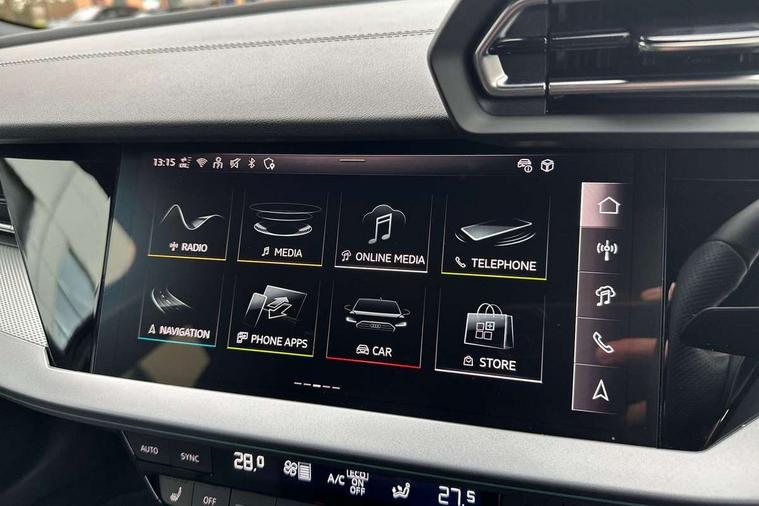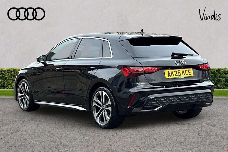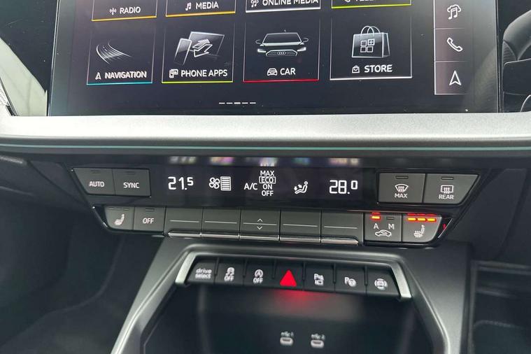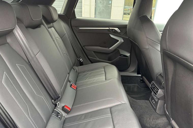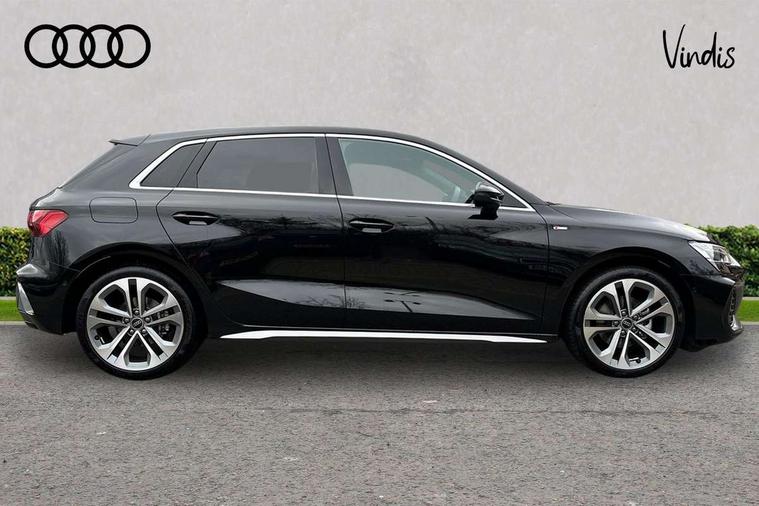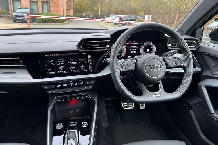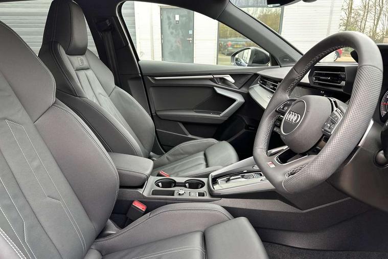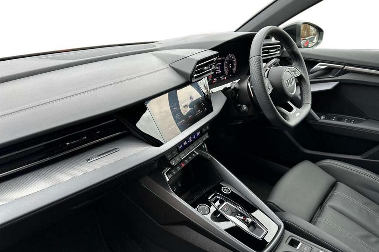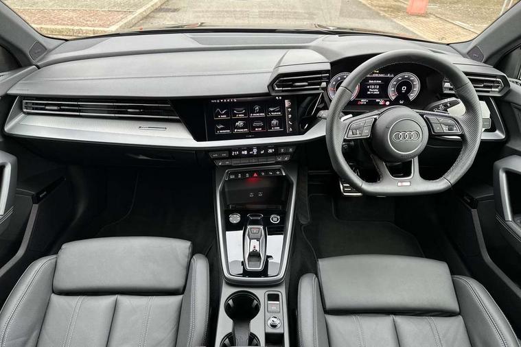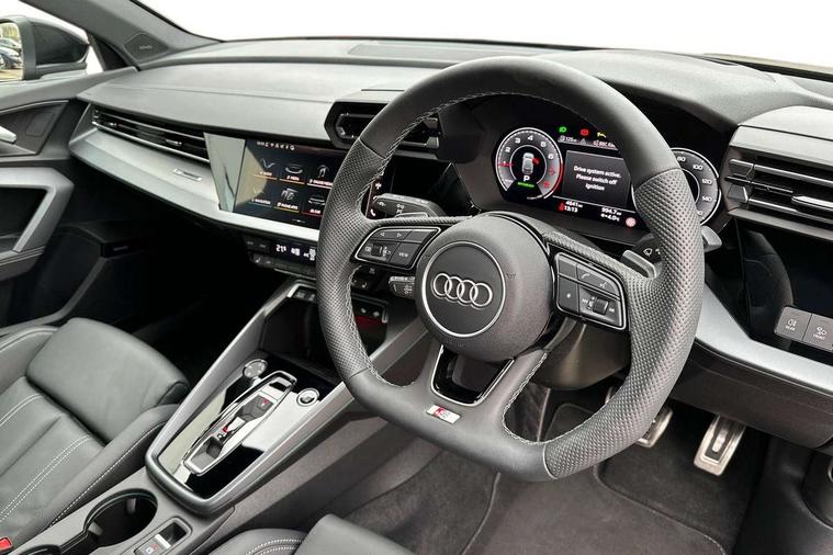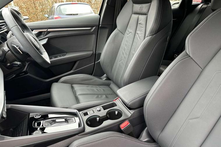 Adjustable speed limiter, Audi drive select, Audi smartphone interface with app store includes wireless Apple carplay, Android auto and Amazon alexa integration, Audi virtual cockpit plus - 12.3" full HD resolution dynamic digital instrument cluster, Automatic start/stop system with recuperation, Bluetooth interface, Camera based traffic sign recognition, Collision avoidance assistant, Cruise control, Distraction and Fatigue warning, e-Call (emergency call), Electromechanical power speed sensitive steering, Emergency assist, Lane departure warning system, MMI Navigation Plus with high resolution 10.1" colour touch screen display, Park Assist with parking system Plus, Service indicator, Tailgate, Trip computer, Voice control system with natural language interaction, Sports suspension, Audi Phonebox light with wireless charging, Audi sound system - 10 loudspeakers including centre loudspeaker and subwoofer, DAB Digital radio, USB ports with charging function in the rear, Acoustic glass windscreen, All weather light, Aluminium window trim, Auto dimming frameless rear view mirror, Automatic dynamic range control, Body colour exterior mirrors, Chrome exhaust tailpipes, Dipped beam, main beam, position light and turning light, Electrically adjustable/heated/folding/auto dimming door mirrors with integrated LED indications + kerb view function for passenger side, Exterior model badging, Front and rear side air inlets in grained matt black with dark liquid chrome frame, Front electric windows, Front radiator grill in high gloss dark chrome, Heat insulating glass windscreen, Illuminated door sills with aluminium inserts at the front with S logo, Intersection light, LED 3rd brake light, LED brake lights, LED daytime running x3, LED headlights with LED rear lights and dynamic rear indicators, LED rear number plate lights, LED reverse light, LED tail lights, Light and rain sensors, Manoeuvring light, Motorway light, Privacy glass - dark tinted rear window, rear door and side windows, Rear diffuser and grill in grained matt black with inlay in dark liquid chrome, Rear electric windows, Rear side wing doors, Rear wiper, S line bumpers, S roof spoiler, Side S line emblems on front wings, Side sill trim in dark liquid chrome, Static Cornering lights, 12V socket and storage compartment in front centre console, 3 seat bench in 2nd row, 3 spoke flat bottomed leather multifunction sport steering wheel with gear shift paddles, 3-zone deluxe automatic air conditioning, 4 way electrically adjustable lumbar support for driver and front passenger, 40/20/40 split folding rear seat bench, Black cloth headlining, Black front and rear floor mats, Front and rear centre armrest in artificial leather with contrasting stitching on armrests and instrument panel, Front and rear headrests, Heated front seats, Height and reach adjustable steering wheel, Manual boot compartment lid, Manually adjustable front seats, Rear centre armrest with cupholder, S badging on the steering wheel, Seat side bolsters, Single front passenger seat, Stainless steel pedals and front footrest in black, Twin leather upholstery with front sports seats S embossed logo, Aluminium interior elements pack - A3, Multi-coloured LED interior lighting package with Multi-coloured contour lighting of instrument panel - A3, 3x3 point rear seat belts, Driver and front passenger airbag with passenger airbag deactivation, Electronic Stabilisation Control (ESC) including ABS, ASR and EDL, First aid kit with warning triangle and 2 safety vests, Front side airbags with head airbags and interaction airbag, Hill hold assist, Pre-sense front with pedestrian and cyclist detection, Seatbelt monitoring, Tyre pressure loss indicator, Anti theft alarm, Anti-theft wheel bolts, Electronically operated child locks, Immobiliser, Remote central locking with safelock, Black dashboard, Inlay in dark aluminium spectrum,