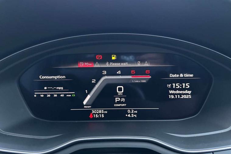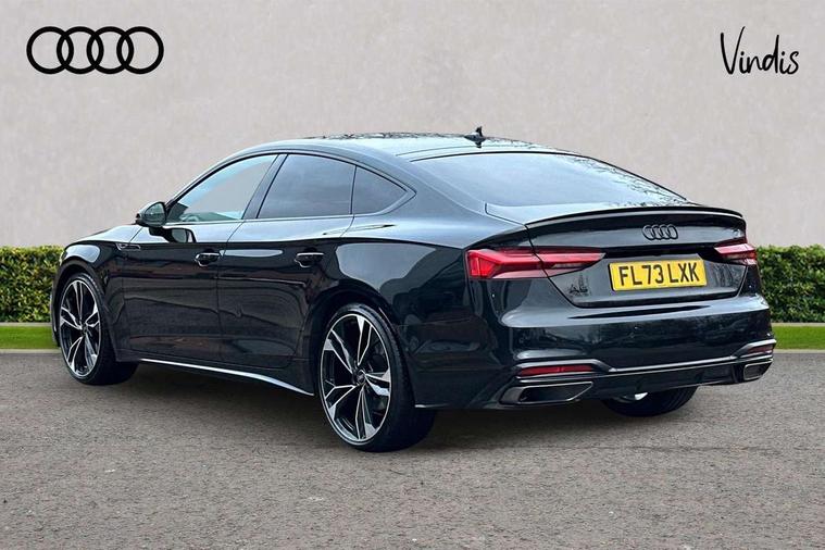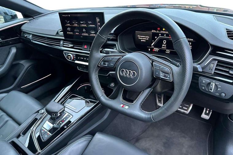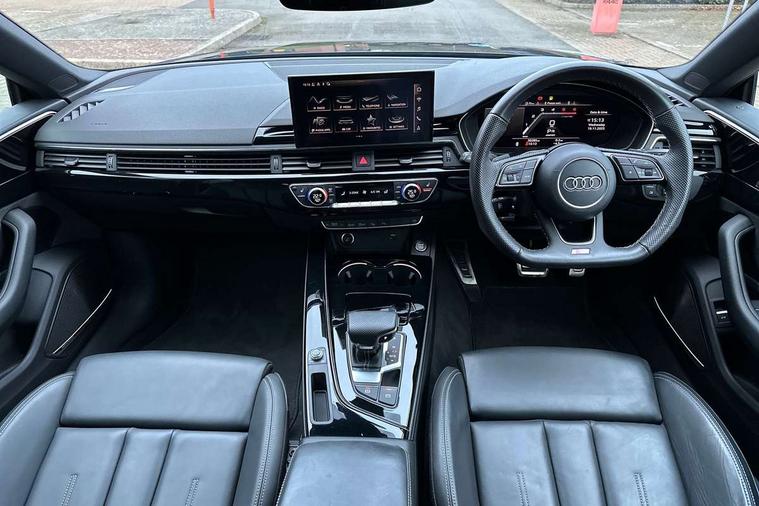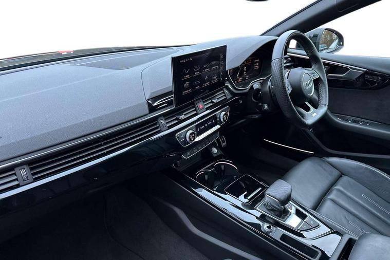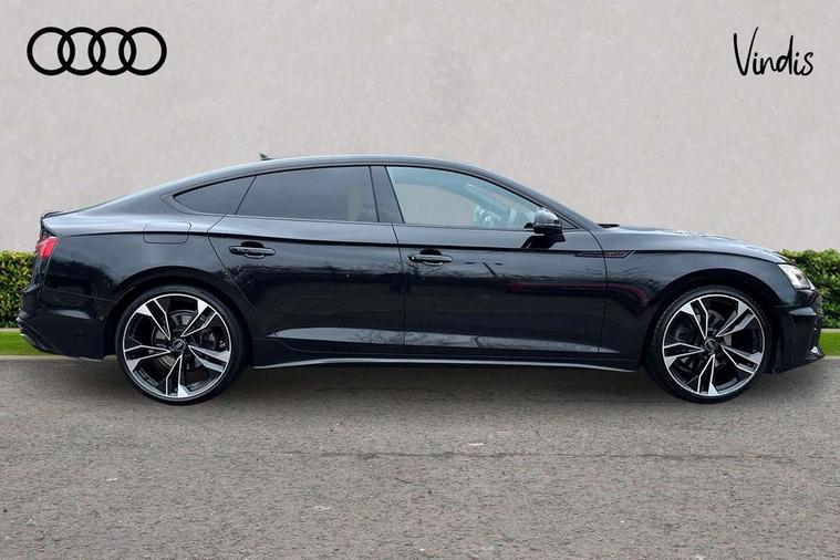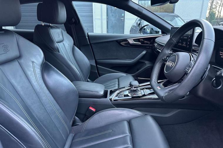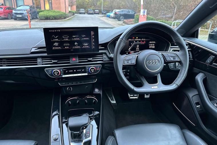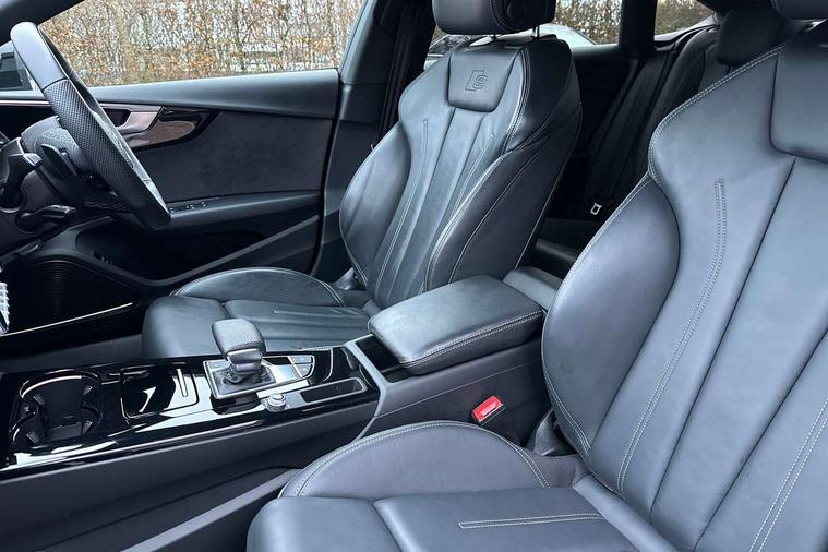 Audi connect safety and service (e-call), Audi drive select (Auto, Comfort, Dynamic, Efficiency and Individual), Audi smartphone interface, Audi virtual cockpit - 12.3" full colour digital instrument cluster, vehicle/engine speed, Radio/media information+Driver assistance systems, Automatic start-stop system with coasting functionality and efficiency programme, Bluetooth interface, Camera based traffic sign recognition, Electro-mechanical power steering, Email, calendar and text messages displayed via MMI, Front and rear parking sensors, Lane departure warning, MMI nav+ with MMI touch - 10.1" high resolution MMI display, touch sensitive, 3D map, route/country info, dynamic route guide, personal route assist, Power operated tailgate, Rear view camera, Service interval indicator, Voice control system, Diesel particulate filter, Sports suspension lowered by 23mm, 8 passive loudspeakers, CD player, DAB digital radio reception, Two additional USB ports for rear passenger in rear centre console, Two SDXC card slots, Audi Beam uses LEDs to project the Audi logo, Auto dimming door mirrors, Auto dimming rear view mirror, Badges on front wing, Black door mirror housings, Body colour door handles, Body colour front spoiler lip, Body colour side sill trim, Electric adjustable heated door mirrors, Electric folding door mirrors, Electric front windows, Exhaust tailpipe trims in dark chrome, Front and rear bumpers with side skirts, Front fog lights, Honeycomb structure radiator grille in grained matt black, Kerb-view function for passenger side, LED headlights and rear lights with LED daytime running lights, LED side indicator lights integrated into door mirrors, LED third brake light, Privacy glass, Rain and light sensors, Rear diffuser in matt anthracite black with trim strip in matt aluminium silver, Rear side wing doors, Rear wiper, S model rear spoiler in black, Side air inlets in grained matt black with matt aluminium silver inlay, Variable front intermittent wipers, Windscreen with acoustic glazing, 3 seat bench in 2nd row, 4 way electric lumbar support for driver and front passenger, 40/20/40 split folding 3 seater rear bench seat, Adjustable steering column, Black cloth headlining, Black perforated leather gearknob, Contrast stitching on seats, steering wheel and gear lever gaiter, Deluxe 3 zone electronic climate control, Front centre armrest, Front head restraints, Front/rear floor mats, Heated front seats, Illuminated door sill trim with S logo, ISOFIX child seat mounting and top tether, Luggage compartment mat, Manual seat adjustment, Rear centre armrest, Rear headrests, Single front passenger seat, Stainless steel pedals and footrest, Sunvisors with vanity mirrors, Black styling pack - A5 Coupe/Sportback, LED interior light pack - A5/RS5, 3x3 point rear seatbelts, 6 airbags - Driver, front passenger, curtain and side airbags, Attention and drowsiness assist, Electromechanical parking brake, Electronic Stabilisation Control (ESC) including ABS, ASR and EDL, Front passenger airbag deactivation, Height adjustable front seatbelts, Hill hold assist, Manual child lock in rear doors, Multi collision brake assist, Pop-up bonnet for pedestrian protection, Pre sense city, Seatbelt monitoring, Tyre pressure warning, Variable restraint system, Warning triangle and first aid kit, Anti theft alarm system, Anti theft wheel bolts, Immobiliser, Keyless Go, Remote central locking, Piano black finish inlay, Tool kit, Tyre repair kit,