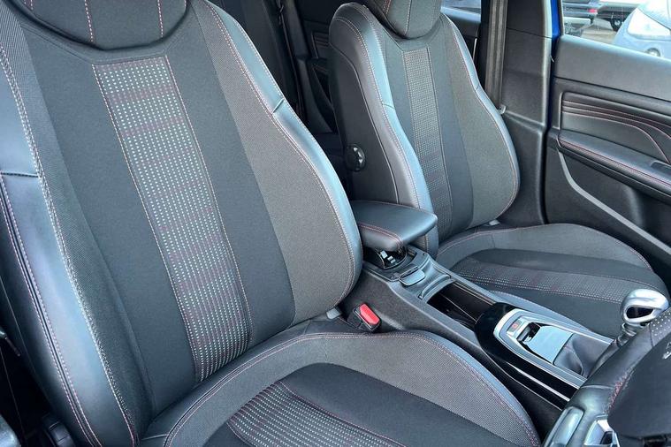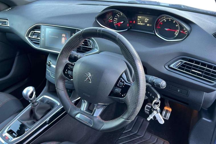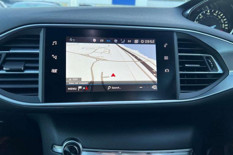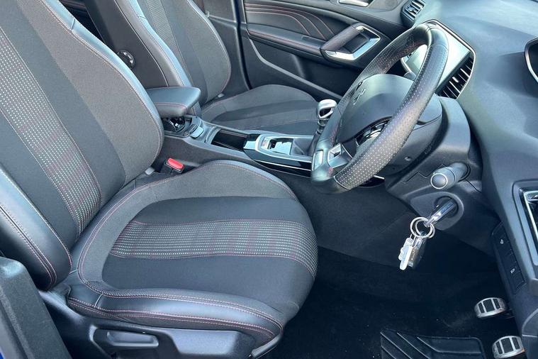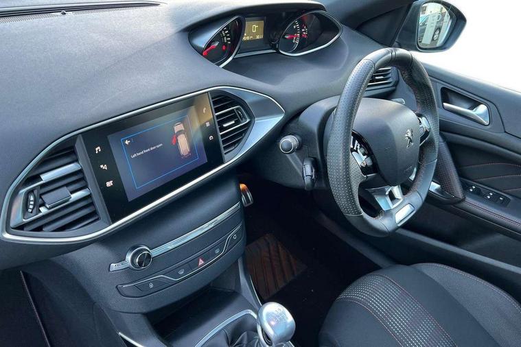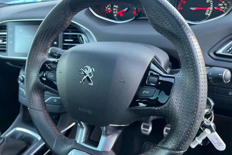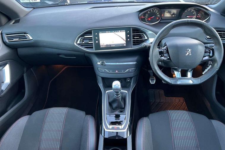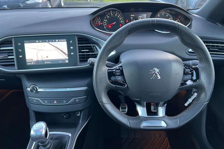 3D connected navigation, 9.7" capacitive touchscreen in centre console, Bluetooth telephone facility, Exterior temperature indicator with ice warning, Front and rear parking sensors, Mirror screen with mirror link, apple carplay and android auto, Multi function trip computer, Peugeot i-Cockpit with 10" head-up digital instrument panel, Peugeot i-cockpit with compact multi-function steering wheel, PEUGEOT SOS and assistance, Service interval indicator, Visio Park 1 with 180 degree Colour reversing camera, 6 speakers radio with mp3 compatible, DAB Digital radio, Steering column mounted multifunction controls, USB socket, Voice recognition for radio, navigation and telephony features, 2 X Rear number plate lights, Aluminium door sill finishers, Automatic hazard light activation upon heavy brake application, Automatic triggered rear windscreen wiper in reverse gear, Body colour door handles, Body coloured bumpers, Dark tinted rear side and tailgate windows, Electric front/rear windows with one touch/auto up/down, Electric operated/heated door mirrors, Front windscreen wiper with multi speed setting, Full LED headlights with LED fog lights, sequential LED indicators, sports front bumper and Self-levelling headlights, GT Line emblems in front wings and tailgate, Headlights left on audible warning, Heated rear windscreen, LED daytime running lights built into the headlamp unit, Nera black door mirrors, Panoramic fixed cielo glass roof with electric interior blind, Power folding door mirrors with courtesy approach lighting, Roof mounted antenna, Side skirts in sport design, Tonneau cover - retractable with dedicated storage under boot floor, Twin exhaust tailpipe, 1/3 to 2/3 folding rear seat with magic flat modularity with controls accessible from the boot, 12V socket, 2x Rear coat hooks, 4 Grab handles retractable and damped, Aluminium boot rails includes adjustable tethering points, Aluminium style pedals and door sills, Central front armrest with height and longitudinal adjustment, Cupholders - 2 in rear centre armrest, Door armrests and facia panels trimmed in mistral leather effect trim with red stitch, Driver and front passenger seat height adjustment, Driver and front passenger seat manual adjustment in longitudinal and back rest angle, Dual zone automatic climate control, Fixing rings 4 in load compartment, Front armrest and gear lever gaiter with red contrast stitching, Front centre console cup holders, Front interior light with 2 reading spotlights and rear interior light with timer, Front seat back map pockets, Gear shift indicator, Illuminated vanity mirrors, Mistral floor mats with red contrast stitching, Mistral full grain leather steering wheel with red stitch, Roof lining - Tramontane black, Satin chrome gear lever, Satin chrome interior door handles, Seatbelt not fastened audible and visual alert for front seats, Seatbelt unfastened on the move audible and visual alert for front and rear seats, Seatbelt unfastened warning display, Visibility pack - 308, 2x Isofix child seat fitting on outer rear seats, 3x Rear three-point retractable seatbelts with force limiters in the outer rear seats, ABS + EBD + EBA, Adaptive driver and front passenger airbags with passenger airbag deactivation function, Child locks on rear doors, Driver/front passenger side airbags, Electronic parking brake + Hill assist, ESP, Front and rear curtain airbags, Front optimised safety headrests and 3 x rear retractable headrests with height adjustable, Front three point retractable seatbelts with force limiters, Front/rear disc brakes, Tyre pressure sensor, Automatic door locking, Deadlocking system, Electronic code immobiliser, Locking wheel bolts, Remote control central locking with two plip keys, Thatcham cat 1 ultrasonic alarm, Satin chrome dash trim, Steel space saver spare wheel,