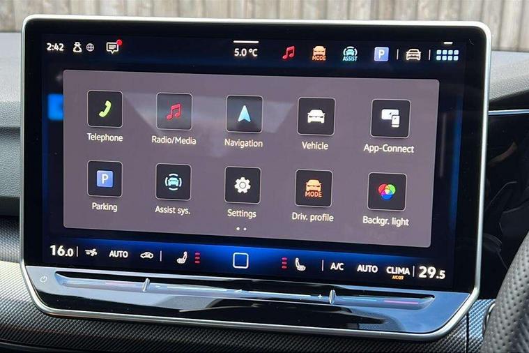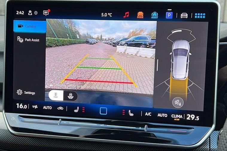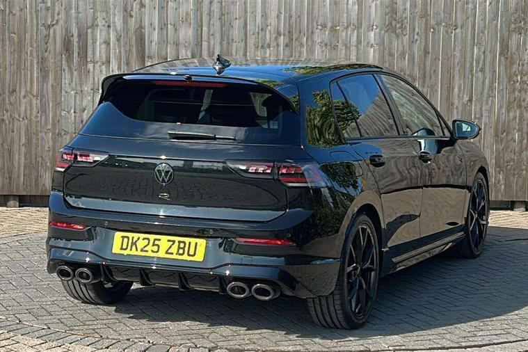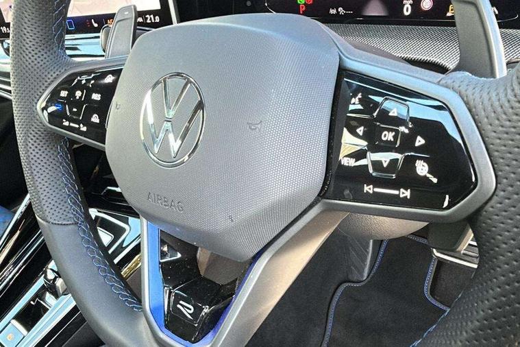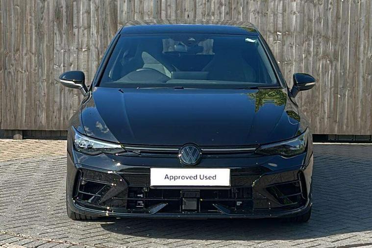 Activated carbon canister, Adaptive cruise control (ACC), Advanced driver attention and drowsiness monitor, Dynamic road sign display, E-Sim card for online connectivity, eCall emergency call system, Electronic maximum speed limit increased to 270 km/h, includes driving Modes 'drift' and 'special', larger roof spolier and GPS laptimer + G-Meter, Multi-color Digital cockpit pro, selection of different info profile possible, Multifunction front facing camera for distance control, Navigation system, Oncoming vehicle braking when turning including swerve support, Preparation for light assist system, Progressive steering, Side assist blind spot lane change system, rear traffic alert and exit warning system, Speed limiter, Speedo, rev counter, electronic odometer, trip, service interval display, exterior temperature and fuel gauge, Traffic jam assist, Voice enhancer and voice control, Warning signal and warning light for front and rear seatbelts not fastened, We connect plus preparation, We connect preparation, Wireless app connect, All wheel drive - 4Motion, Petrol Particulate Filter, Sports suspension, Start-stop system with battery regeneration (recuperation - energy recovery during braking), XDS electronic differential lock for improved traction and handling, 2 USB C ports in front, 2 USB charging sockets on the centre console in the rear charging capacity upto 45W, Comfort telephony + wireless charging, without wireless aerial connection, Digital radio reception (DAB), Diversity antenna for FM reception, Gaming platform via car app, Infotainment system with 12.9" display, Mobile phone interface with inductive charging feature, 3rd brake light, Auto dimming rear view mirror, Auto headlights, Automatic headlamp activation with Coming home and Leaving home feature, Black badge on B-pillar, Black mirror caps, Black strips on radiator grille and headlights, Body colour door handles, Darkened headlights, Darkened R Logos and VW logos in front, rear and on fender, Exhaust system with black tailpipe, Exterior ambient lighting with illuminated lighting animation and wake up/goodbye scenario, Exterior mirrors convex on the left and aspherical on the right, Front and rear electric windows, Front fog lamps and cornering light, Heat insulating windshield made of laminated glass, LED daytime running lights, LED matrix headlights with ambient light V2, advanced high beam, dynamic range contol with cornering, LED rear lamp with indicator, poor weather, R name plate, Rain sensor, Rear fog light on one side and reversing lights on both sides, Rear side wing doors, Rear tinted glass 65% light absorbing from B pillar backwards, Rear windscreen washer and wiper with interval delay, Remote electrically foldable door mirrors, puddle lights and reverse activated passenger's door mirror, Welcome light with surround lighting, 12V socket in front centre console, 12V socket in luggage compartment, 3 rear head restraints, 3 seat bench in 2nd row, 30 colour ambient lighting, illuminated center console storage compartment in front, Air care climatronic 3 Zone automatic climate control with rear air conditioning control panel, Aluminium gearshift handle, Brushed stainless steel pedals, Carpet mats, front and rear, Front centre armrest, Integrated front head restraints, ISOFIX anchors for child seats on outer rear bench seats and on front passanger seat compatible for i-Size, Luggage compartment lighting, Rear cupholder and loadthough, Single front passenger seat, Soul black instrument panel, Split folding backrest with centre armrest and unsplit rear seat bench, Storm grey roof lining, Sun visors with illuminated vanity mirrors, Driver assistance pack - Golf DSG Estate/Hatchback, R styling pack - Golf, Technology park and comfort pro package - Golf Hatchback, 3 point height adj front seatbelts + pretensioners, 3 rear three point seatbelts, ABS, Autonomous emergency braking front assist with pedestrian and cyclist monitoring, Child locks on rear doors, Disc brakes in rear incl. brake calipers in black with darkened R-logo, Driver and front passenger airbag with front passenger airbag deactivation, Electronic parking brake with auto hold, ESC (Electronic Stability Control), Extended pedestrian protection measures, Hill start assist, Two tone horn, Tyre pressure loss indicator, Volkswagen roadside assistance, Anti theft wheel bolts, Preparation for alcohol interlock, Wheel hub cover with darkened R-logo,