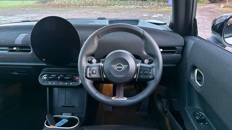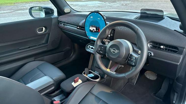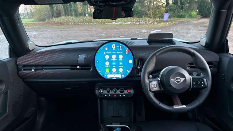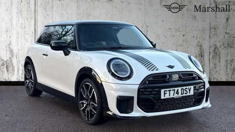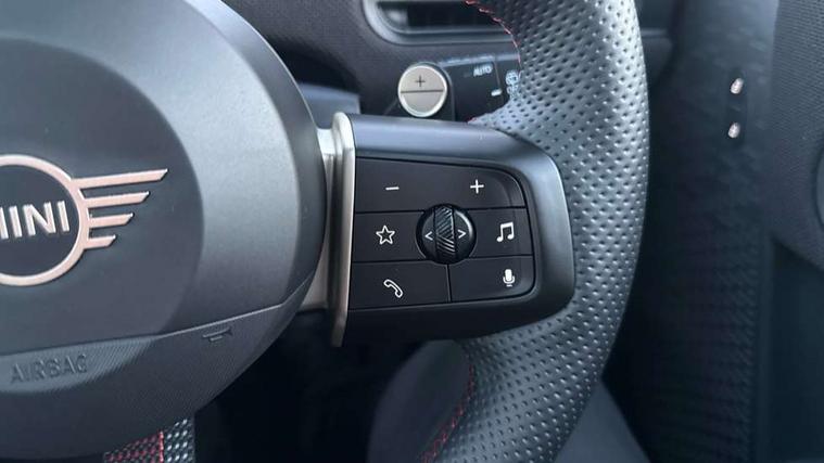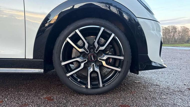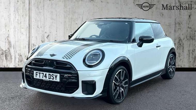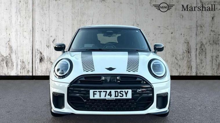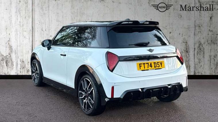 Central toggle bar, Circular OLED Screen, Compatible mobile phone bluetooth with audio streaming, Cruise control, Digital instrument cluster, Electro-mechanical speed dependant steering assistance, Emergency call service, MINI Experience Modes, Mini navigation system, On board computer, Service interval indicator, 7 speed steptronic sport transmission with double clutch, Adaptive suspension, DAB Digital radio, Personal eSim, Adaptable light signatures, Auto headlights, Electric adjustable heated door mirrors, Electric front windows, Front and rear apron, Heated rear window, Heated windscreen washer jets, High gloss black wheel arches, High gloss hexagonal patterned grille surround, JCW body kit, LED daytime running lights, LED indicator lights, LED rear lights, Rain sensor window wipers, Rear fog lights, Rear roof spoiler with airblades, Rear window wiper, 2 seat bench in second row, 2 zone automatic air conditioning, 60/40 rear seat bench, Ambient lighting, Black lower band in high gloss, Cupholders, Dark headliner, Floor mats, Front and rear head restraints, Front compact armrest, Heated steering wheel, Height adjustable passenger seat, Lidded storage box in Black/Red knit, Luggage compartment lighting, Partially perforated vescin steering wheel with red accent, black/red decorative strap, Single front passenger seat, Steering wheel paddle shift, Sunvisors with vanity mirrors, Vescin/Cord upholstery, Driving assistant pack - Cooper Hatchback, Level 1 pack - Mini Hatchback, Park assistant pack - Cooper Hatchback, 3 point seatbelts on all four seats, 6 Airbags - front, side, head and seat belt tensioners, Acoustic pedestrian protection, Anti-lock braking system (ABS), Brake caliper in Black with JCW badge, DSC - Dynamic Stability Control, Electronic parking brake, Front and rear disc brakes, Front ISOFIX (iSize), Front passenger airbag deactivation, JCW Sport Brakes, Traction control, Tyre pressure monitoring system, Alarm, Immobiliser, Remote central locking, Black/Red decorative dash strap, JCW Black/Red dashboard knit, Tyre repair kit,