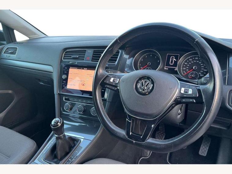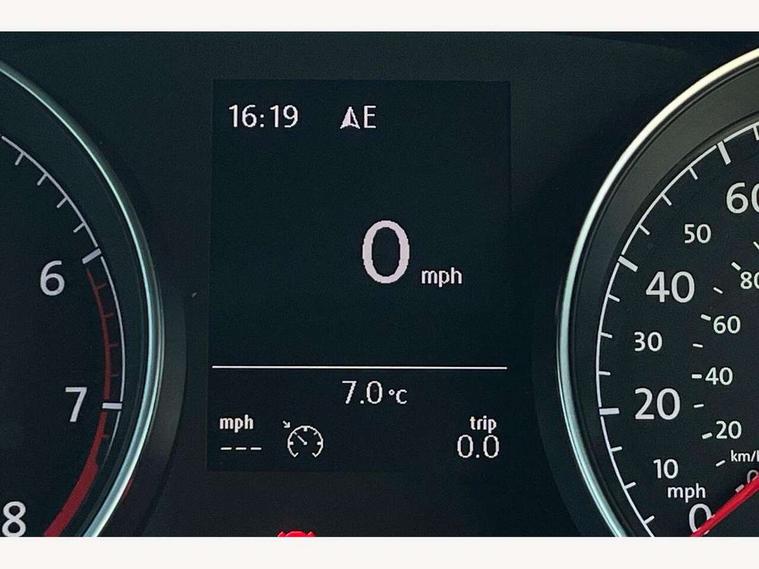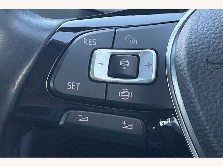 App-Connect, 'Lights On' Reminder warning buzzer, 8" colour touch screen, ACC - Adaptive cruise control with front assist, forward collision warning, distance monitoring, city emergency brake and speed limiter, Bluetooth telephone and audio connection for compatible devices, Brake pad wear indicator warning light, Driver alert system, Driver profile selection, Driving Mode Selection with four preset modes - Eco, normal, sport or individual modes, Front assist, radar sensor controlled distance monitor, city emergency braking + predictive pedestrian protection, Front assistant collision mitigation, Instrument cluster in white, Multifunction computer with visual gear change recommendation for fuel consumption, Power assisted speed sensitive electro-mechanical steering, Speedo, rev counter, electronic odometer, trip, service interval display, exterior temperature and fuel gauge, Stop/start system, Ultrasonic front and rear optical and audible parking sensors, Warning buzzer and light for front seatbelts unfastened, Battery regeneration during braking, XDS electronic differential lock, 8 speakers, CD/MP3/WMA, USB and SD card reader, aux-in, Composition media system, DAB Digital radio receiver, SMS Functionality, Automatic coming/leaving home lighting function, Automatic dimming rear view mirror/rain sensor, Black front air intake and radiator grille with chrome insert, Black rear diffuser, Body colour bumpers, Body colour door handles, Body colour door mirrors with integrated indicators, Electric front windows, Electric rear windows, Electrically adjustable and heated door mirrors, Glavanised body, Heated rear windscreen, High level 3rd brake light incorporating LED Technology, Range adjustable headlights via infotainment system with LED daytime running lights, Rear number plate lights incorporating LED technology, Rear window aerial, Rear window wash/wipe with intermittent wipe, Reflectors in all doors, Remote electrically foldable door mirrors, door mirror puddle lights and reverse activated kerb-view adjustment on passengers door mirror, Tailgate with integrated rear roof spoiler, Windscreen wipers/ intermittent wipe + 4 position delay, 12V socket in luggage compartment, 3 rear headrests, 4 load lashing points in luggage compartment, 60/40 split folding rear seat backrest, Bag hook in luggage compartment x 2, Cooled glovebox, Dust/pollen filter, Front and rear reading lights incorporating LED technology, Front centre armrest with storage compartment and two rear air vents, Front seat back storage pockets, Grab handles front x 2, rear x 2 with integrated coat hooks, Height and reach adjustable steering wheel, Illuminated vanity mirrors, Instrument lighting white adjustable panel illumination, Interior light delay, Isofix preparation for 2 rear child seats, Load through provision with rear centre armrest and cupholders x2, Luggage compartment light, Overhead storage box, Pearl grey headlining, Storage box in luggage compartment, Storage compartment in roof console with cover, Storage compartments in front doors, Storage compartments in rear doors, Stowable luggage compartment cover, Sun visors, Three spoke multi-function leather trimmed steering wheel and gearknob, Variable boot floor, height adjustable and removable, Mirror pack - Golf, 3 rear three point seatbelts, Airbags - Driver's and front passenger's, curtain airbag, Driver's knee, front side impact and passenger's airbag deactivation switch, Anti-lock Braking System (ABS) with Hydraulic Brake Assist (HBA), Automatic post collision braking system, Child locks on rear doors, Driver/Passenger optimised head restraints, Electronic parking brake with auto hold, Electronic stability control (ESC) including Electronic differential lock (EDL) and ASR (Traction control) with deactivation via infotainment system, ESP with EDL + ASR, Pre crash preventive occupant protection, Three point height adjustable front seatbelts with tensioners, Tyre pressure loss indicator, Alarm with interior protection, Electronic engine immobiliser, Remote central locking with 2 remote folding keys, Brushed dark silver decorative inserts in dash and door panels, Chrome plated air vent surround, Chrome-plated light switch surround, Polar night black centre console, Steel space saver spare wheel,