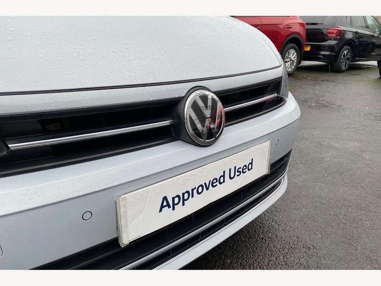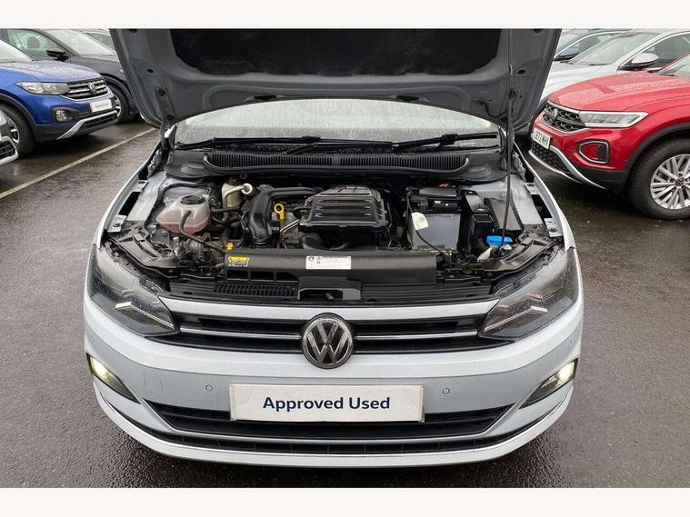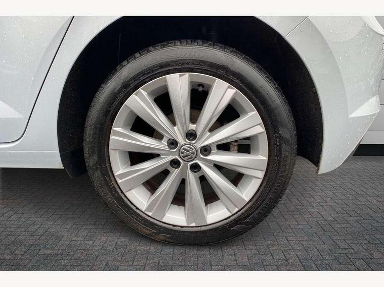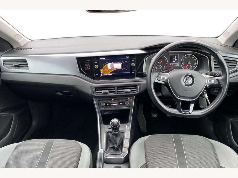 App-Connect, Bluetooth Telephone preparation, Discover navigation + European map data, Driver alert system, Multifunction colour display, PAS - speed related, Service interval indicator, Start/stop system, Trip computer, Warning buzzer and light for front seatbelts unfastened, Battery regeneration during braking, 6 speakers, Composition media system with radio, glovebox mounted CD, colour touch screen, SD card, aux-in, USB, multimedia interface, DAB Digital radio, Automatic dimming interior rear view mirror with rain sensor, Automatic headlamp activation, Black grille with chrome surround, Black radiator grille with chrome insert, Body colour bumpers, Body colour door handles, Body colour rear spoiler, Body coloured side sills, Chrome insert to lower bumper, Chrome trimmed front air intake surrounds, Electric front windows, Electric operated/heated door mirrors, Front fog lights including static cornering, Front wash/wipe with interval delay, Fully galvanised body, Heated rear window with auto timer, High level 3rd brake light, LED daytime running lights, LED rear number plate lights, Manual coming/automatic leaving home lighting function, Rear electric windows, Rear windscreen washer and wiper with interval delay, 12V power socket in centre console, 2 bag hooks in luggage compartment, 2 cupholders, 3 rear head restraints, 3 spoke steering wheel, 60/40 split folding rear seat, Ambient lighting, Chrome-plated electric window button surround, Climate control - 2 zone electronic air conditioning with automatic air recirculation and allergy filter, Driver/front passenger seat height adjustment + underseat drawers, Driver/passenger sunvisors with illuminated vanity mirrors, Dust/pollen filter, Front seat backrest storage nets, Front/rear reading lights, Glovebox, Handbrake grip button in chrome effect, Height/reach adjustable steering column, Instrument lighting, white adjustable panel illumination, Interior light with delay, Isofix Preparation 2 Rear child seats, Jack and tool kit, LED footwell lights, Luggage compartment cover, removable, Luggage compartment lighting, Matt chrome gear lever gaiter surround, Multifunction leather steering wheel with leather gear knob/handbrake grip, Storage compartment in front doors, Storage compartment in rear doors, Storage compartment under front seats, Variable boot floor, Variable Luggage compartment, Light and sight pack - Polo, 3 point height adj front seatbelts + pretensioners, 3x3 point rear seatbelts, ABS, Automatic post collision braking, Driver/front passenger airbag, Driver/Passenger whiplash optimised head restraints, ESP with EDL + ASR, Front and rear passengers curtain airbag system including front side airbags, Front passenger airbag deactivation, Front/rear disc brakes, HBA (Hydraulic Brake Assist), Hill hold control, Two tone horn, Tyre pressure monitoring system, Alarm with remote central locking and interior protection, Electronic engine immobiliser, Air vents in Matt chrome, Chrome plated electric mirror adjustment light switch surround, Matt chrome interior trim, Space saver spare wheel,
