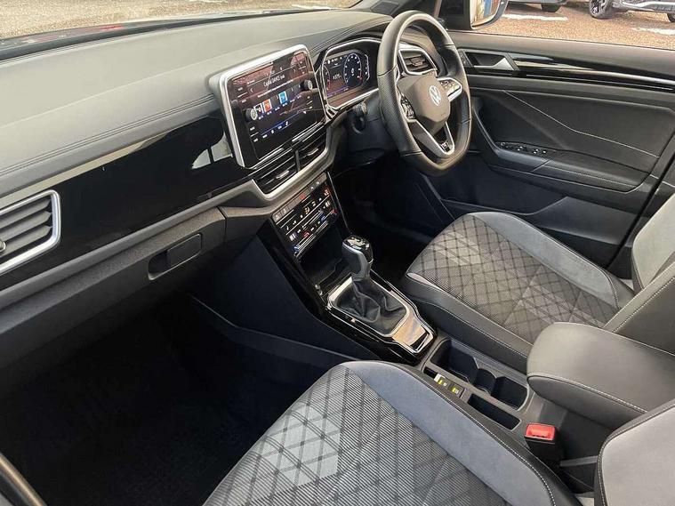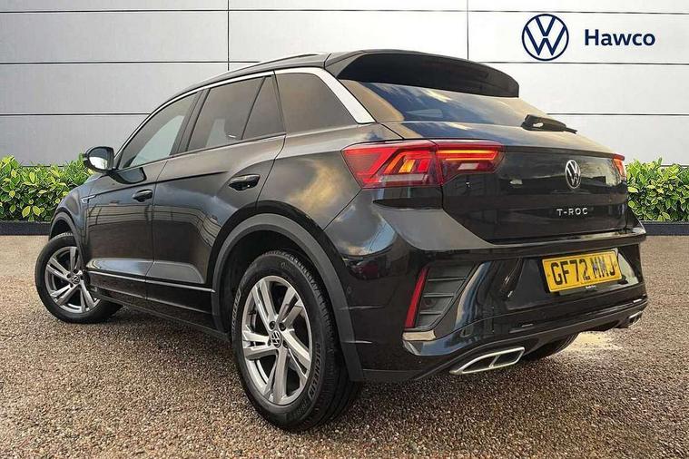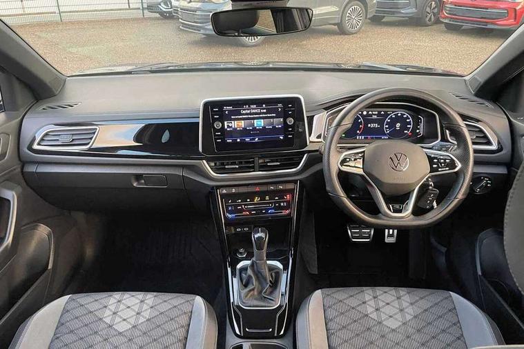 10.25" Digital cockpit pro, Bluetooth mobile phone interface, Driver alert system with fatigue detection, Driver tips and journey analysis, Emergency call service, Lane keeping system Lane Assist, Modified key software - reduce switch off time for key status change to Long no motion, Online services, Park assist including front and rear parking sensors, Service interval indicator, Tailgate/trunk lid release from outside, Think blue trainer driver tips and journey analysis, Warning sound and light for front seatbelts unfastened, Wireless app connect, Battery regeneration during braking, Start/stop function with battery regeneration, Diversity antenna for FM reception, Front and rear 6 speakers, Music playback - MP3, WMA and AAC files, Premium USB cable in choice of either Apple or Android smartphone compatibility, SD card slot, Simultaneous pairing of 2 compatible mobile devices, Title and cover art display, We Connect and We Connect Plus functionality, 3rd brake light, Auto dimming interior rear view mirror, Automatic hazard lights activation under emergency braking, Automatic headlight control with LED separate daytime running lights with coming/leaving home function, Extended roof spoiler, Exterior mirrors aspherical on driver side, convex on front passenger side, External USB type C socket and charging sockets, Front windscreen wiper with intermittent wipe and 4 position delay, Heated rear window, LED Plus headlamps, LED rear combination lamps, LED rear number plate lights, LED tail lamp rear comination lamps, Power windows with comfort operation and circuit breaker, R-Line design body coloured bumpers, Rain sensor, Rear exhaust tailpipe, Rear fog light on one side and reversing lights on both sides, Rear side wing doors, Rear wash/wipe with intermittent wipe setting, Remote electrically foldable door mirrors, puddle lights and reverse activated passenger's door mirror, 12V power socket in centre console, 3 rear head restraints, 3 seat bench in 2nd row, 4 load lashing points in luggage compartment, Air care climatronic air conditoning system with active combination filter and 2-zone temperature control, Black roof lining, Chrome plated radiator grille inserts, air vent surrounds and light switch surrounds, Door and side trim panel with leatherette insert, Drawer under drivers seat, Front + rear carpet mats, Front centre armrest, Front cupholders x 2, Front footwell illumination, Front reading light, Front scuff plates with R logo, Instrument lighting, white adjustable panel illumination, Interior ambient lighting and surround lighting, Interior light delay, Isofix child seat preparation, Leather gearshift handle, Load-through provision with cup holder when folded down ('Unsplit rear seat bench, split folding backrest, with centre armrest), Luggage compartment lighting, Single front passenger seat, Stainless steel pedals, Storage compartment in left and right luggage area, Storage compartment in rear doors, Storage compartments in driver and front passenger doors, Sunvisors with illuminated vanity mirrors, Variable boot floor, height adjustable and removable, Driver assistance pack without proactive passenger protection - T-Roc, 3 point height adj front seatbelts + pretensioners, 3 point seatbelts in outer rear with ECE label, ABS, Child locks on rear doors, Driver and front passenger airbag with front passenger airbag deactivation, Driver and front passenger safety-optimised head restraints, Drivers seatbelt reminder, Electronic parking brake, Electronic Stability Control (ESC) inc EDL (Electronic Differential Lock) and ASR (Traction Control), Front and rear passengers curtain airbag system including front side airbags, Front assist with city emergency braking and pedestrian monitoring, Front seat side impact airbags, Hill start assist, Predictive pedestrian protection, Rear disc brakes, Single tone horn, Tyre pressure loss indicator, Volkswagen roadside assistance, Alarm with interior protection, Anti-theft alarm system with interior monitoring, backup horn, and towing protection, Remote central locking with SAFELOCK, radio remote control with 2 remote control folding keys, Trims for alloy wheels,