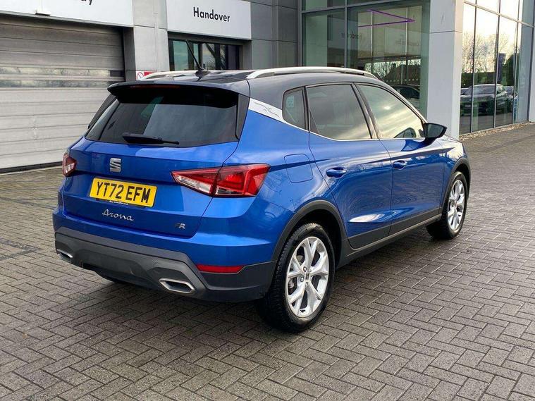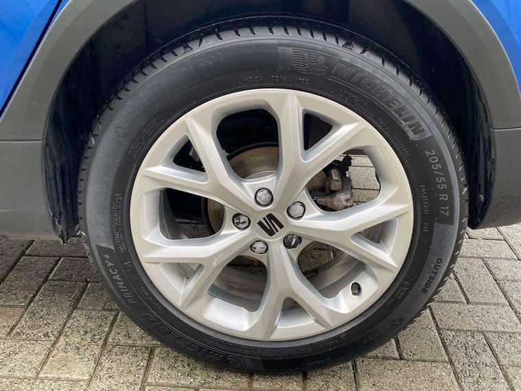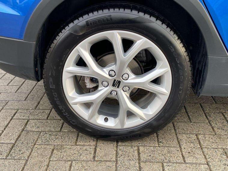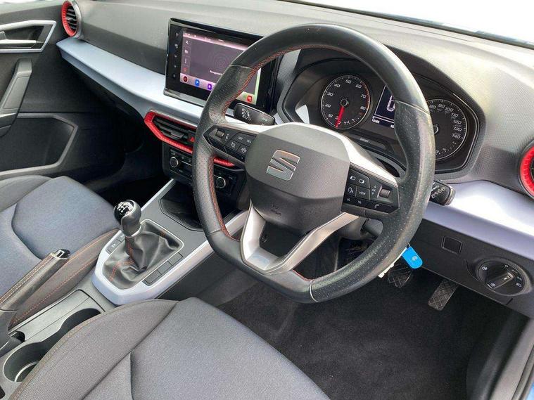 'Lights On' Reminder warning buzzer, 8" Digital cockpit, Digital clock, E-call, Electric speed sensitive power steering, Full Link Smartphone Integration with Mirror Link, Apple Car Play, Google Android Auto with USB Type C cable for Apple and Android compatibility, Lane keeping system, Low fuel warning light, Outside temperature display, Rear parking sensor, RPM counter, Seat connect with safety, service, remote and online, SEAT Drive profile - Four different models normal-sport-eco-individual, steering response, throttle response, Trip computer, Wireless phone charger, 9.2" colour touchscreen with navigation system, voice control and USB port (type c), Bluetooth interface for hands free and audio streaming, DAB digital radio and AM/FM radio, Steering wheel mounted audio controls, Anti theft roof antenna, Auto dimming interior rear view mirror, Automatic activation of hazard warning lights, Body coloured bumpers, Body coloured door handle inserts, Chrome roof rails and window surrounds, Dark tinted rear windows, Electric front/rear windows, Electrically adjustable, heated and folding door mirrors, Front fog lights with cornering function and rear fog light, FULL LED automatic headlights with dynamic headlight range control, coming and leaving home, LED daytime running lights, LED rear tail lights and licence plate lights, Protective side mouldings, Rain sensing wipers, Rear side wing doors, Rear spoiler, Rear window wash/wipe, Roof colour door mirrors, Third brake light, Twin exhaust pipe styling hidden exhaust pipe, Visible VIN plate, Windshield wiper with intermittent control and potentiometer, 2 cupholders, 3 seat bench in 2nd row, 60/40 split folding rear seat, Aircare filter, Black interior roof, Cloth upholstery, Double boot floor, Driver sunvisor with covered mirror + card holder, Dual zone climate control, Front courtesy light with 2x front and 2x rear reading lights, Front sport seats, Gear shift indicator, Height adjustable front seats, Height/reach adjustable steering column, Illuminated boot, Instrument lighting with brightness control, Interior ambient lighting, Interior light in footwell, central console and door panel, ISOFIX points in outer rear seats with top tether anchorage points, Passenger sunvisor with vanity mirror, Perforated flat bottomed leather steering wheel/gear knob/handbrake with red stitching and FR logo, Single front passenger seat, Two front and three rear height adjustable headrests, Interior chrome pack - Arona, 3 point seatbelts on all rear seats, ABS, Active front headrests, Child locks on rear doors, Driver and front passenger airbags with front passenger airbag de activation, front side and curtain airbags, Electronic stability control, Emergency Brake Assist (EBA) and front assist, Front and rear seatbelt reminder, Hill hold control, Multi-Collision braking, Tiredness recognition system, Traction control, Tyre pressure monitoring system, Alarm with back-up horn, Electronic engine immobiliser, Locking wheel bolts, Remote central locking + deadlocks, Tow away protection, Titan black dashboard, 17" Dynamic alloy wheels,
