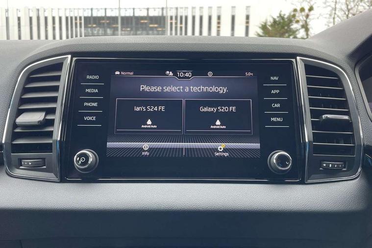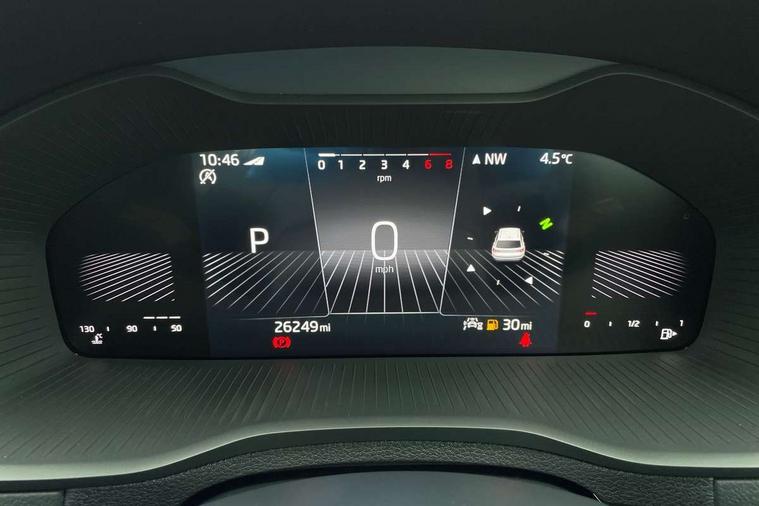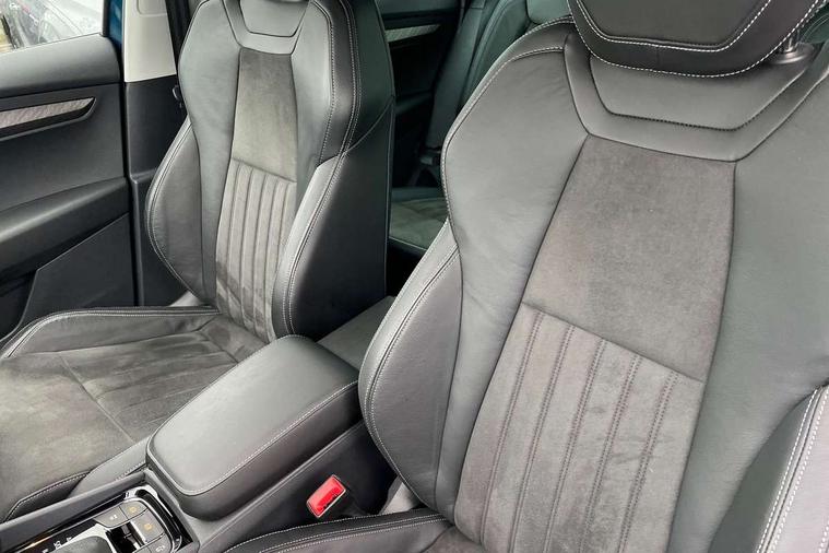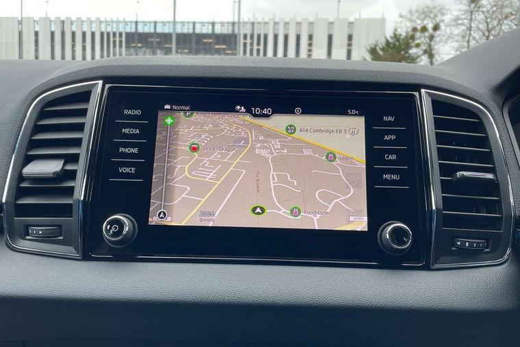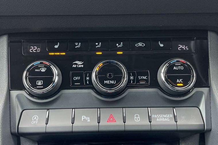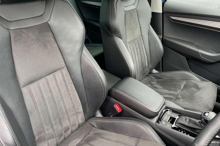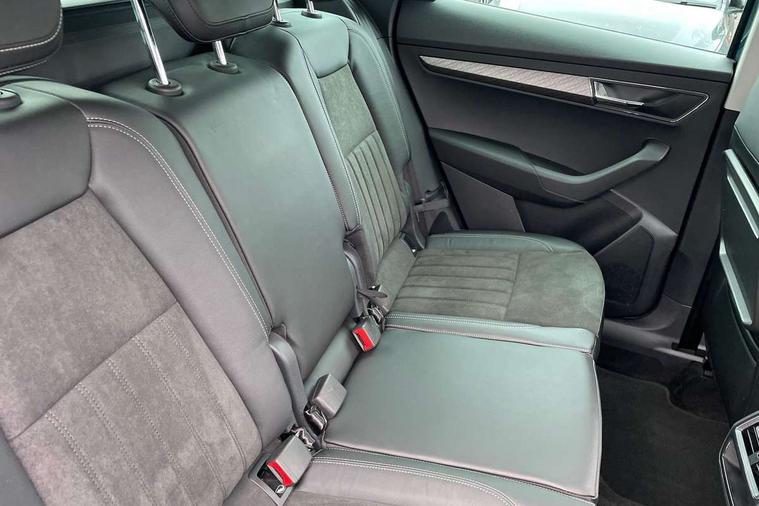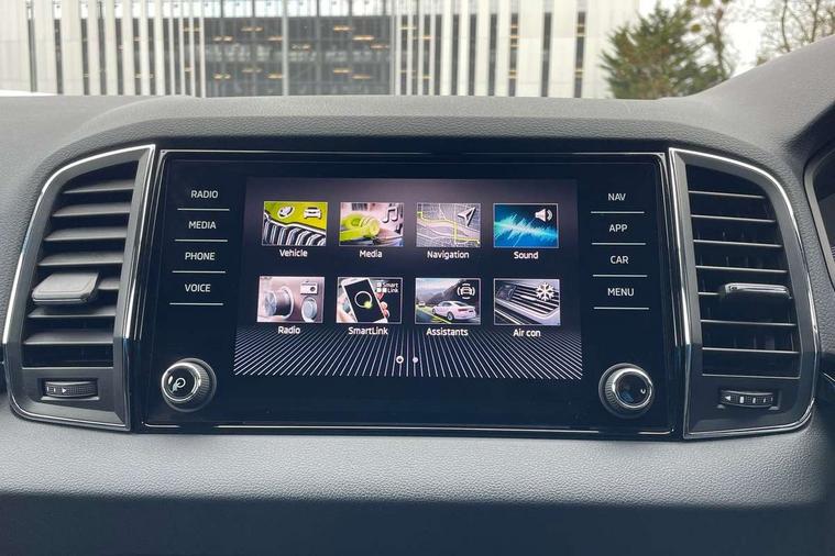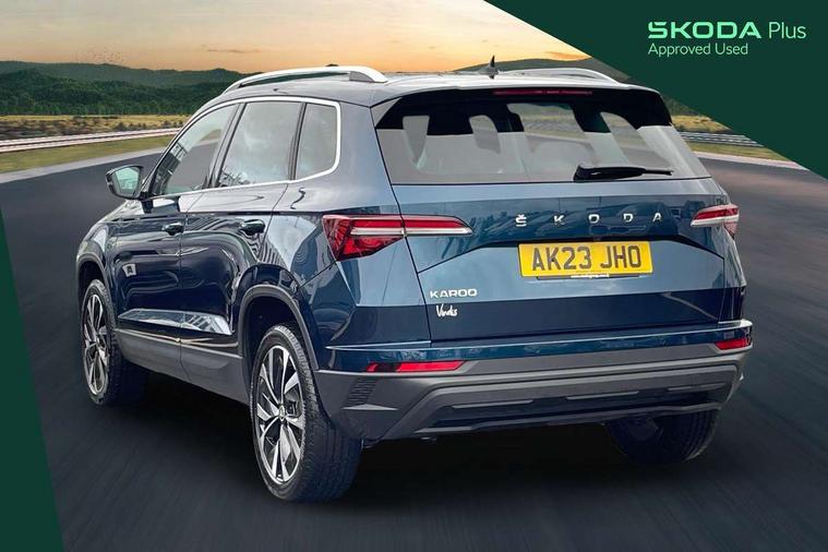 8" Digital display, Care connect, Driver fatigue sensor, Emergency services call system, Outside temperature gauge, Service interval indicator, SmartLink wireless for Apple and wired for Android, Start/stop system with regenerative braking, USB C Port x 2 in front centre console, 8 Speakers, DAB radio with Bluetooth, USB connection, Acoustic glass, Aero front windscreen wipers with intermittent function, Auto dimming rear view mirror with light and rain sensors, Black electric window control buttons, Body colour door mirrors and handles, Dynamic headlight range control with cornering light function, Electric front and rear windows with child proof lock, Heated rear windscreen, LED daytime running lights, LED rear lights with high functionality welcome effect and dynamic indicators, Light assistant (coming/leaving home/tunnel light), Plastic scuff plates, Privacy glass, Rear side wing doors, Rear spoiler, Rear window wiper with washer system and intermittent control, Safety reflectors on front doors, 1.5 litre bottle holders in driver and front passenger door panels, 12V socket in boot, 12v socket in front centre armrest with storage compartment and rear air vents, 2 Folding hooks and nets in boot, 2 spoke leather heated multifunction steering wheel with DSG paddles, 2 x Tablet holder, 3 rear height adjustable headrests, 3 seat bench in 2nd row, 4 foldable roof handles with rear coat hooks, Black floor carpet, Chrome inner door handles, Decorative door sills with KAROQ badging, Double sided boot floor, Foldable hooks in the boot, Front head restraints, Height adjustable front three point seats belts with tensioners, Height/reach adjust steering wheel, Ice scraper, Illuminated glovebox, Illuminated luggage compartment, Isofix child seat preparation for front passenger seat, Isofix child seat preparation outer rear, Manual lumbar support for front seats, Pen holder, Pollen filter, Rear boot cover, Rear reading lights, Rubbish bin door, Safety vest holder, Single front passenger seat, Storage box in upper central dashboard closed, Sunvisors with illuminated vanity mirrors, Textile floor mats, Ticket holder, VarioFlex seats with standard rear seat release, Chrome roof rails + chrome pack - Karoq, Parking pack - Karoq, Automatic door unlocking in case of crash, Automatic fuel cut off in case of crash, Child locks on rear doors, Driver airbag, Electronic parking brake with auto hold function, Emergency rear braking signal, ESC including ABS, MSR, ASR, EDS, HBA, DSR, RBS, MKB and traction control, Front side airbags, Hill hold control, Knee airbags, Passenger airbag with switch-off function, Pedestrian monitor, Seatbelt reminder signalisation and pretensioner for all seats, Three point seatbelts rear, Two tone horn, Tyre pressure display, Tyre pressure monitor, Alarm with interior monitoring, back up horn and tilt sensor with safe function, Electronic engine immobiliser, Keyless entry and start/stop, Remote central locking with 2 remote folding keys, Chrome framed air vents, 18" Procyon silver alloy wheels with anthracite aero inserts, Anti-theft wheel bolts protection, Storage on wheel cover, Tool kit,