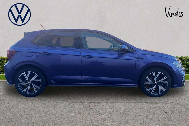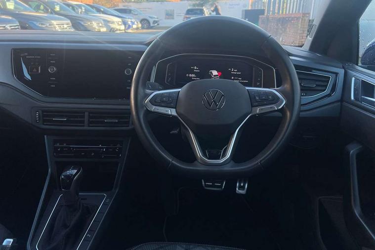 Chrome applications on rotary light, mirror adjustment, window regulator switches, outlet with frame in black, Dark grey anodised matt decorative inserts in dash and front door panels, Light and sight pack - Polo R-Line, Low rolling resistance tyres, Alarm with interior protection, Anti-theft alarm system with interior monitoring, backup horn, and towing protection, Anti-theft wheel bolts, Electronic engine immobiliser, DAB Digital radio, Diversity antenna for FM reception, Front and rear 6 speakers, 3 point height adj front seatbelts + pretensioners, 3x3 point rear seatbelts, ABS, Driver and front passenger airbag with front passenger airbag deactivation, Drivers and front passengers safety optimised head restraints, ESC (Electronic stability control) + EDL (Electronic Differntial lock) and ASR (Traction control), Extended and predictive pedestrian/ cyclist protection, Front curtain and side airbags with center airbag, Front/rear disc brakes, Hill hold control, Manual child lock in rear doors, Single tone horn, Tyre pressure loss indicator, Body colour bumpers, Body colour door handles, Body colour door mirrors, Chrome plated radiator grille inserts, air vent surrounds and light switch surrounds, Electric front windows, Front scuff plates with R-Line logo, Heat insulating glass in side and rear windows, Heat insulating glass windscreen, Power folding adjustable/heated exterior mirrors and front passenger exterior mirror lowering function, Rear electric windows, Rear fog light, Rear side wing doors, Rear tinted glass from B-pillar backwards approx 65% tinted, Rear windscreen washer and wiper with interval delay, Third brake light, 12V power socket in centre console, 2 USB-C ports in the front, 2 USB-C charging sockets on the center console in the rear, 3 rear head restraints, 60/40 split folding rear seat and rear seat bench not split, Air care climatronic air conditoning system with active combination filter and 2-zone temperature control, Black roof lining, Ceramique headliner, Door and side trim panel, Driver and front passenger seat height adjustment, Driver/passenger sunvisors with illuminated vanity mirrors, Front + rear carpet mats, Front centre armrest, Front footwell illumination, Front seat backrest storage pockets, Front sports comfort seats, Handbrake lever handle in leather, Isofix child seat preparation easy-fit (for two outer rear seats, and front passenger seat) compatible with I-size, Karoso artvelours cloth upholstery, Leather trimmed gear knob, LED interior light with switch off delay and dimmer, 2 reading lights front and rear, Luggage compartment cover, Luggage compartment floor, Luggage compartment lighting, Lumbar adjustment for front seats, Single front passenger seat, Stainless steel pedals, Standard pedal cluster, Three spoke leather wrapped multifunction steering wheel with shifting paddles, Adaptive cruise control with follow-to-stop and speed limiter, Bluetooth mobile phone interface, Digital Cockpit Pro with 10.25" Display, Driver alert system, Dynamic road sign display, Emergency call service, Power assisted speed sensitive steering, Preparation for We connect and We connect plus, Speedo and rev counter, electronic odometer, trip, service interval display and fuel gauge, Standard rear axle, Travel Assist - Lane keeping system and traffic jam assist, Travel assist including emergency assist, Trip computer, Warning signal and warning light for front and rear seatbelts not fastened, Washer fluid level indicator, Wireless app connect, Front wheel drive, Rear shock absorpion, Start-stop system with battery regeneration (recuperation - energy recovery during braking),