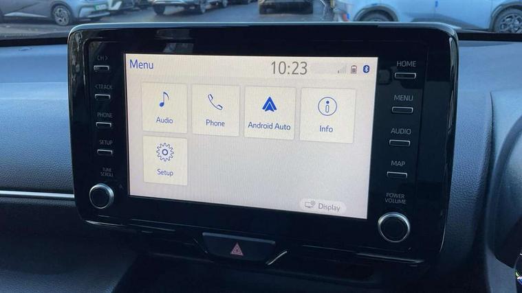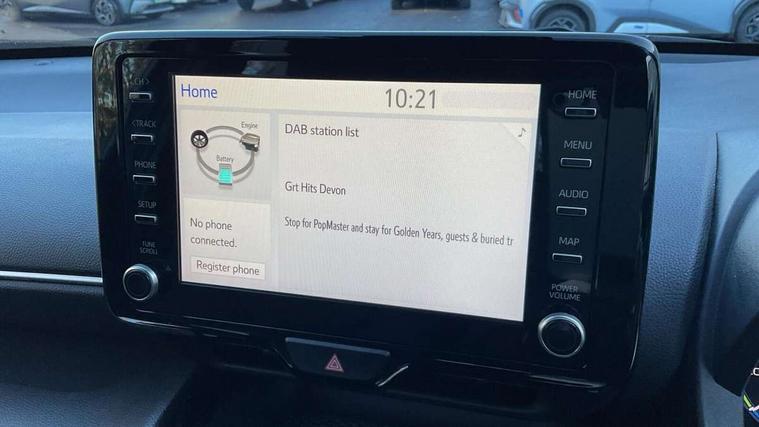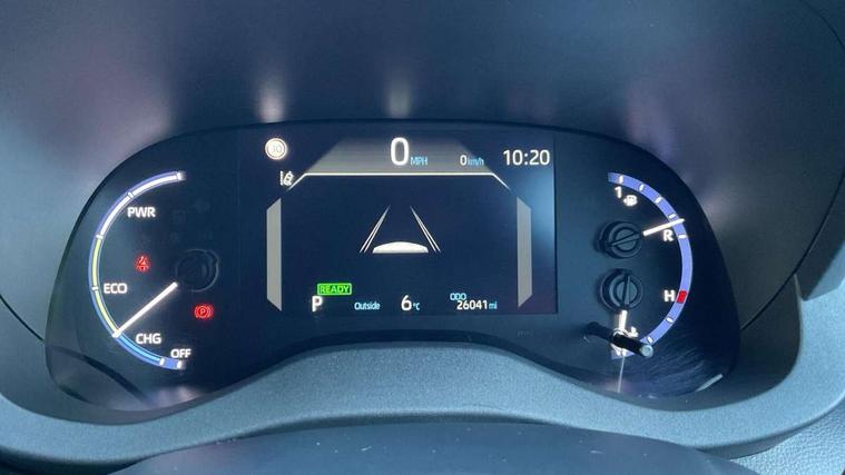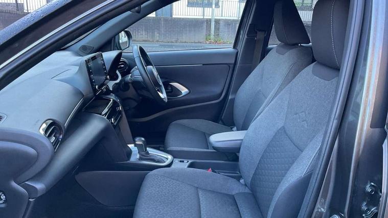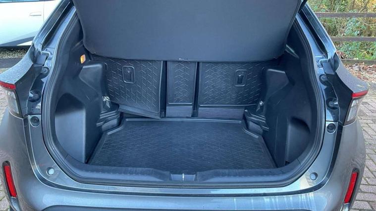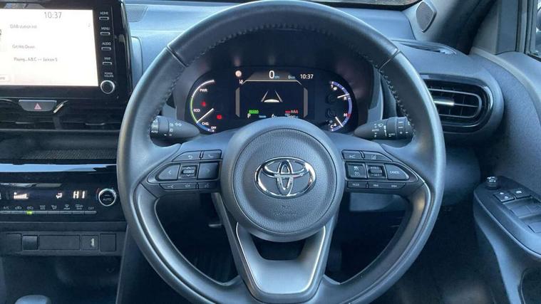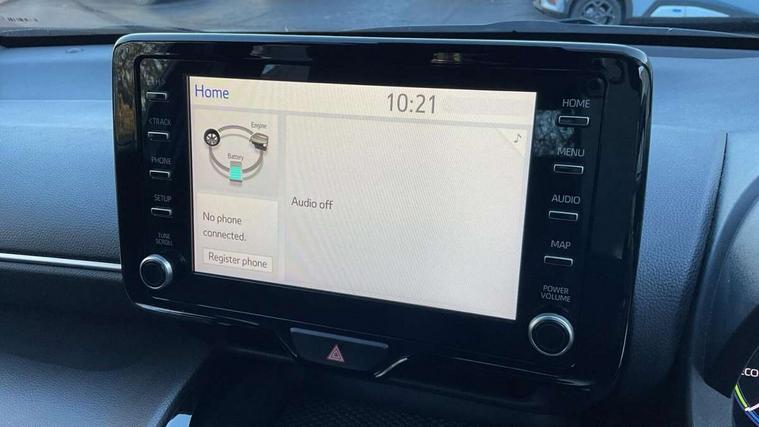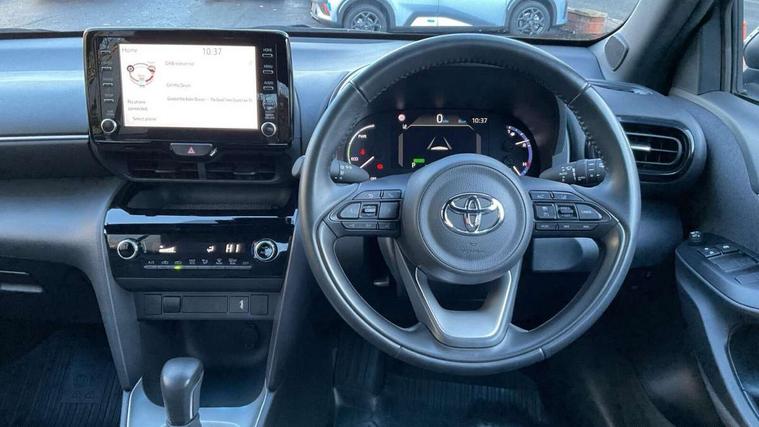 7" Multi information display screen, 8" Toyota touch 2 multimedia system with Smartphone integration with Apple CarPlay and Android auto, Adjustable speed limiter, Bluetooth connectivity, Driver attention alert system, eCall emergency system, Electric power steering, Full range intelligent adaptive cruise control, Hybrid system indicator, Key reminder warning, Lane trace assist, Multimedia, audio, telephone and voice recognition switches on steering wheel, My T Connected services, Pre-collision system enhanced with emergency steering assist, Reversing camera, Road sign assist - RSA, Steering assisted vehicle stability control, 6 speakers, DAB Digital radio, USB connection, 3rd brake light, Acoustic windscreen glass, Aluminium roof rails, Anti-jam protection on power windows, Auto high beam [AHB] with on/off switch, Automatic headlights, Black lower front grille, Black Shark-fin antenna, Black upper front grille, Black wheel arch mouldings, Body colour door handles, Body colour front bumper, Body colour rear bumper, Electric adjustable heated door mirrors, Follow me home headlights, Front and rear electric windows with auto up/down function, Front intermittent wipers, Headlight cut off reminder, Indicators integrated on door mirrors, Intermittent rear wiper, LED daytime running lights guide, LED front fog lights, LED front light guide, LED Indicators, LED projector headlights, LED rear light guide, Manual headlight levelling, Manually retractable door mirrors, Noise reduction layer on windscreen, Privacy glass, Rain sensor, Rear LED lights with sequential indicators, Rear side wing doors, Rear spoiler, Rear window defogger, 12v power outlet - front, 2x Rear coat hooks, 3 seat bench in 2nd row, 3 spoke leather steering wheel, 40:20:40 split folding rear bench seat, Adjustable speed limiter switch on steering wheel, Auto air conditioning, Black roof lining, Boot light, Central armrest, Centre console in light blue ambent lighting, Driver and front passenger personal lights, Fabric door trim, Fabric upholstery, Footwell in light blue ambient lighting, Front console box, Front cup holders, Front head restraints, Glovebox, Height adjustable driver's seat, Height adjustable front passenger seat, Hooks for luggage holding belts, ISOFIX child restraint system, Lane departure alert switch on steering control, Leather gearshift, Light blue ambient lighting on front doors, Manual telescopic and tilting steering wheel, Mirror on driver and passenger sun visor, Pollen air filter, Rear cup holders, Rear head restraints, Single front passenger seat, Soft tonneau cover, 3x3 point rear seat belts, ABS+EBD+Brake assist, Driver and passenger central airbags, Driver and passenger front airbags, Driver and passenger side airbags, Electronic parking brake, Emergency brake light system (EBS), Front seat belt reminder, Hill start assist control (HAC), Passenger airbag on/off switch, Pre-collision system with pedestrian and cyclist detection, Rear door child safety locks, Rear passenger side airbags, Rear seat belt reminder, Traction control, Tyre pressure warning system, Immobiliser, Intrusion alarm, Keyless smart entry with push button start, Power door locks, Power passenger window lock, Remote door lock, Tyre repair kit,