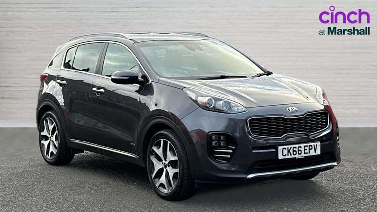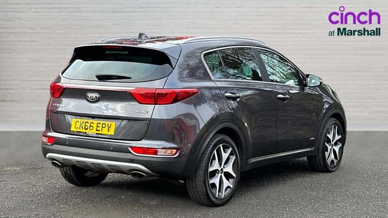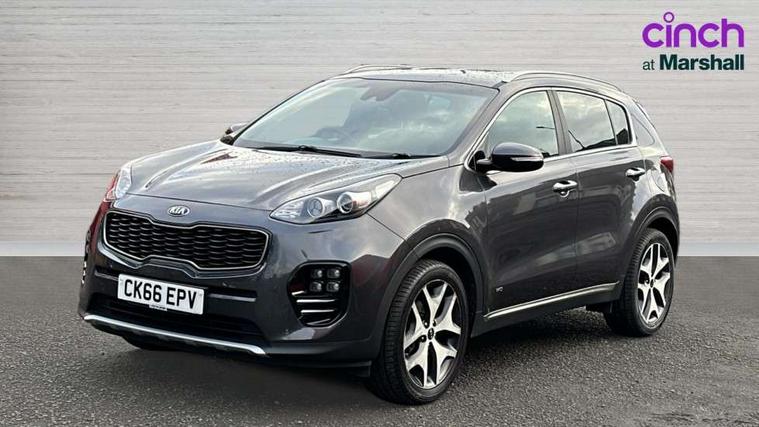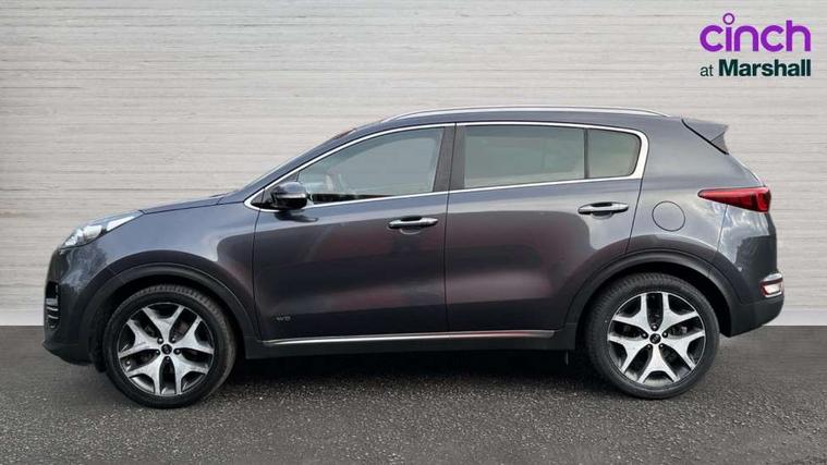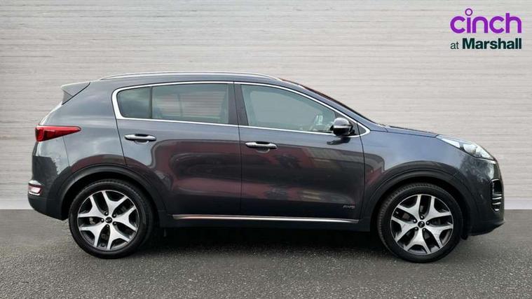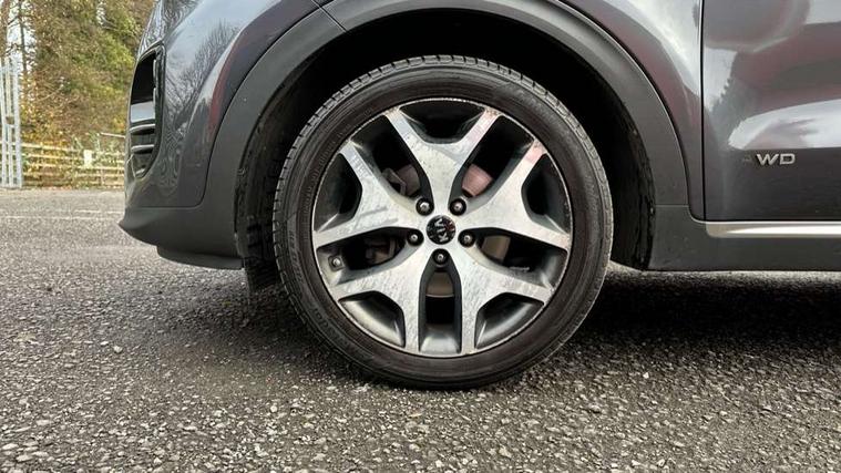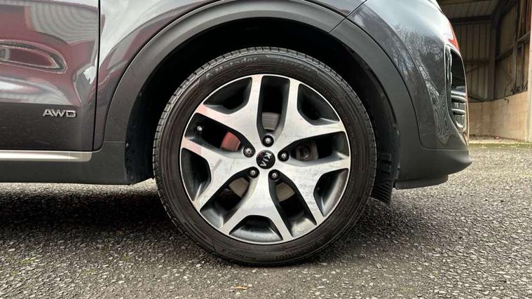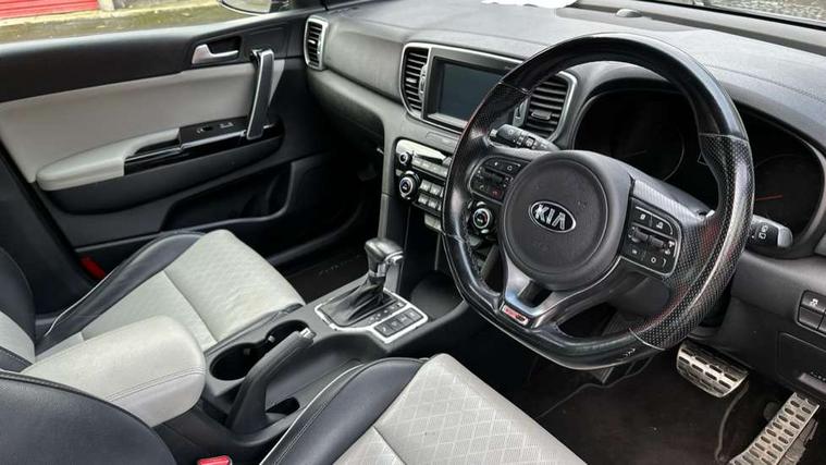 7" touch screen, Bluetooth connectivity with voice control, Colour information display, Cruise control + speed limiter, Digital clock, Drive mode selector, Emergency stop signalling system, Front and rear parking sensors, Kia connected services, Lane keep assist, Satellite navigation with rear view parking camera, Speed limit display, Speed sensitive power steering, Stop/start button, Trip computer, 6 speakers, Bluetooth audio streaming, DAB Radio with MP3, Steering wheel mounted audio controls, USB/iPod/auxiliary input connections, Auto dimming rear view mirror, Automatic front rain sensing wipers, Automatic headlights, Body colour bumpers, Body colour electric adjustable door mirrors, Cornering light, Electric folding door mirrors, Electric windows, Front drivers side windows/one touch up/down, Headlamp levelling, Heated door mirrors, High beam assist, LED daytime running lights, LED indicators in door mirrors, LED rear lights, Privacy glass (rear side windows and rear screen), Rear spoiler, Rear wiper, Shark fin roof aerial, Silver roof rails, Speed sensitive front wipers, Tinted glass, Trailer stability assist, Welcome home function, 12V power point front, 12V power point in luggage area, 3 passenger grab handles, 60/40 split folding rear seat, Air filter, Ambient lighting, Black headlining, Centre console storage box/armrest, Centre room lamp, Cooled glovebox, Door armrest in leather, Door courtesy lamps, Driver's lumbar support, Driver's seat height adjuster, Driver/passenger sunvisors with ticket holders, Dual zone automatic air conditioning, Flat bottomed sports leather perforated steering wheel, Front and rear door pockets, Front map lights, Front seat and rear pockets, Heated front and outer rear seats, Height adjustable headrests, Illuminated glovebox, Illuminated vanity mirrors, Isofix child seat preparation, Leather trimmed gearshift, Leather upholstery, Luggage area lamp, Luggage compartment cover, Luggage net with hooks, Paddle shift controls, Rear centre armrest with cupholder, Rear coat hooks, Rear headrests, Satin chrome interior door handles, Stainless steel pedals, Stainless Steel Scuff Plates, Tilt/telescopic adjustable steering wheel, Ventilation ducts to rear compartment, Exterior Styling Pack - GT-Line, Interior Styling Pack - Sportage GT-Line/GT-Line S, 3 point front seat belts, 3x3 point rear seatbelts, ABS/EBD, Active front headrests, Automatic unlocking of doors in case of impact, Dual front airbags, ESP + traction control, Front seatbelt pretensioners + load limiters, Front side airbags, Full size curtain airbags, Height adjustable front seatbelts, Hill start assist control (HAC), Passenger airbag deactivate switch, Rear child proof door locks, Tyre pressure monitoring system, Anti theft alarm, Deadlocks, Immobiliser, Locking wheel nuts, Smart keyless entry, Speed sensitive auto door locking, High gloss black centre fascia, 19" alloy Wheels B-type, Temporary spare wheel,